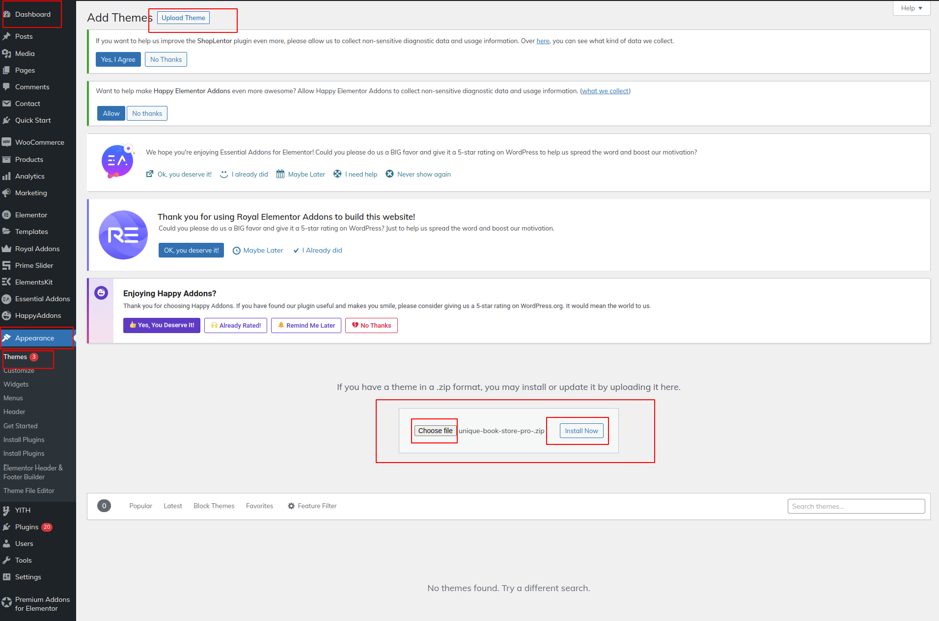 4. Click Install now after choosing your unique-book-store-pro zip file using the Browse button..