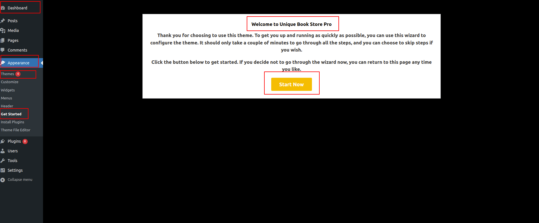 1) get started by clicking Dashboard >> Appearance >>