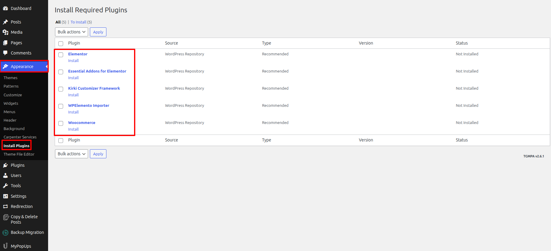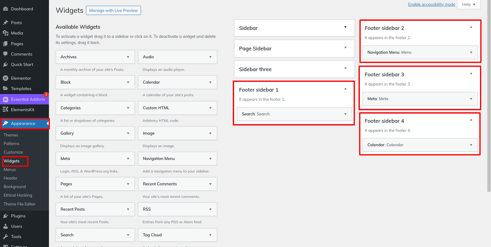 2) Proceed to -Dashboard- -Appearance- -Widgets- Sidebar