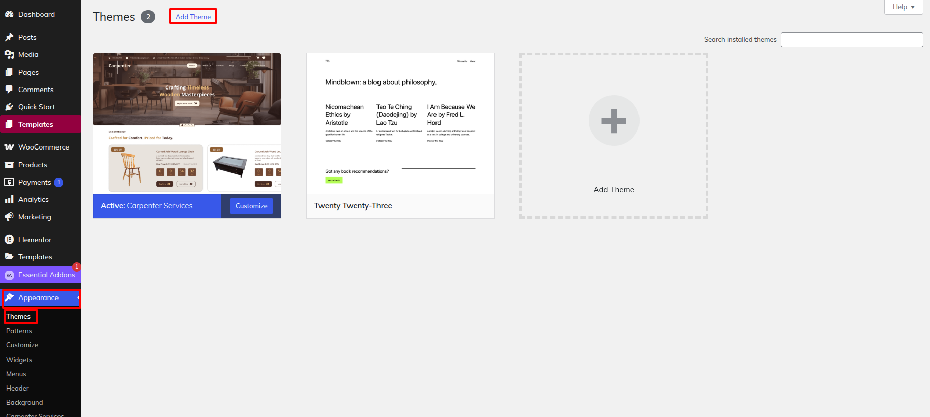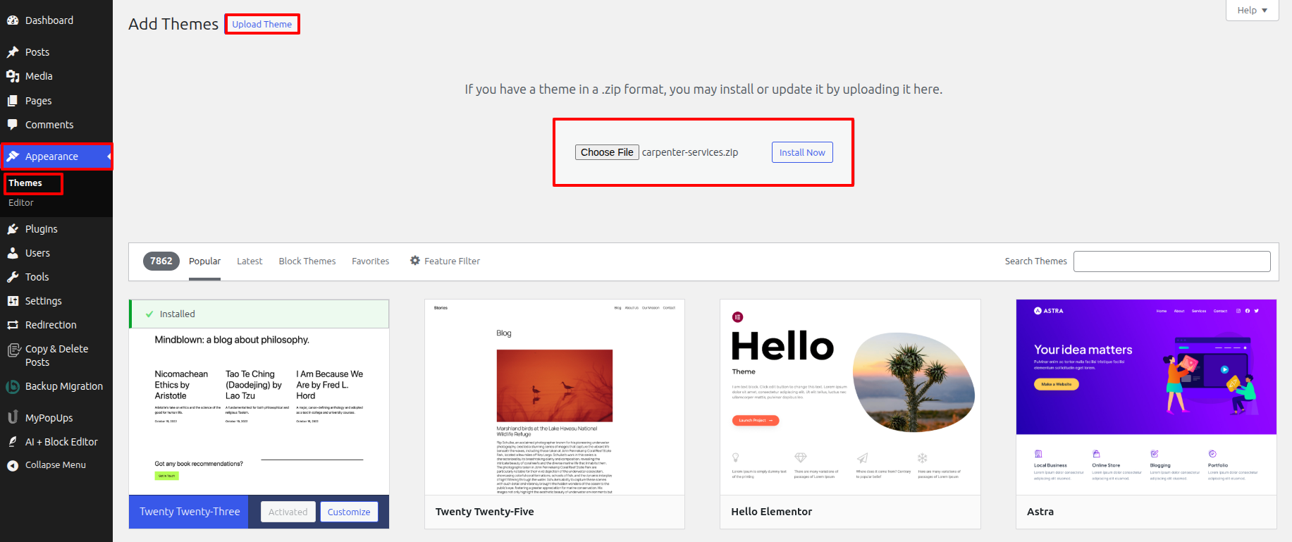 3. After clicking Browse, select your carpenter-services.zip file and click Install now.