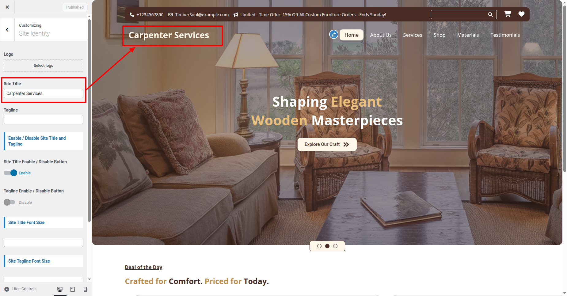 here you add site title and tagline and also add enable/disable site title and tagline button.