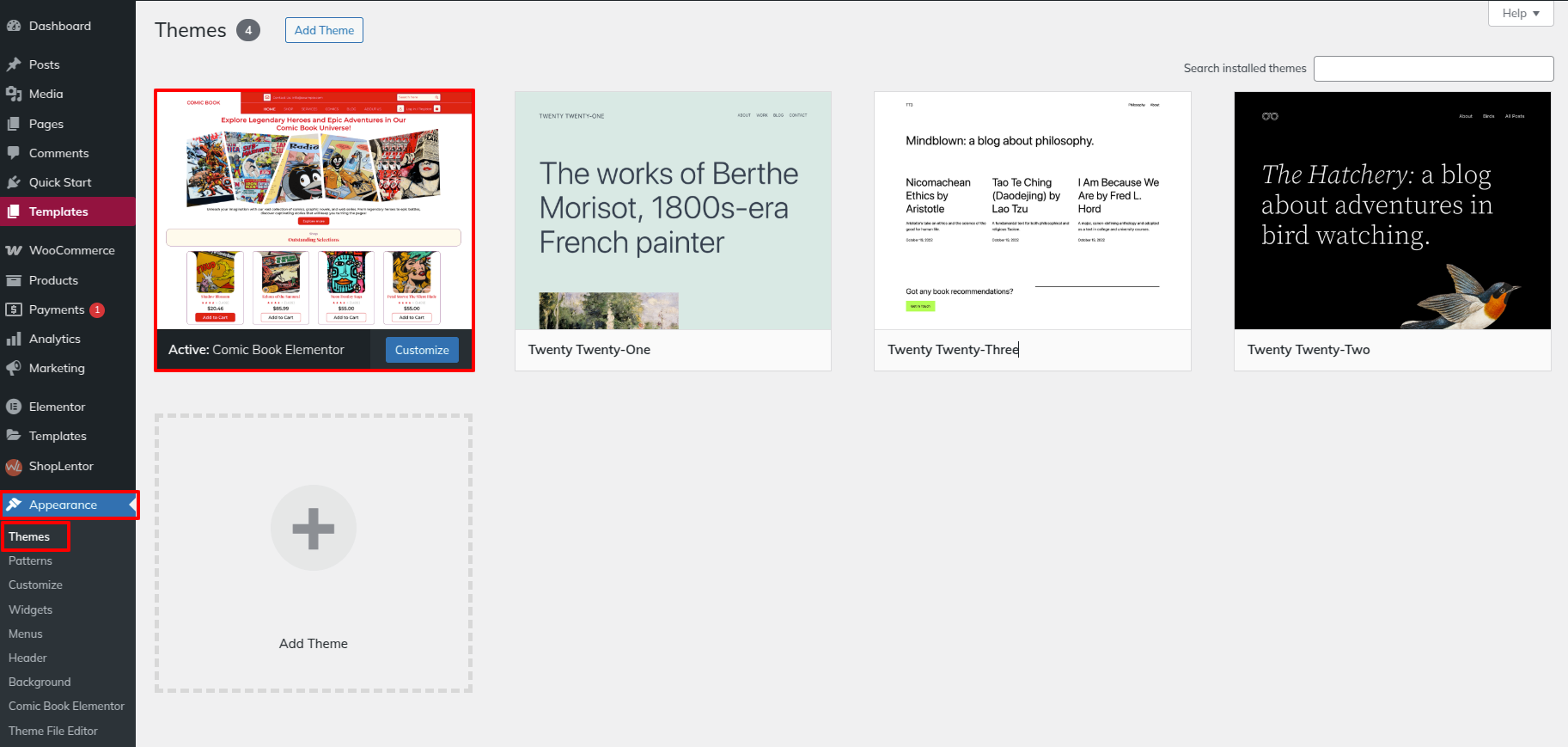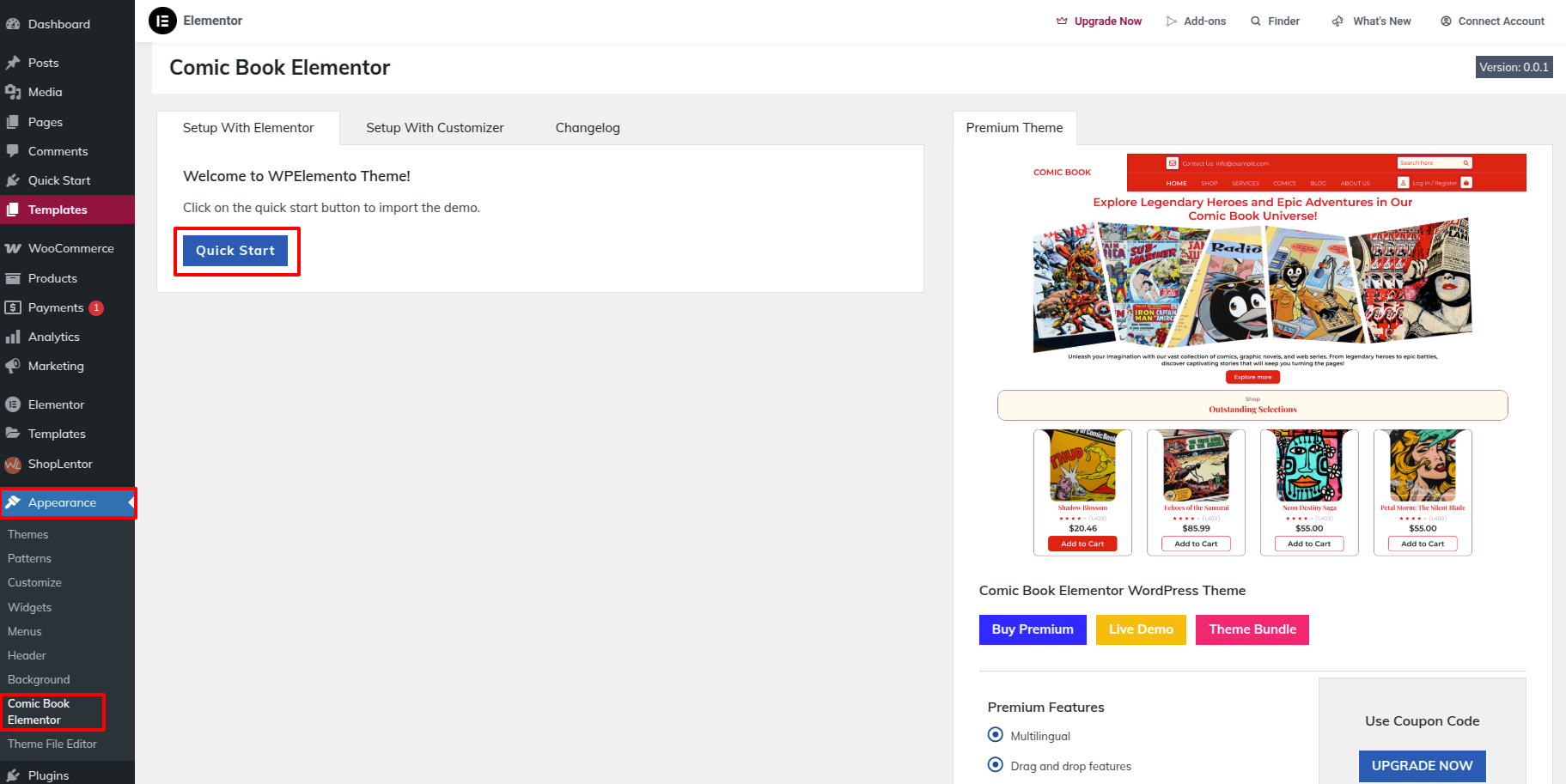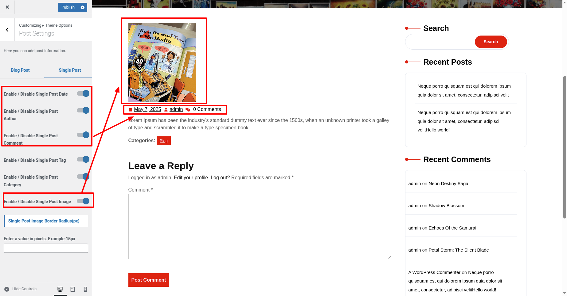 Proceed to Dashboard Customizer Theme Options Post Settings