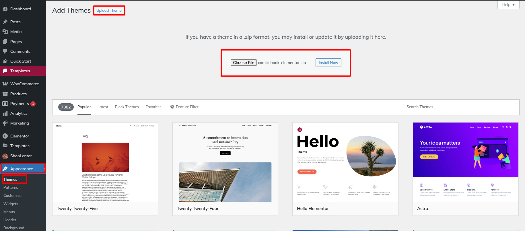 3. After clicking Browse, select your comic-ebook.zip file and click Install now.