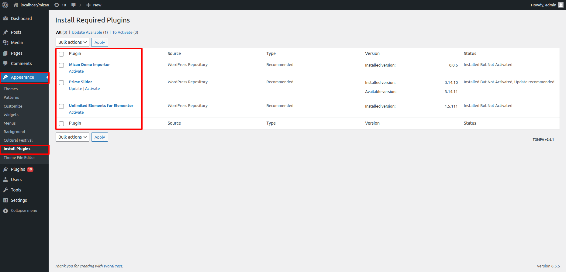 Mizan Demo Importer Plugin , Prime Slider – Addons For Elementor , Unlimited Elements for Elementor , Elementor