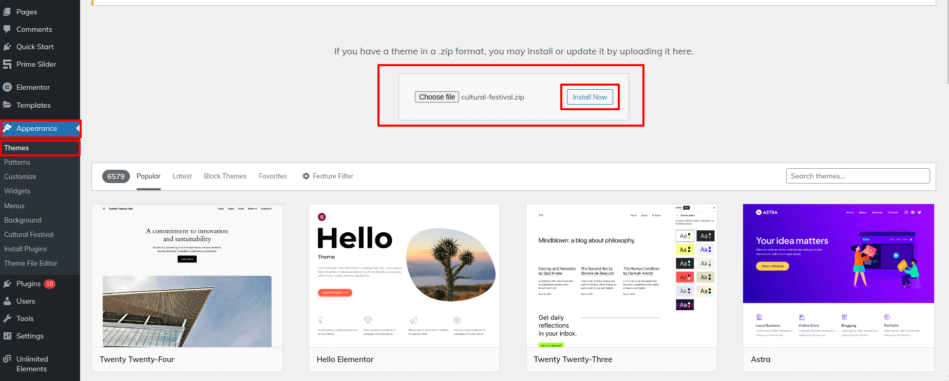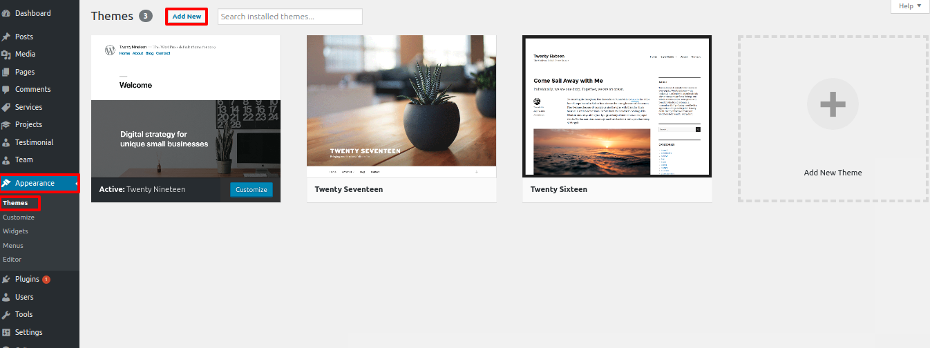 2. You can add a new theme on the themes page by clicking the Add New button.