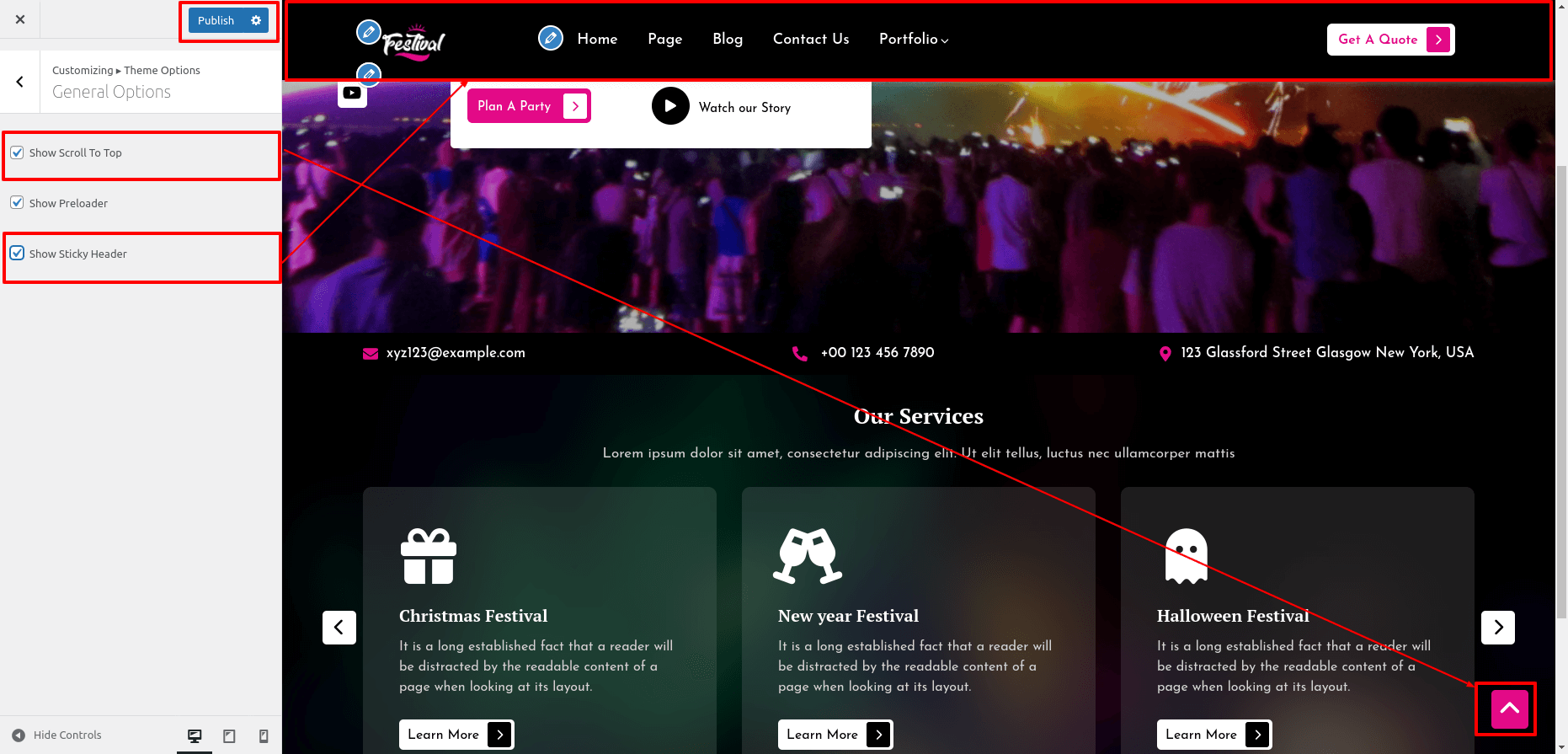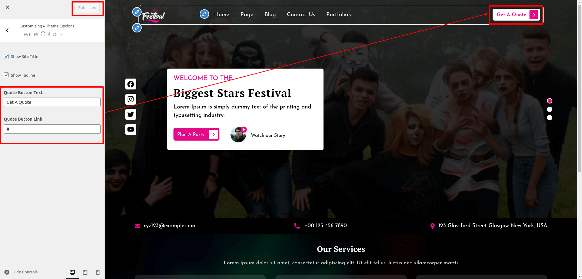 1. Add Quote Button Text & Add Quote Button link: There are option here for adding a Quote Button text and Quote Button link.