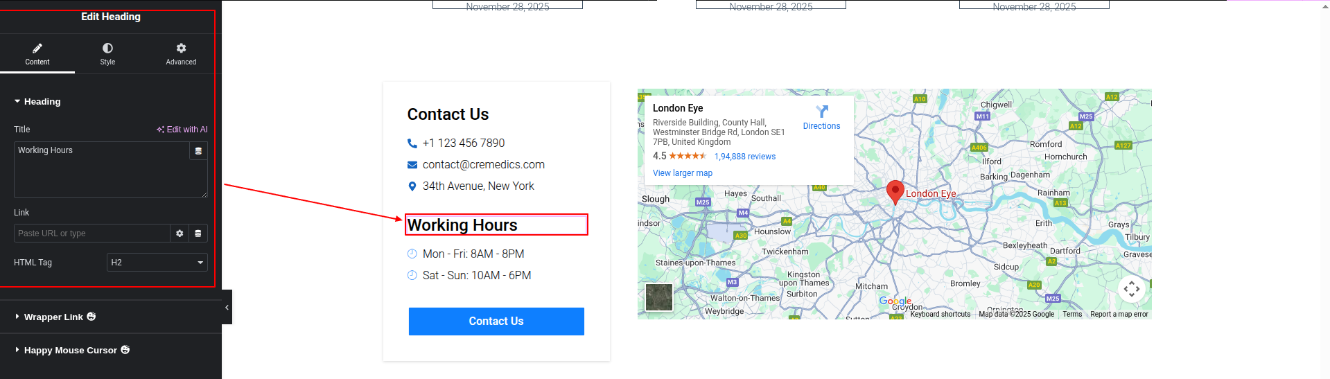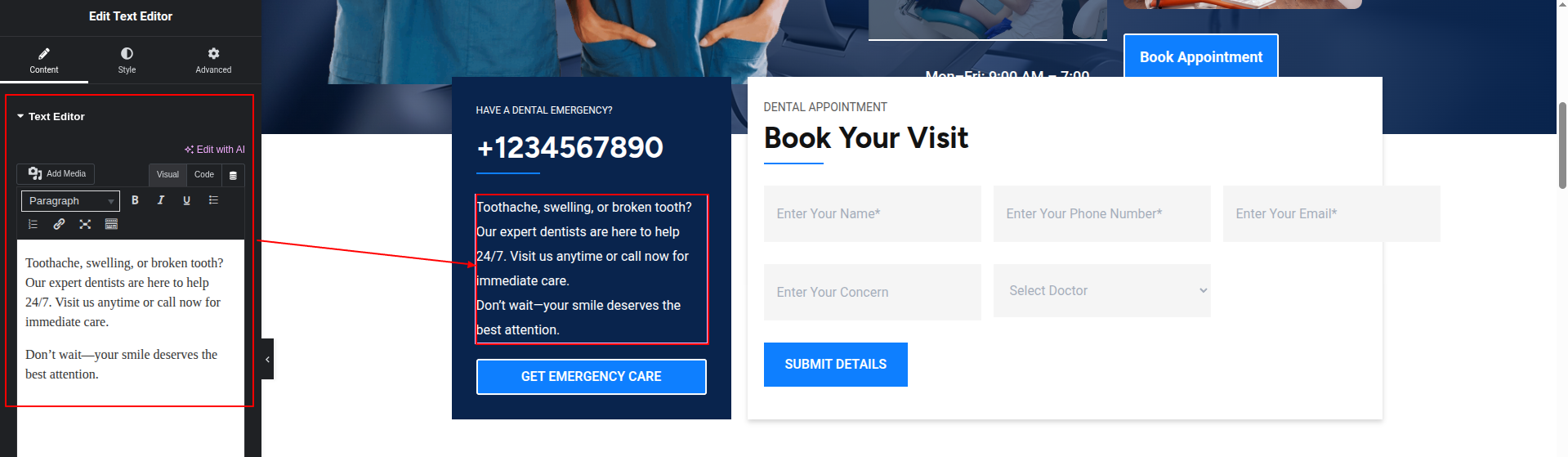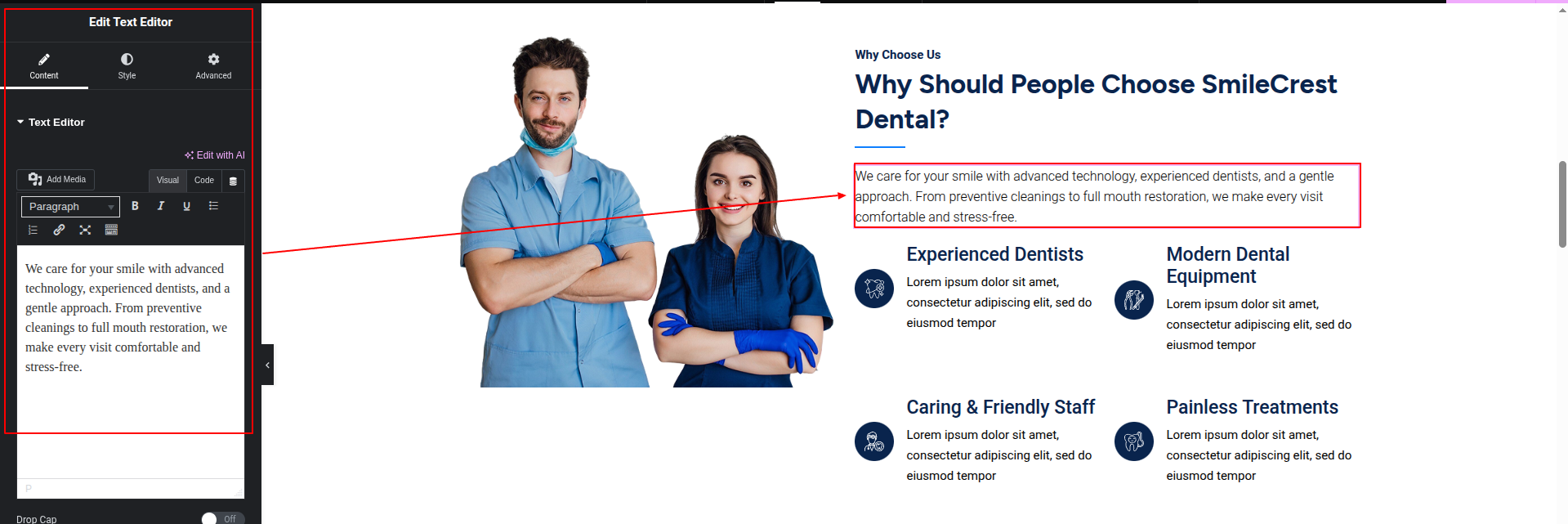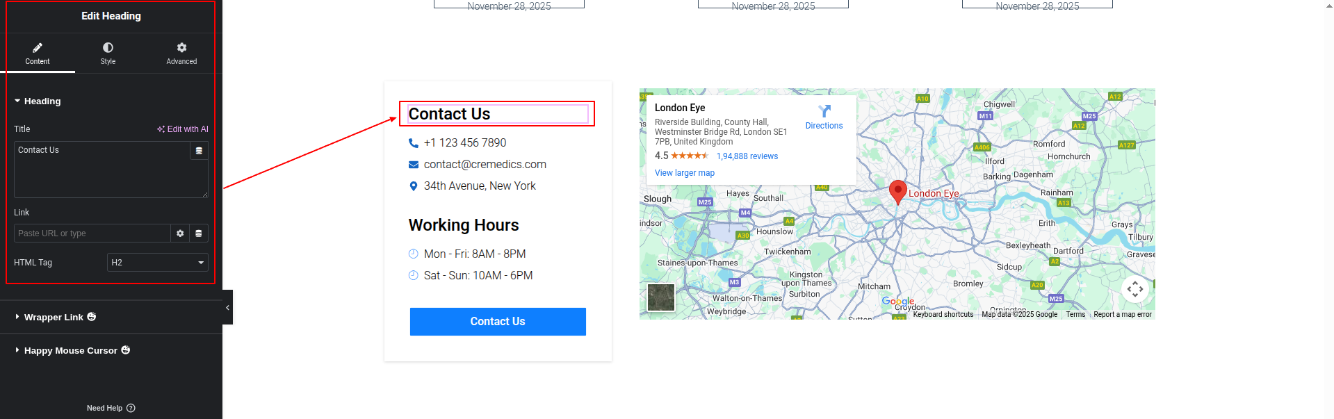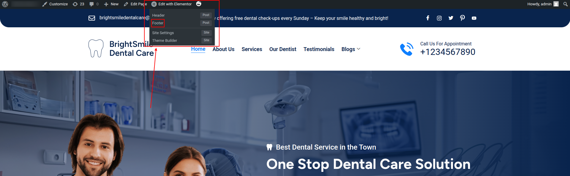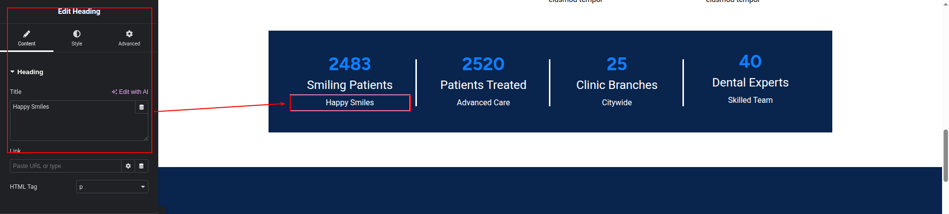 To Edit this Section, Click On the "Edit With Elementor" Button which will open the Elementor Widget editor.