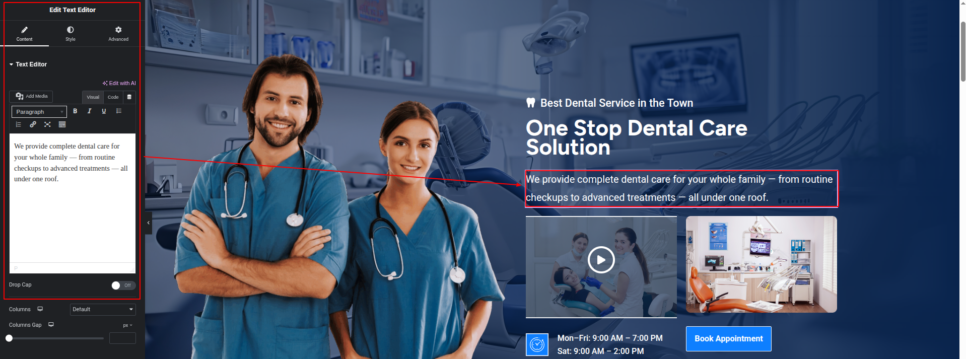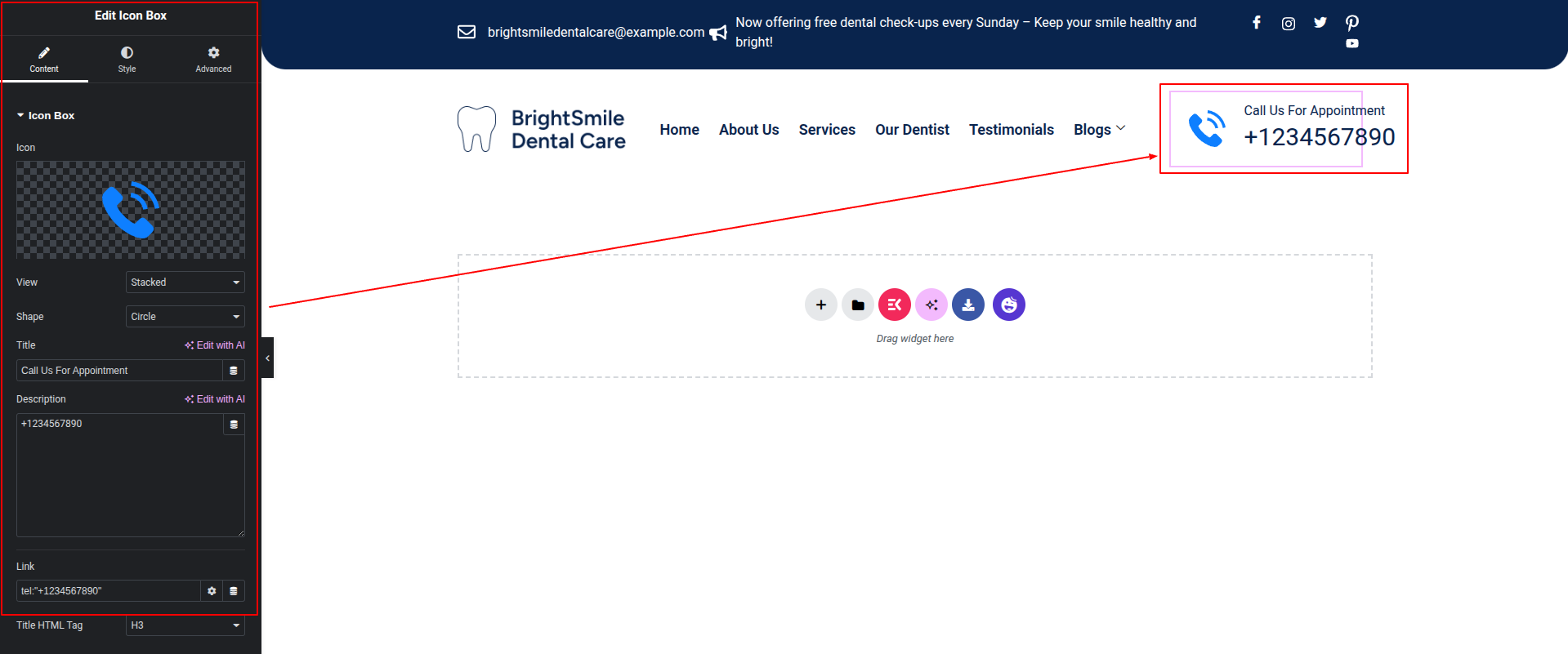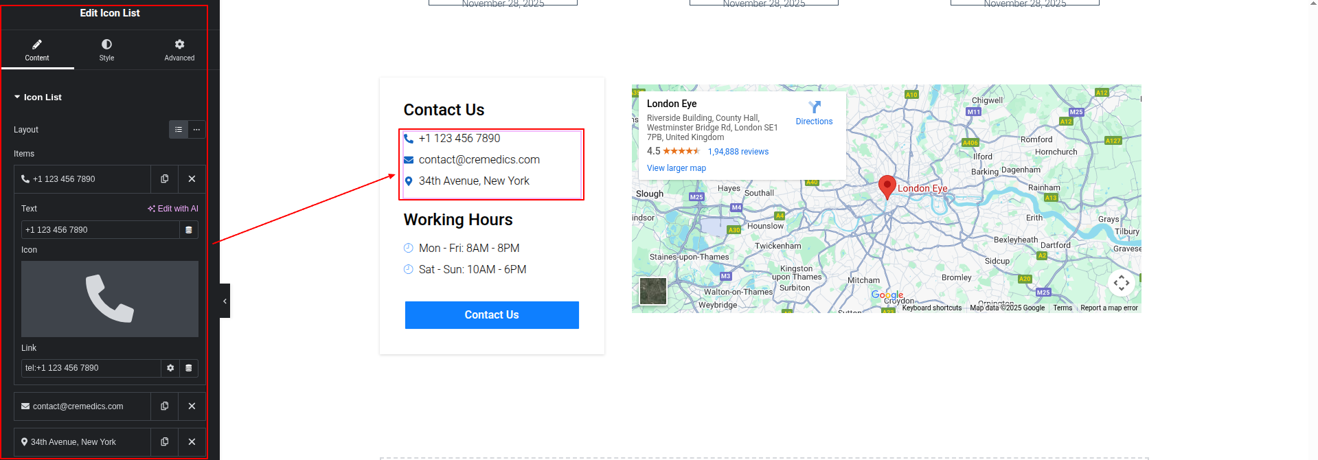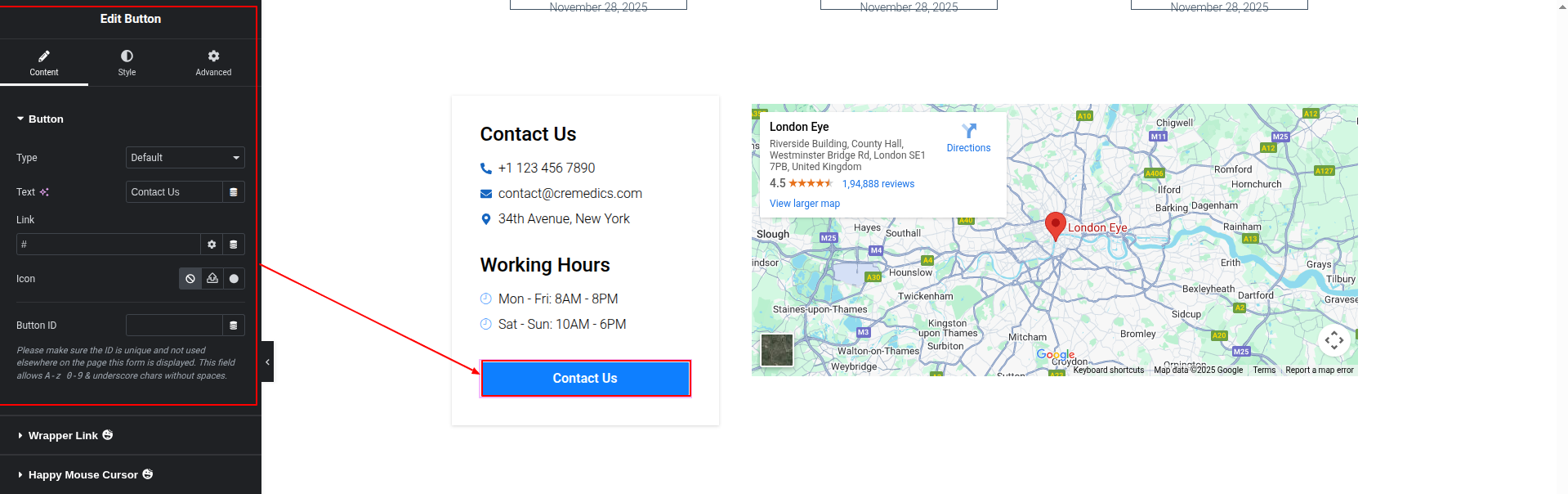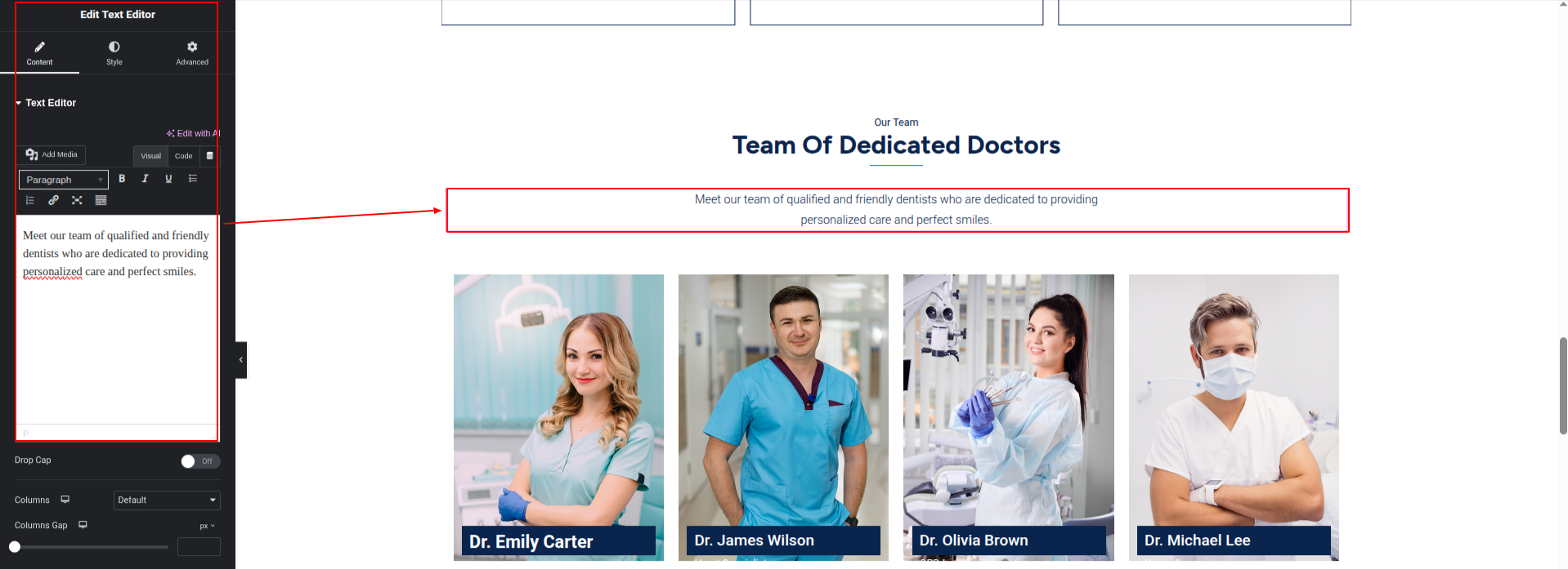 To Edit this Section, Click On the "Edit With Elementor" Button which will open the Elementor Widget editor.