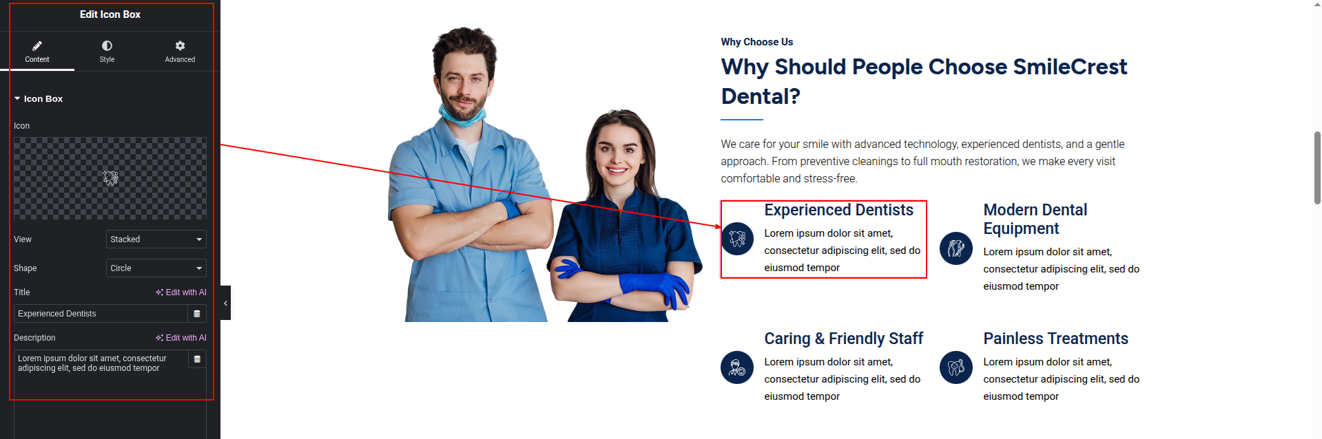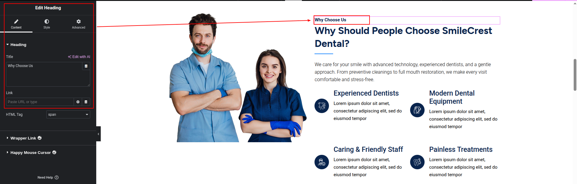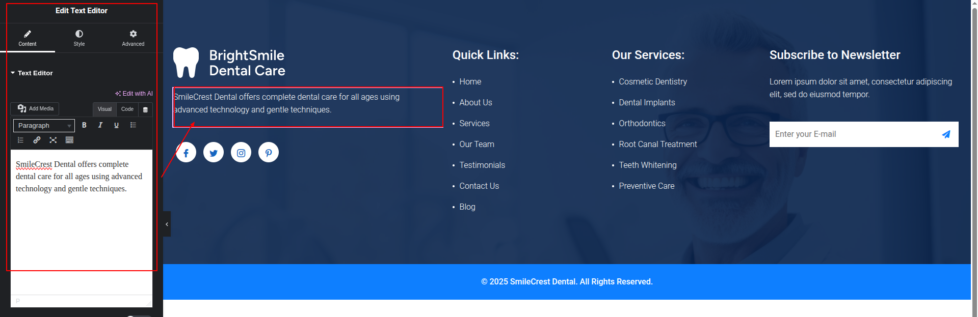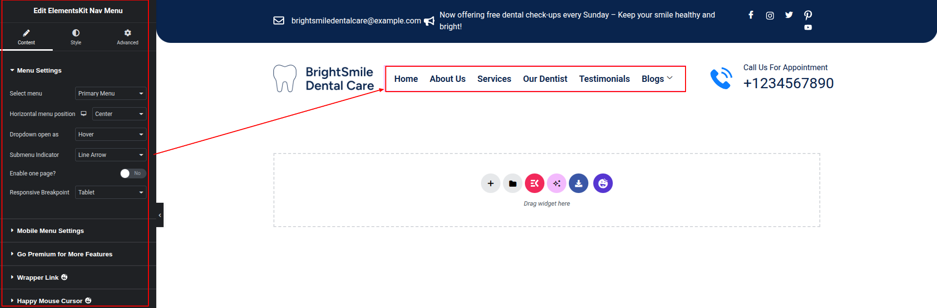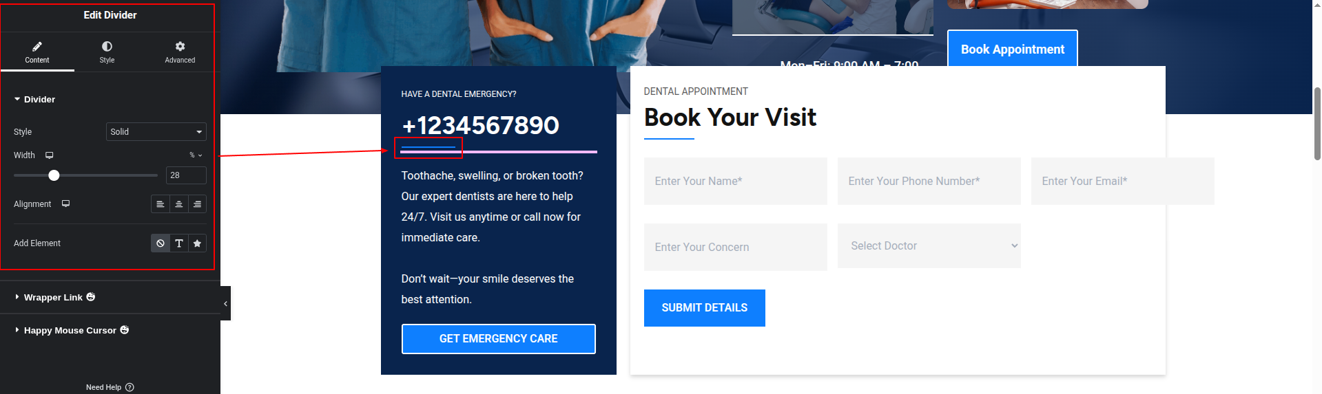To Edit this Section, Click On the "Edit With Elementor" Button which will open the Elementor Widget editor.