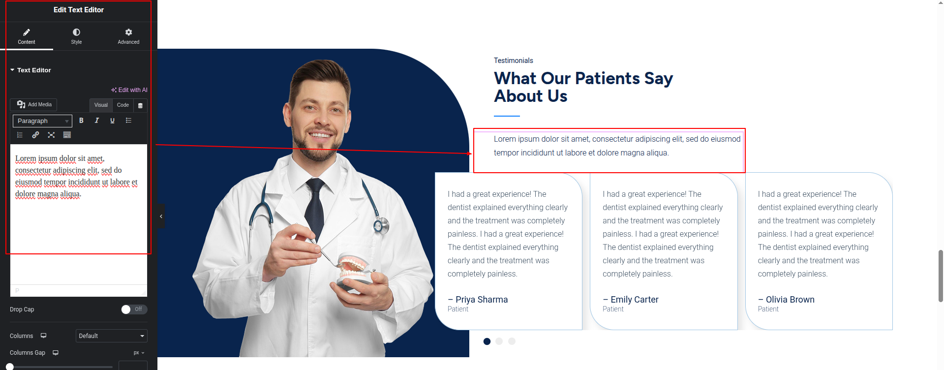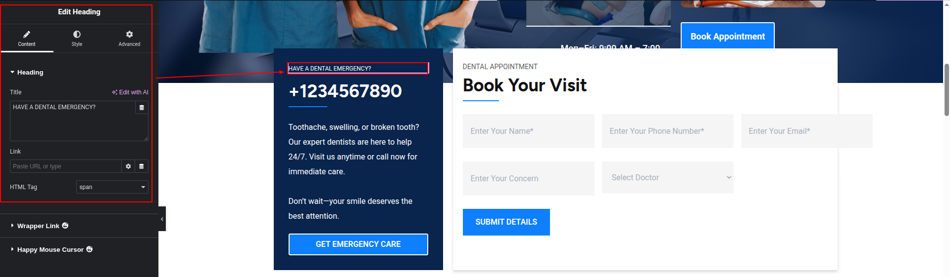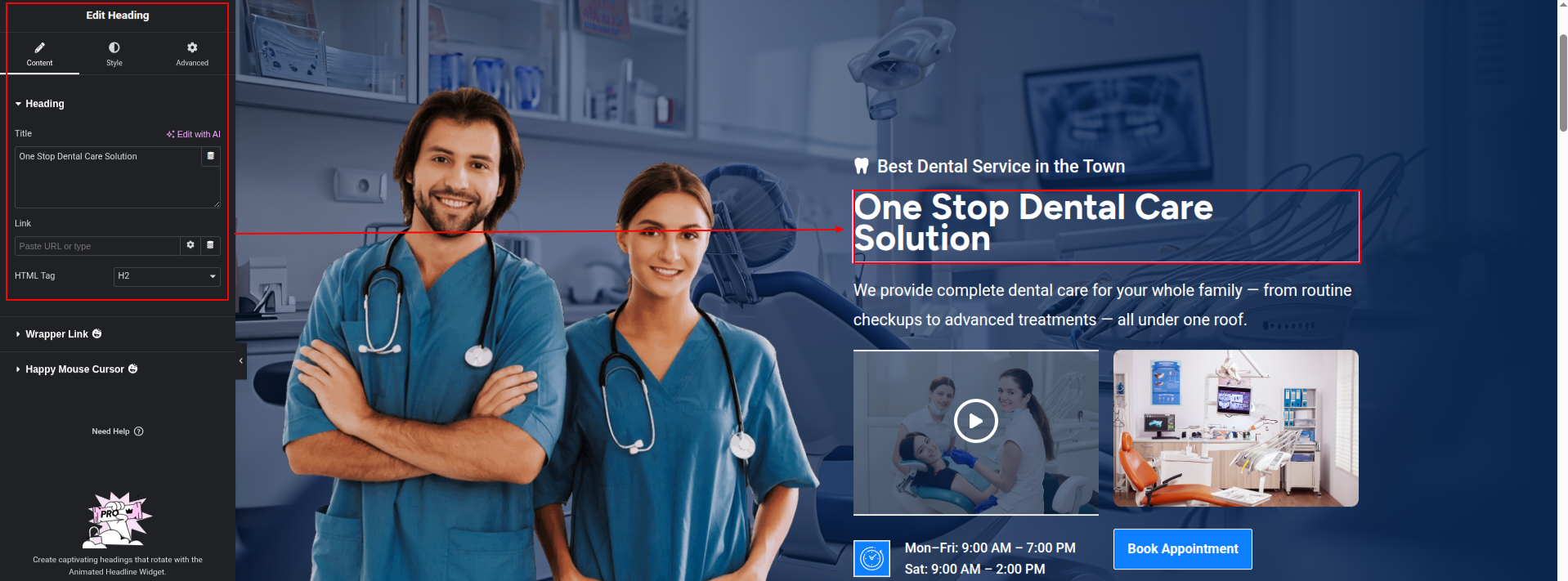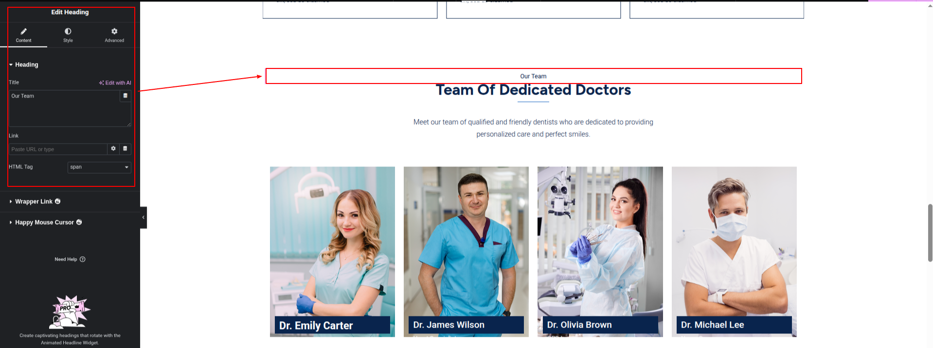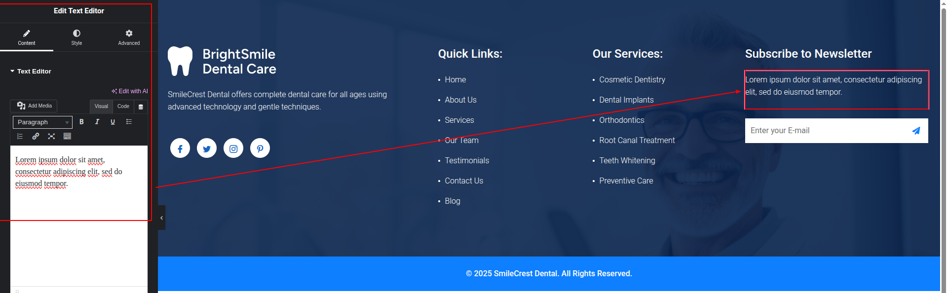 To Edit this Section, Click On the "Edit With Elementor" Button which will open the Elementor Widget editor.