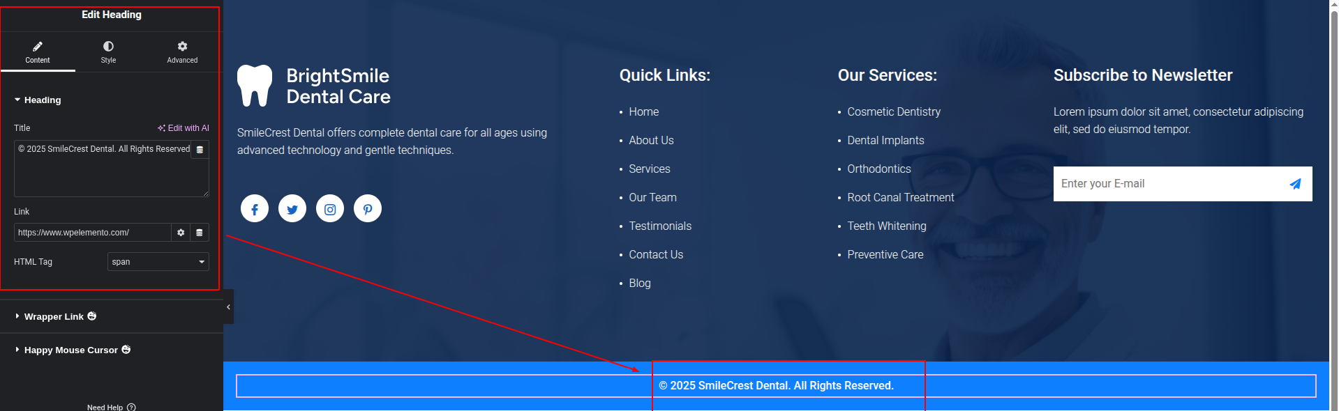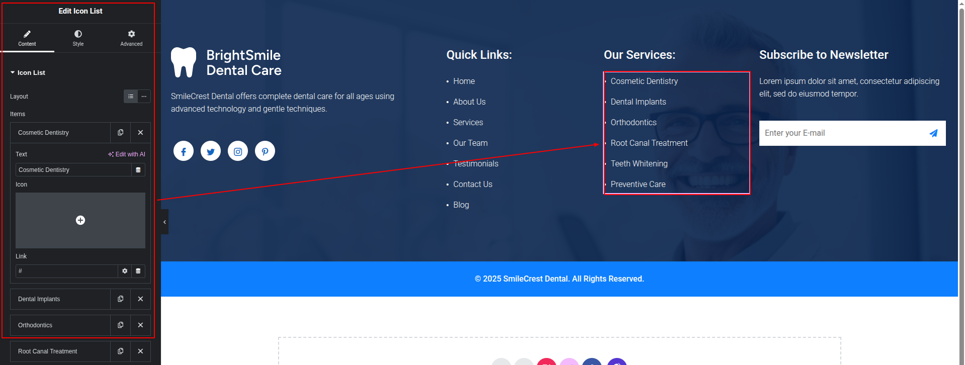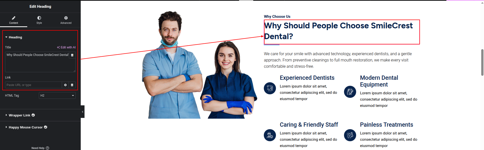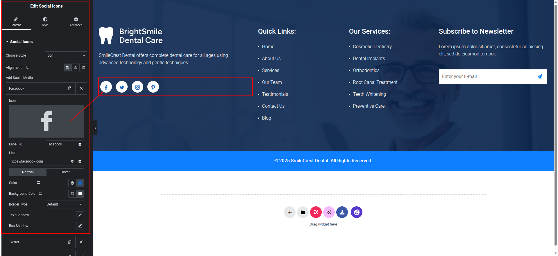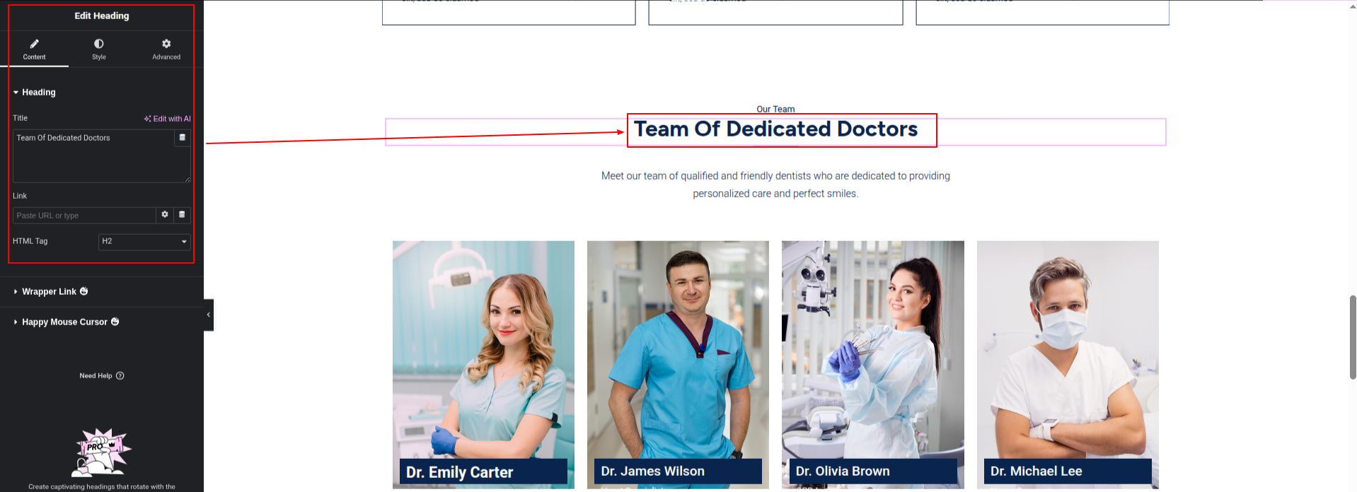 To Edit this Section, Click On the "Edit With Elementor" Button which will open the Elementor Widget editor.