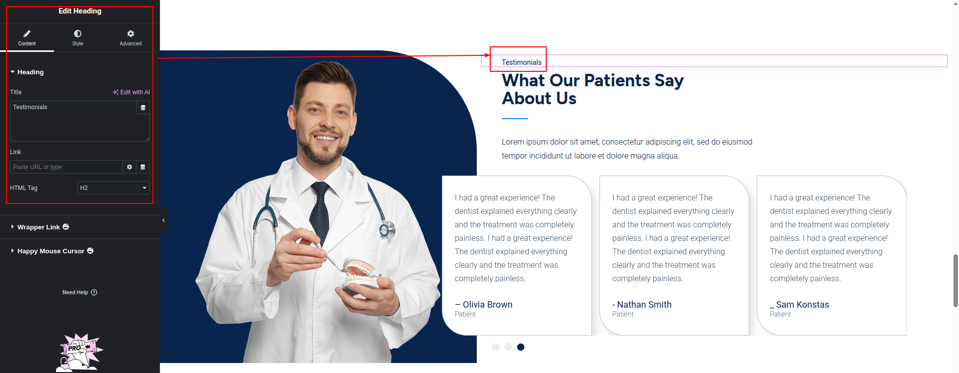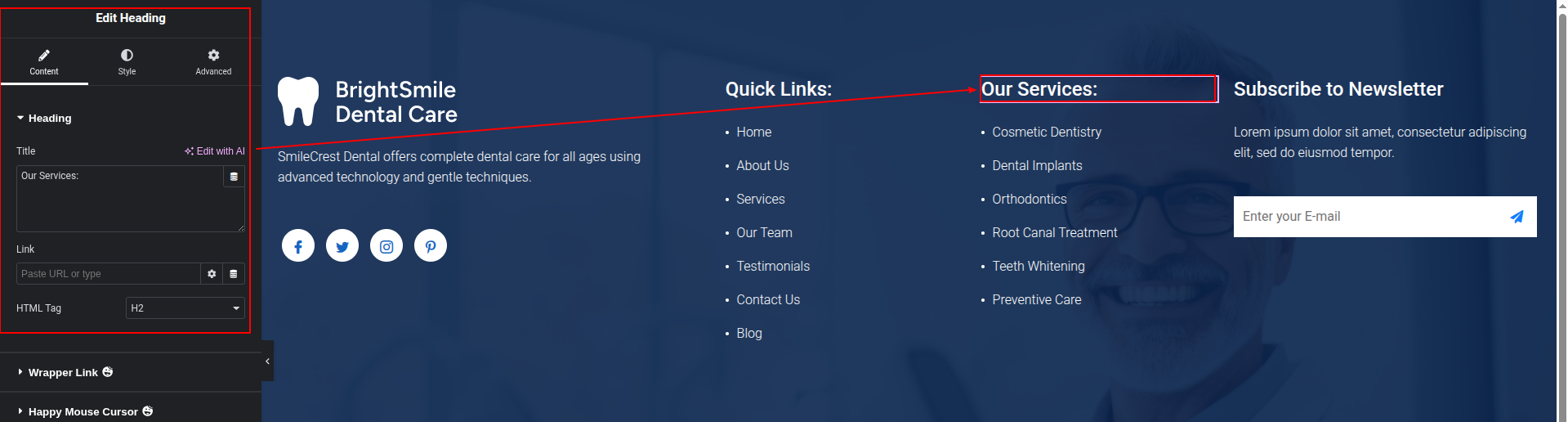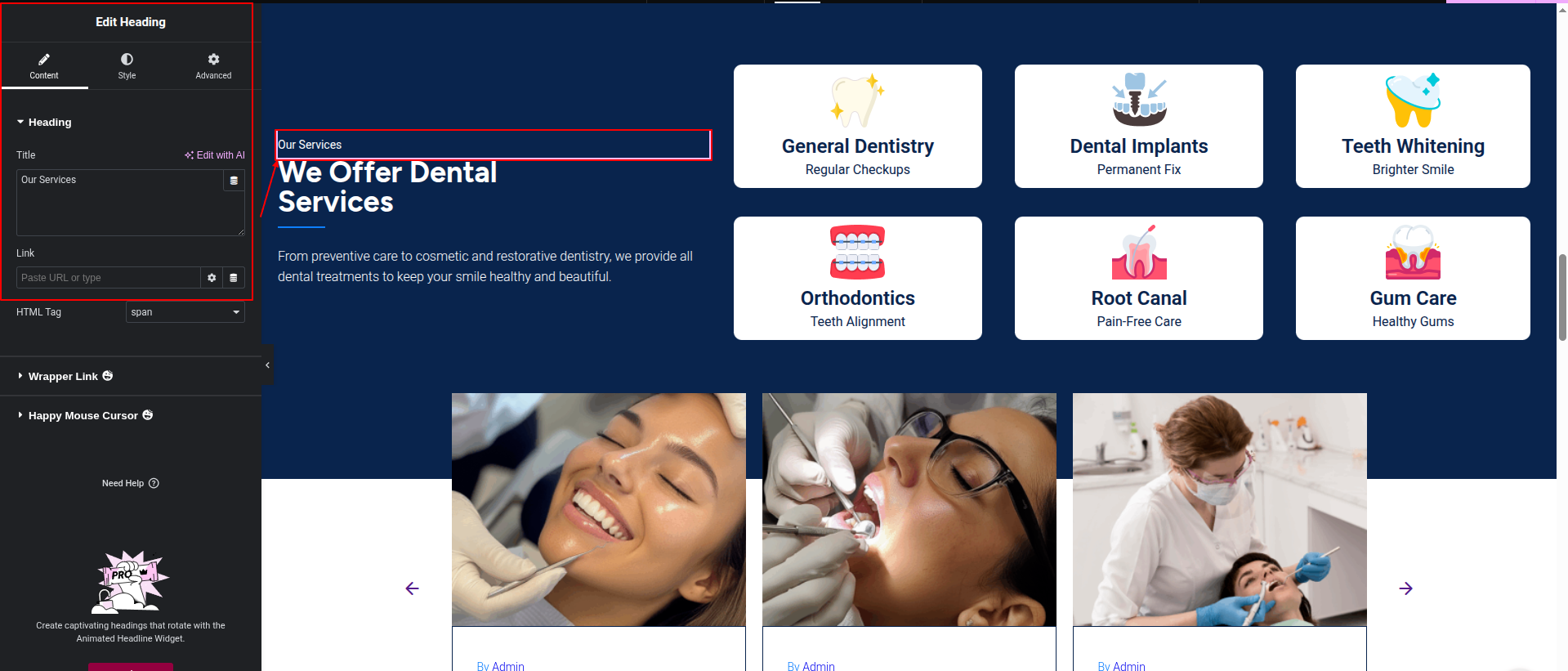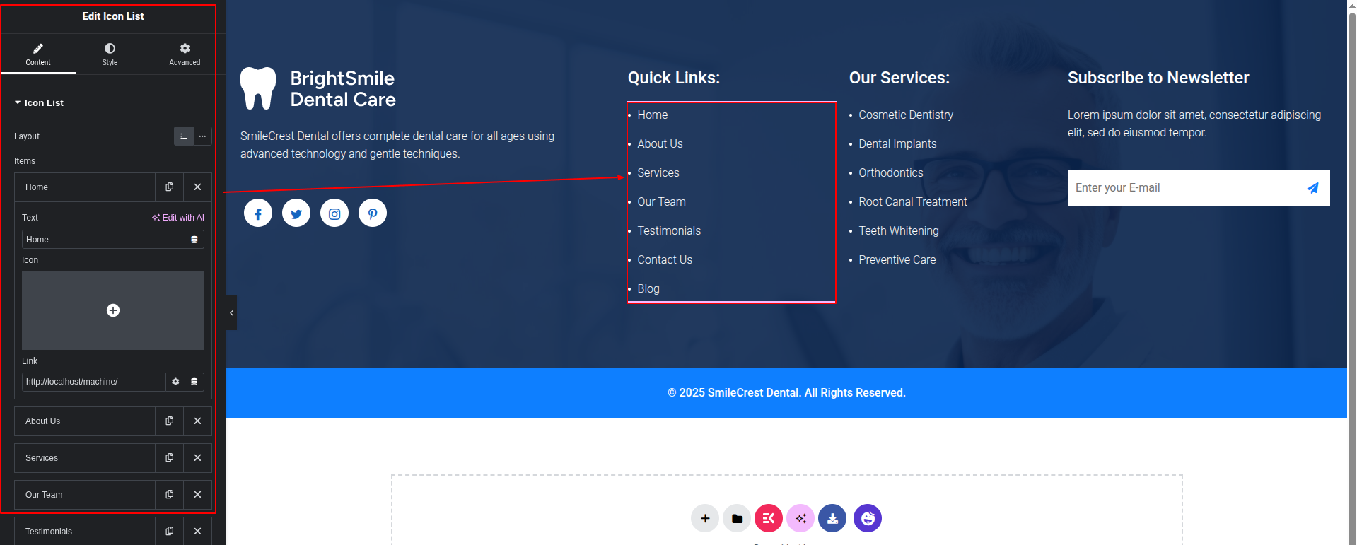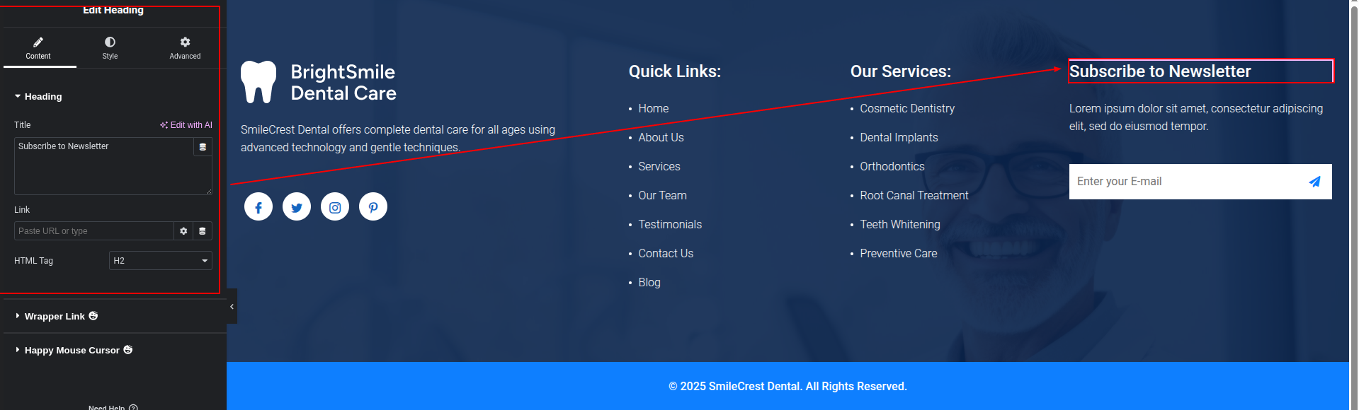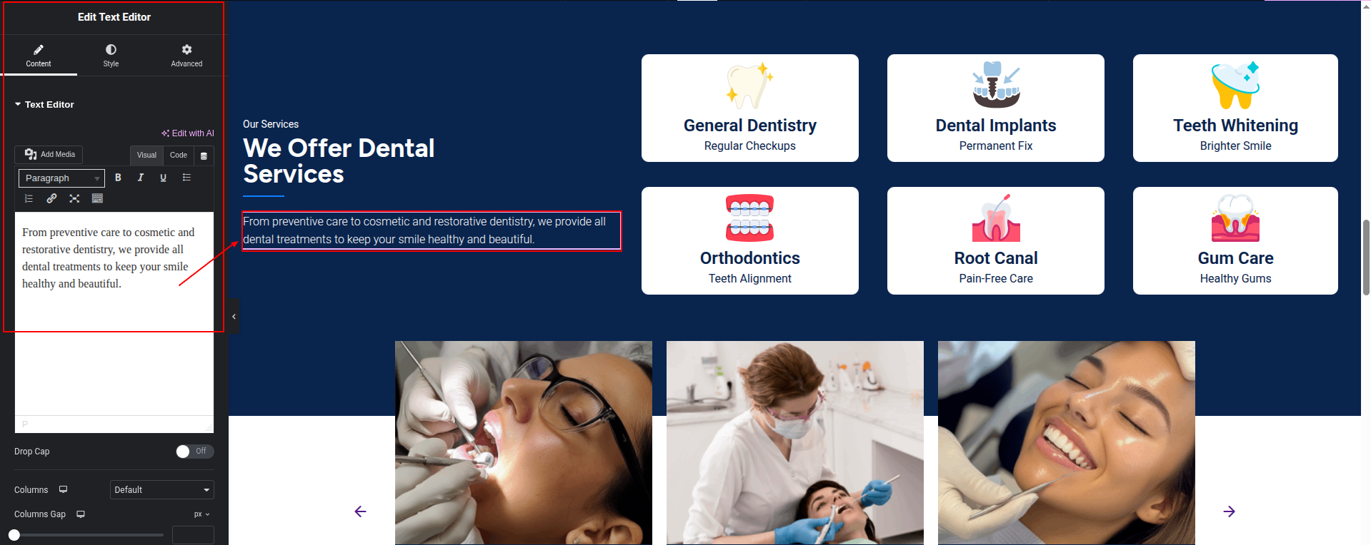 To Edit this Section, Click On the "Edit With Elementor" Button which will open the Elementor Widget editor.