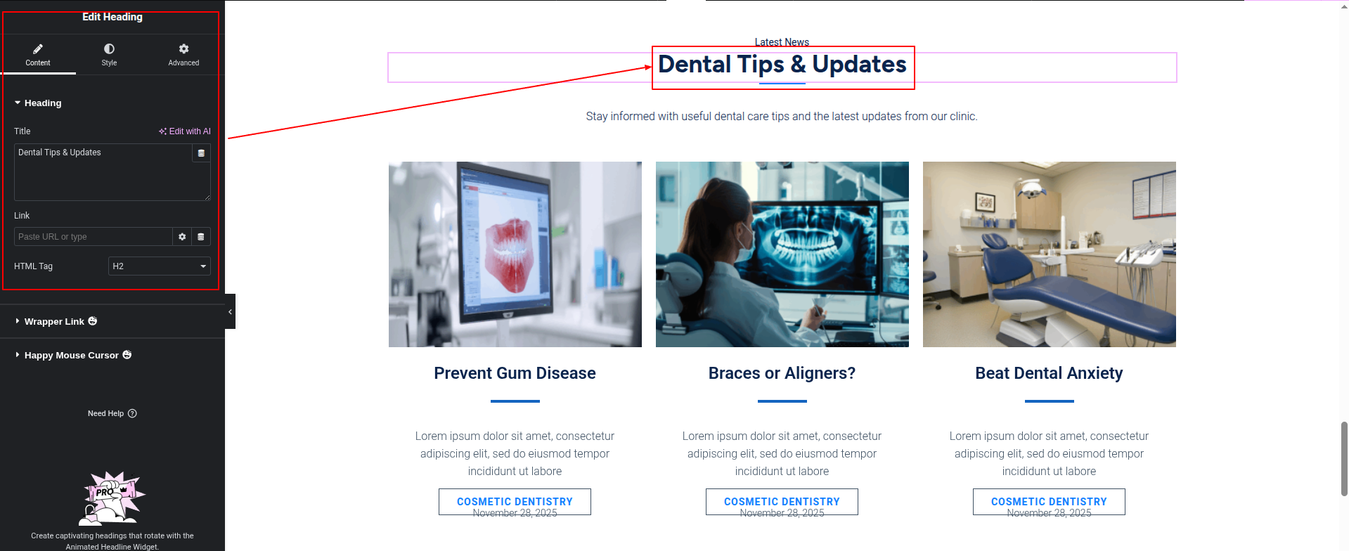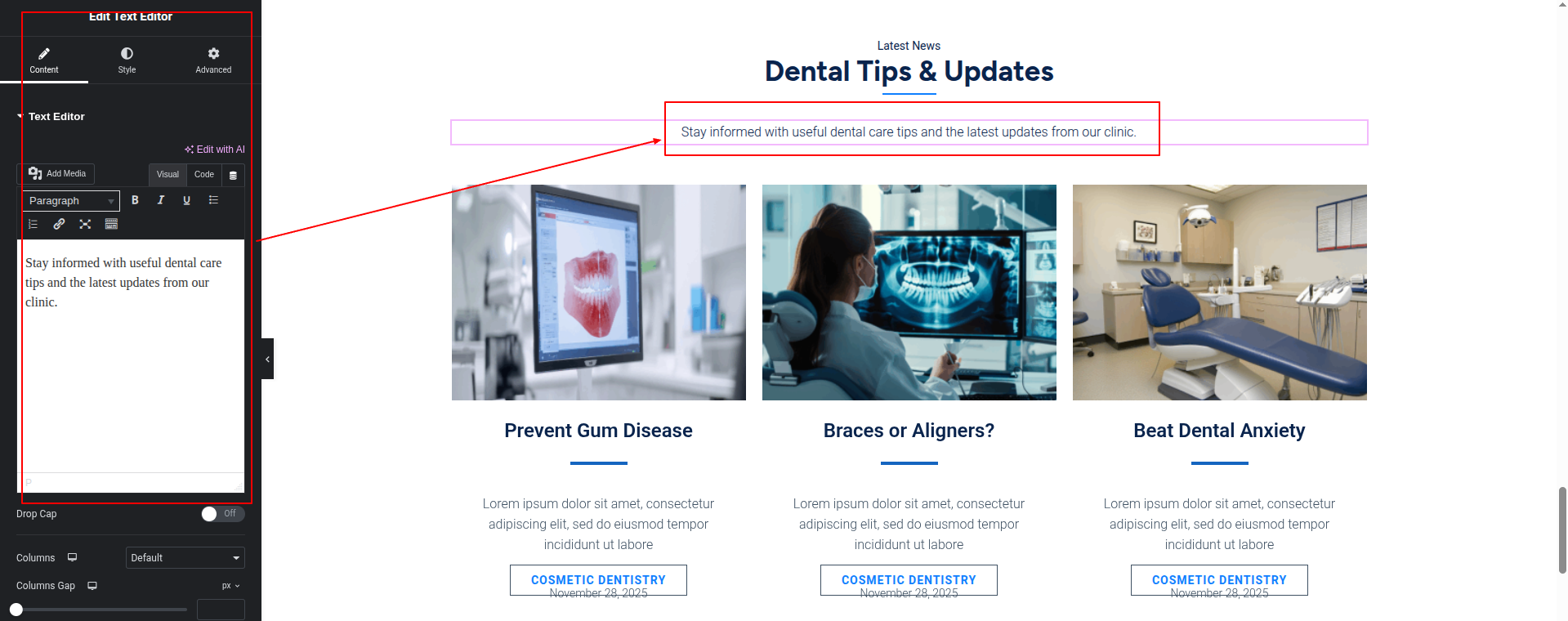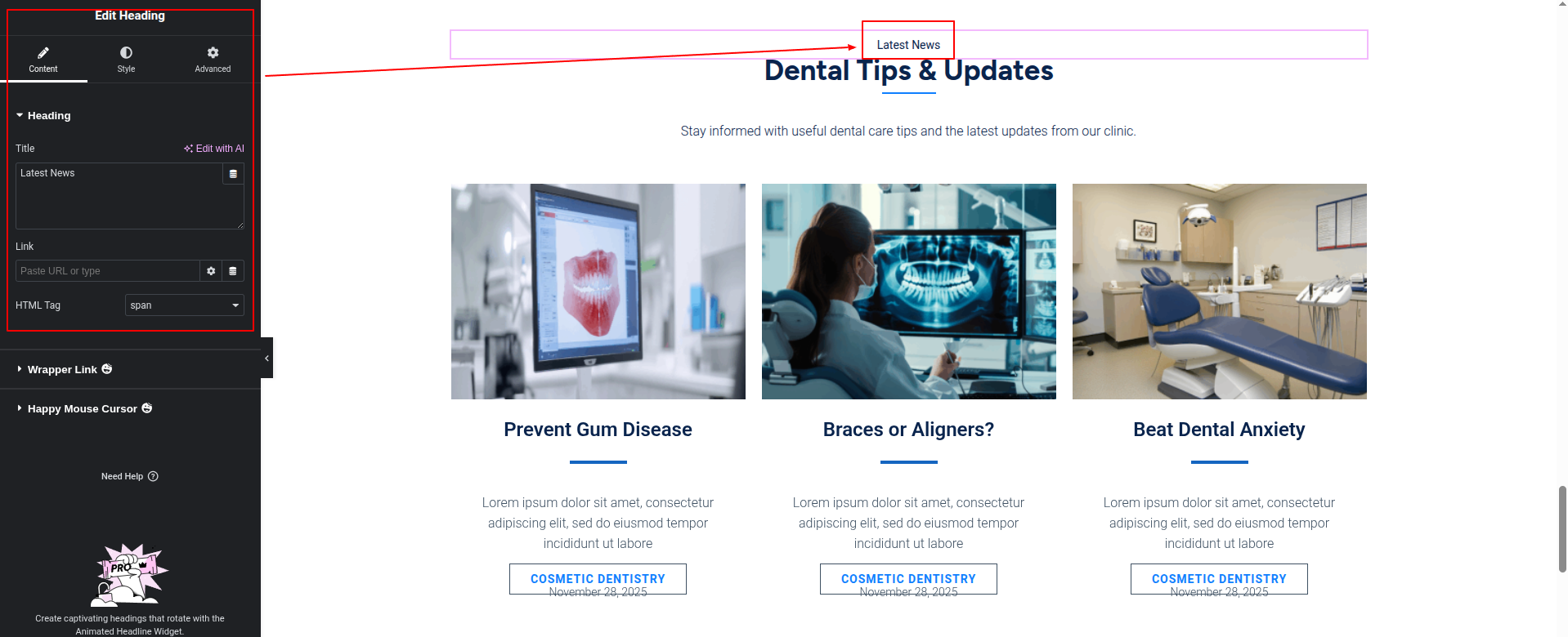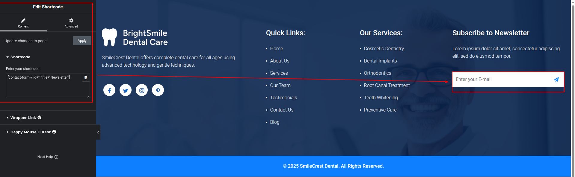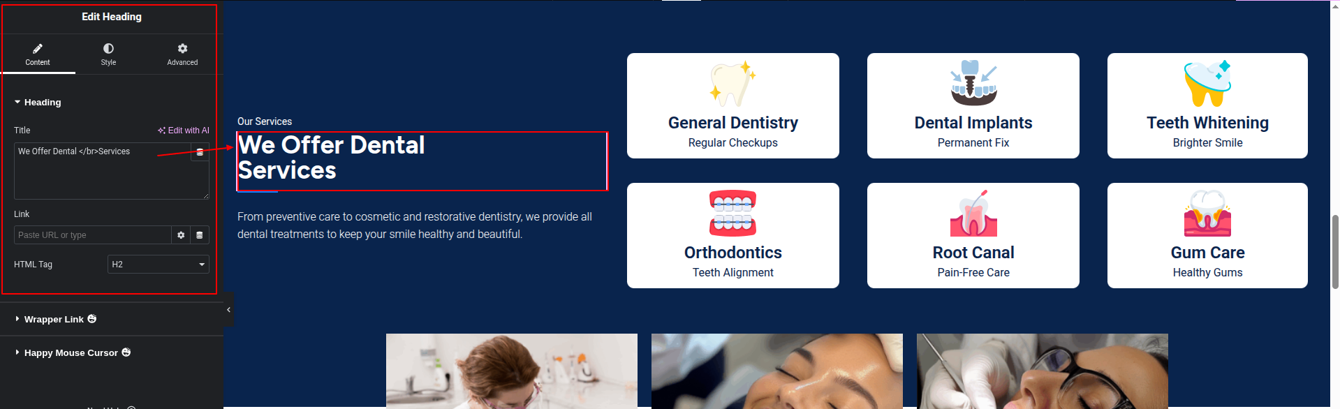To Edit this Section, Click On the "Edit With Elementor" Button which will open the Elementor Widget editor.