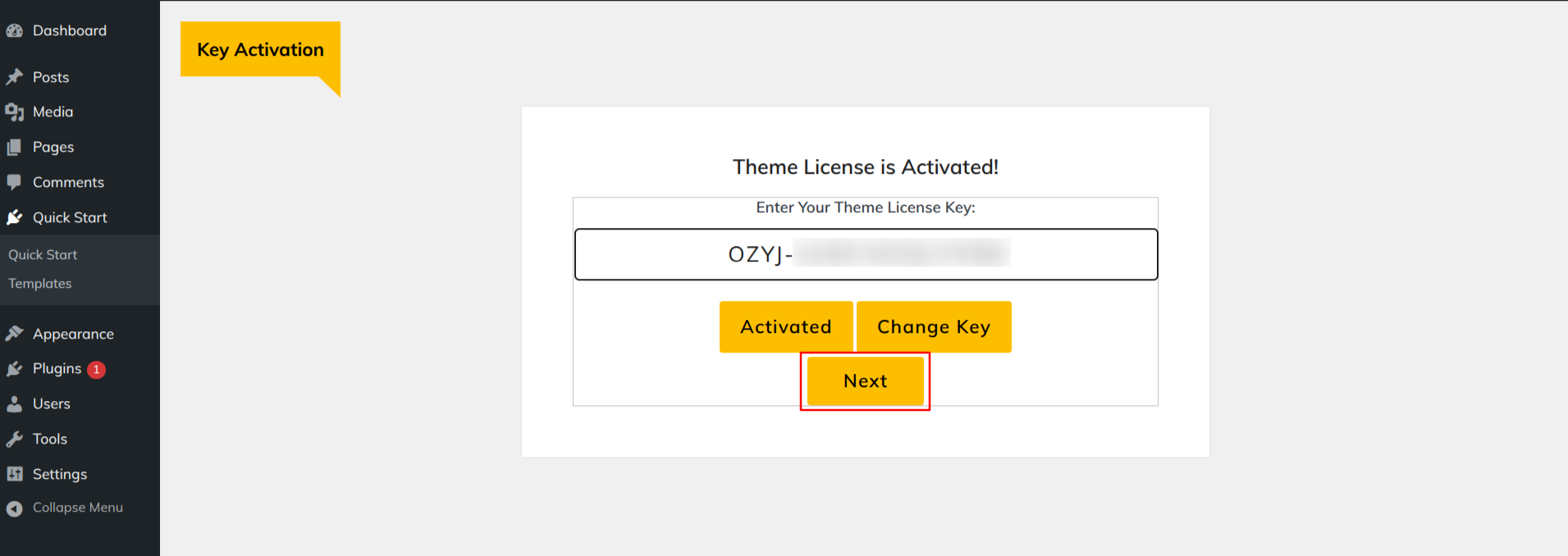 5) After activating the license key, click Next.