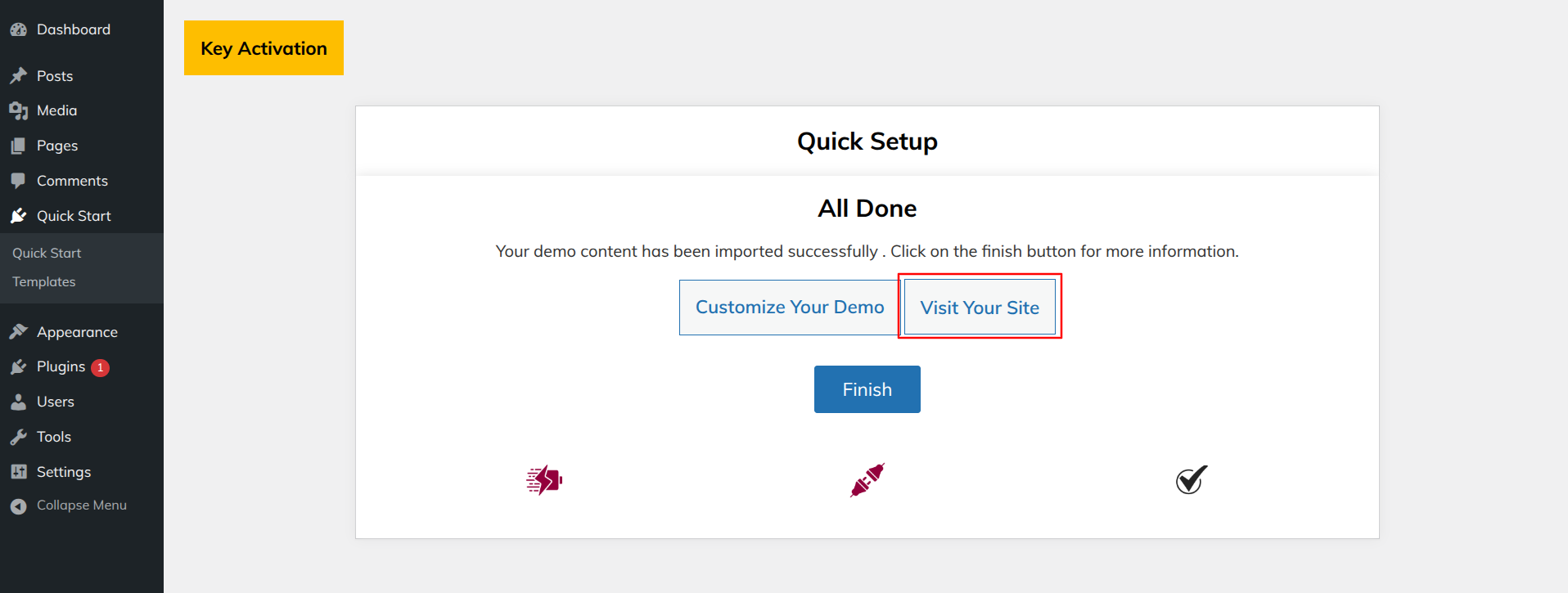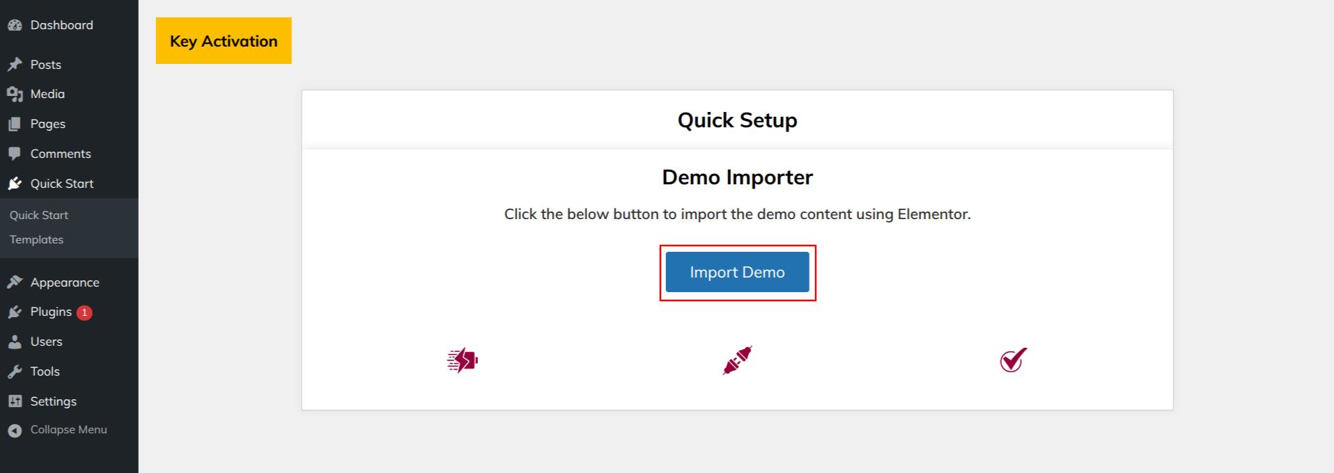 3) Select "Start Demo" Import Buttons
