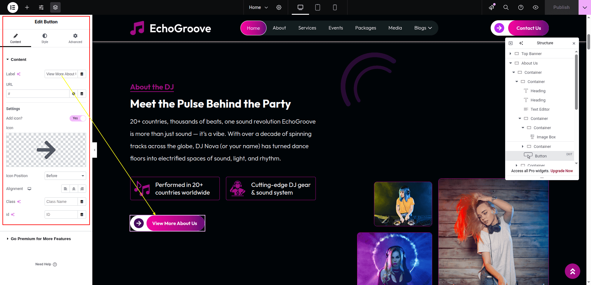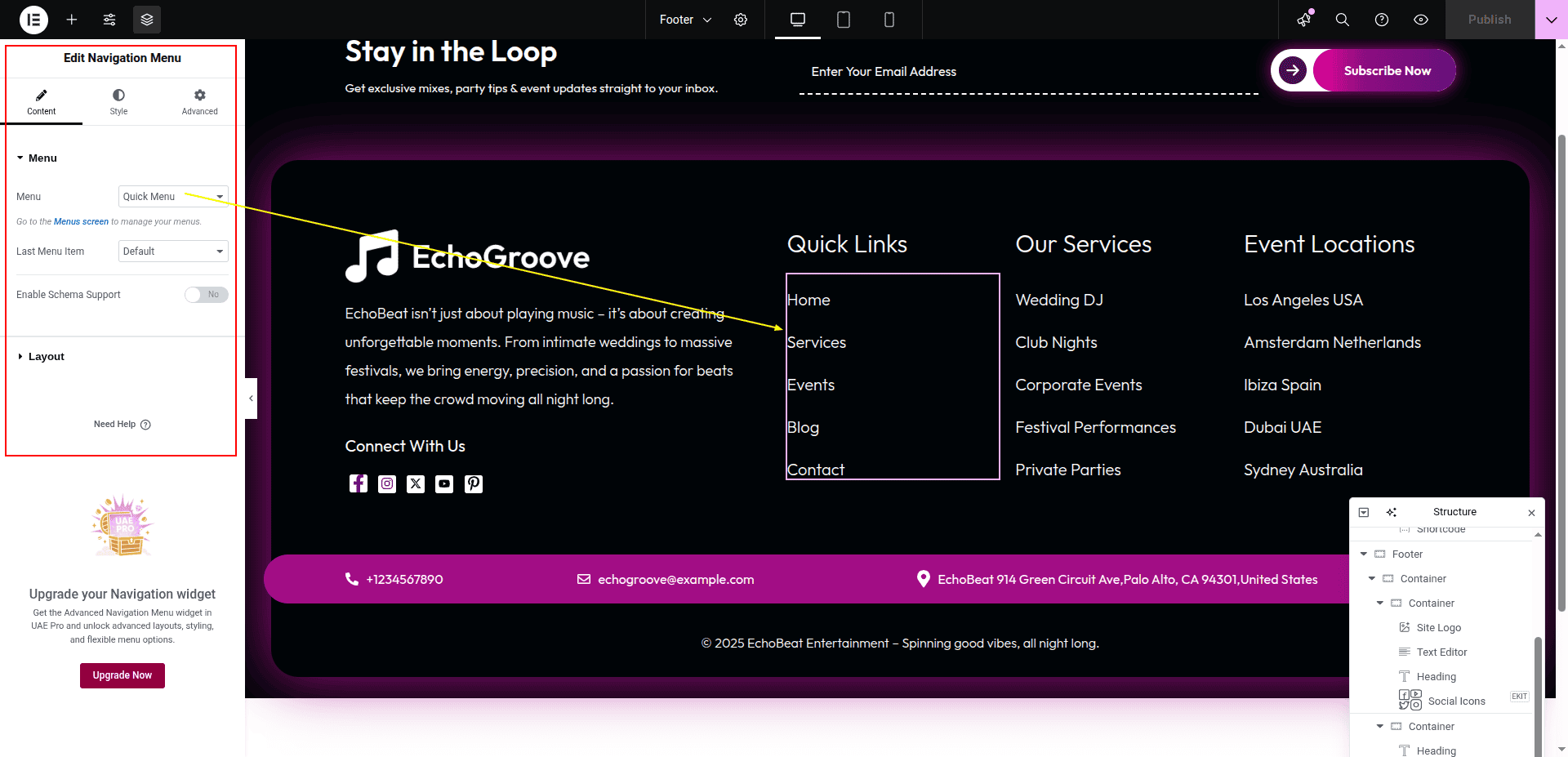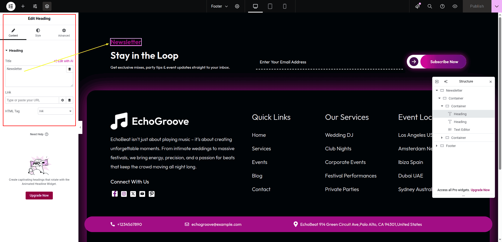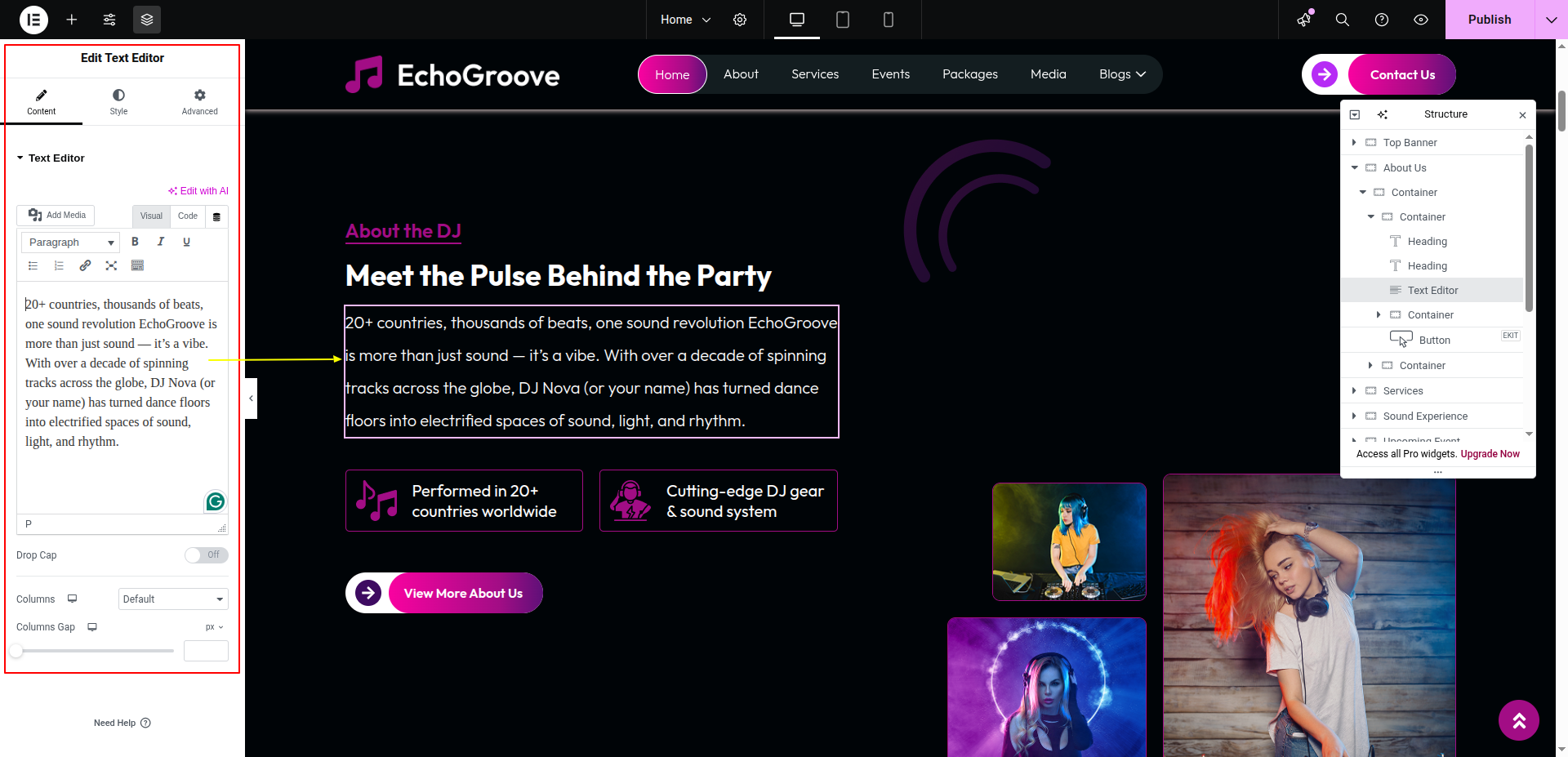 To Edit this Section, Click On the "Edit With Elementor" Button which will open the Elementor Widget editor.