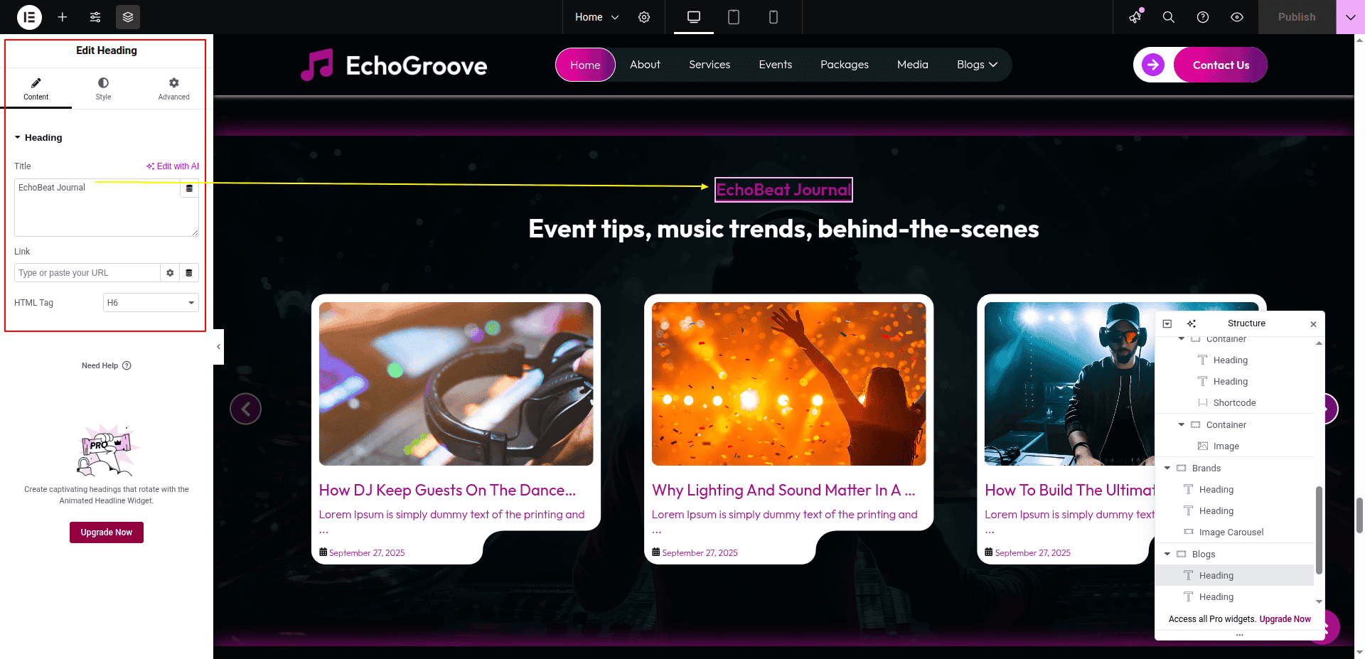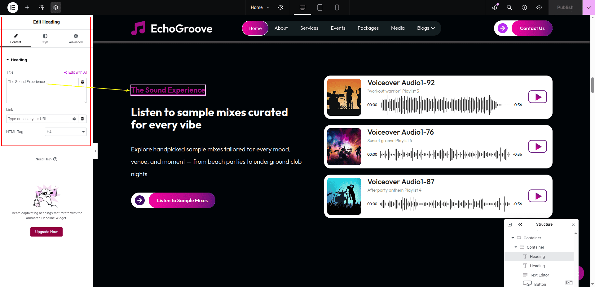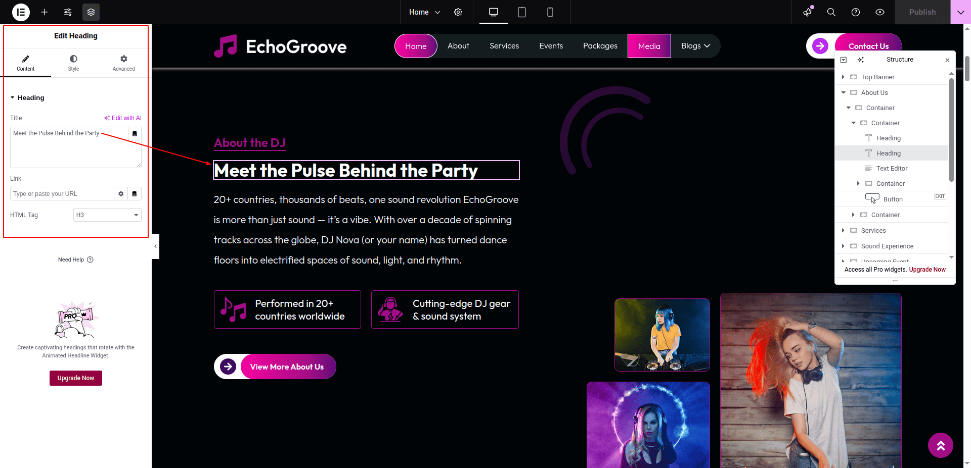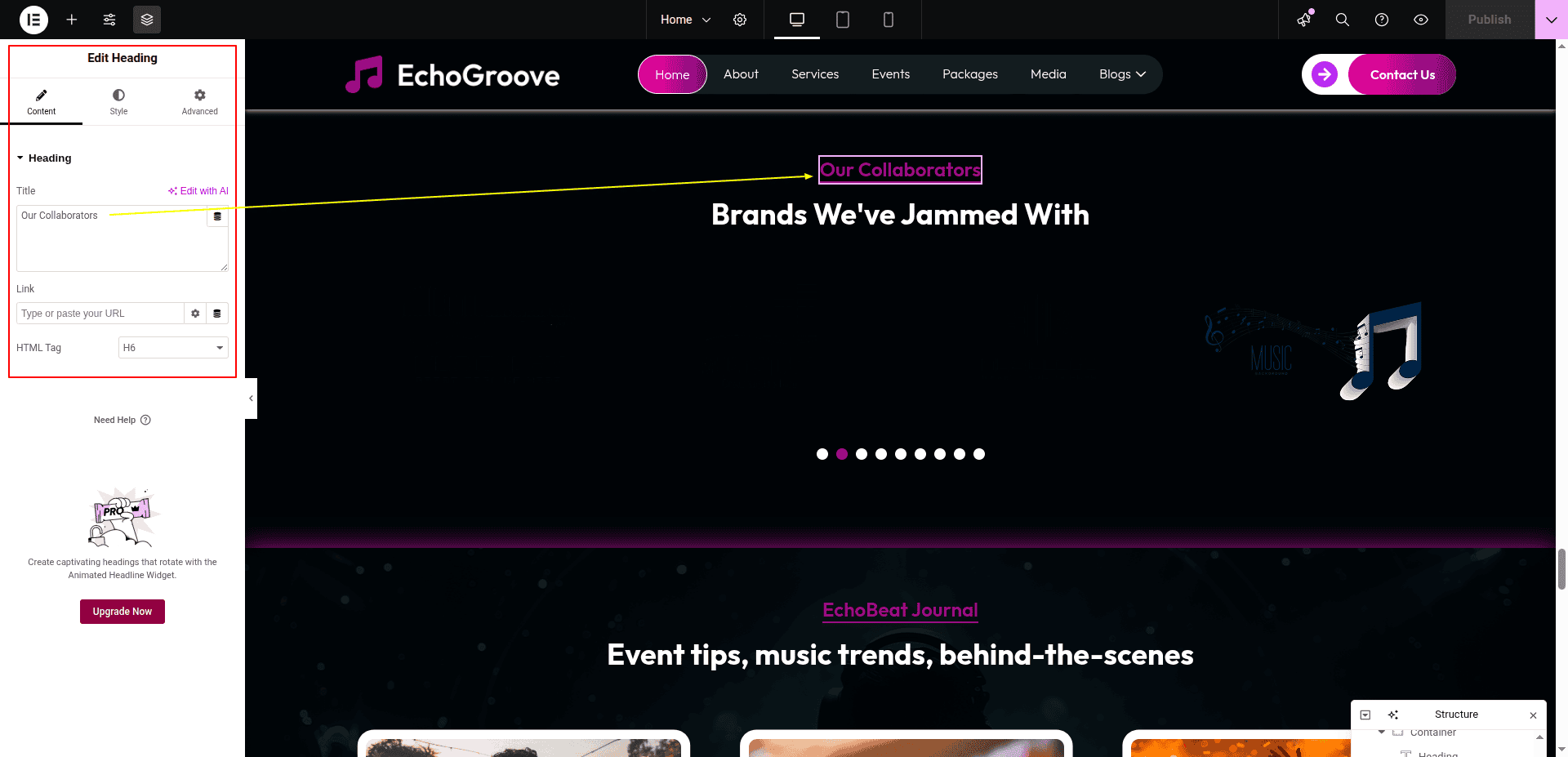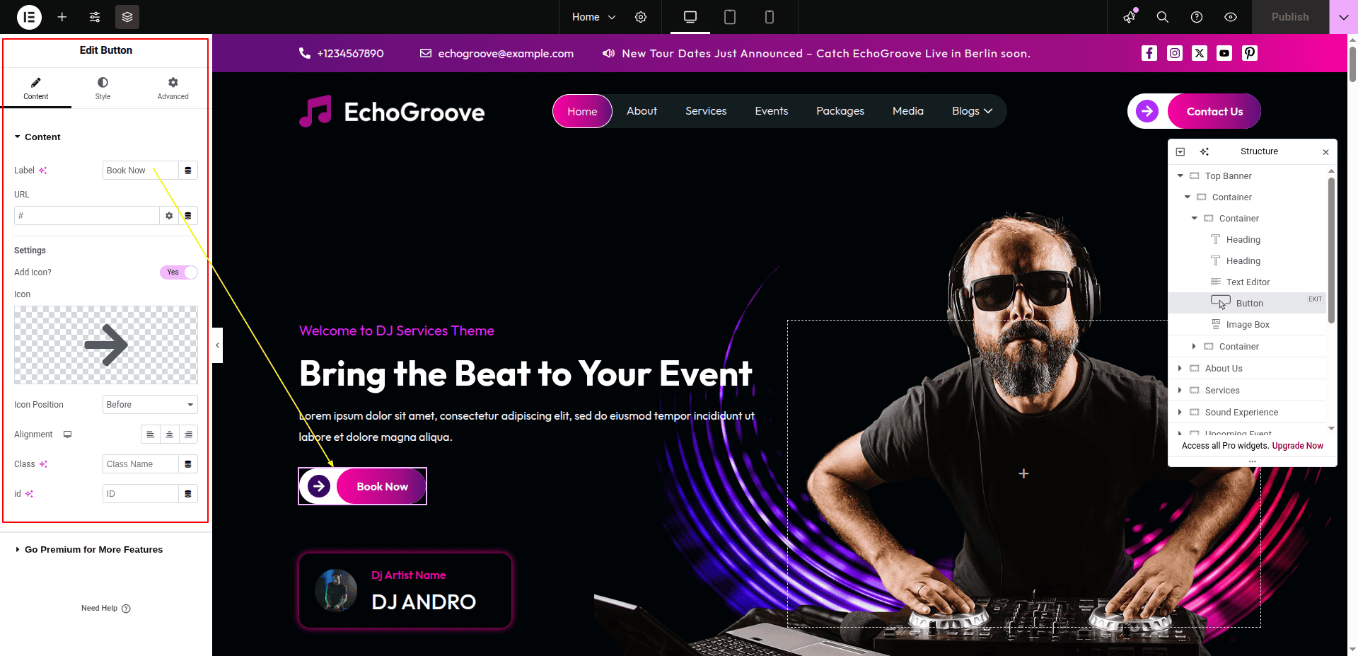 To Edit this Section, Click On the "Edit With Elementor" Button which will open the Elementor Widget editor.