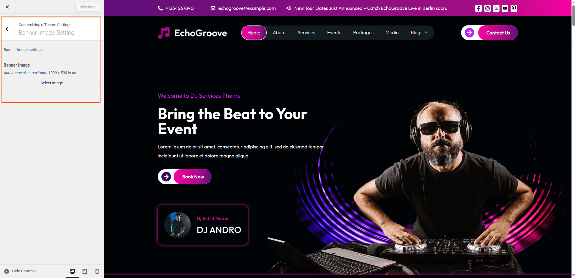 2) Go to:- Dashboard >> Appearance >> Customize>>Theme Settings>> Banner Image Settings.