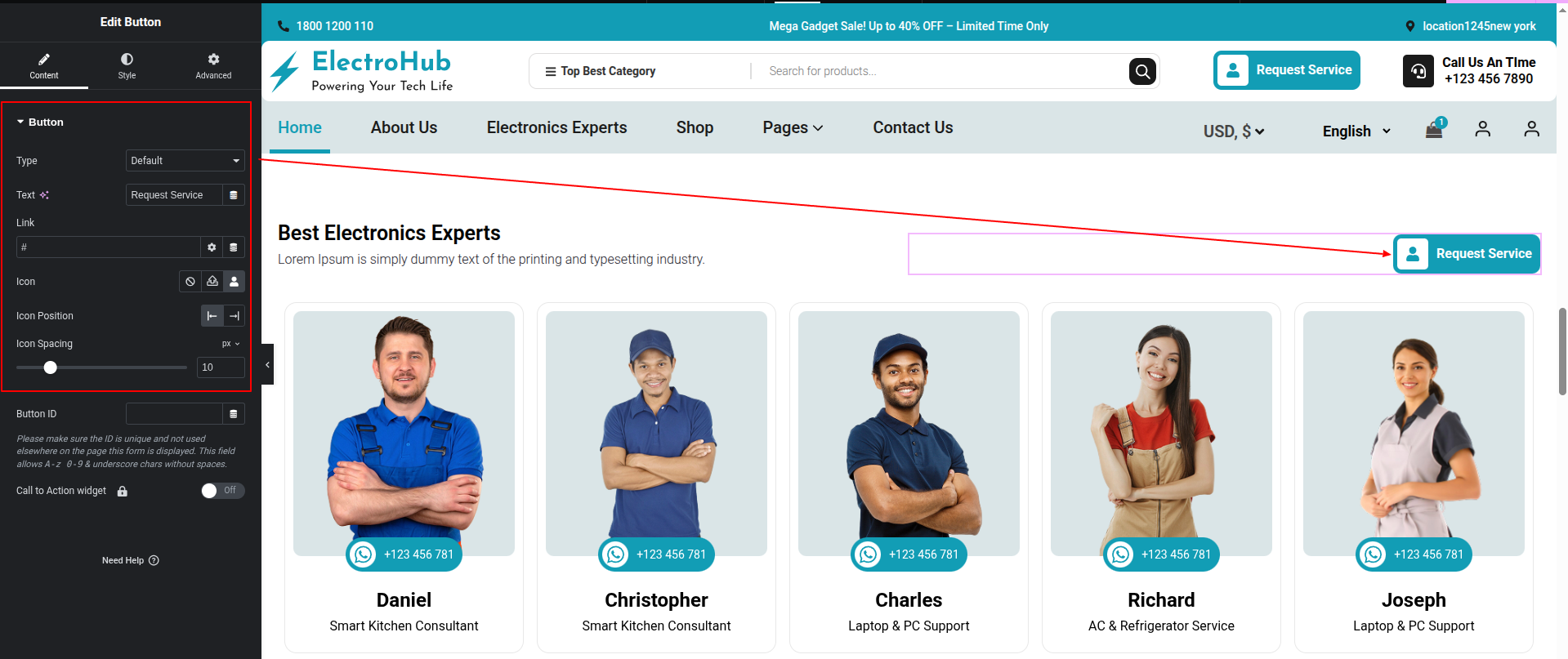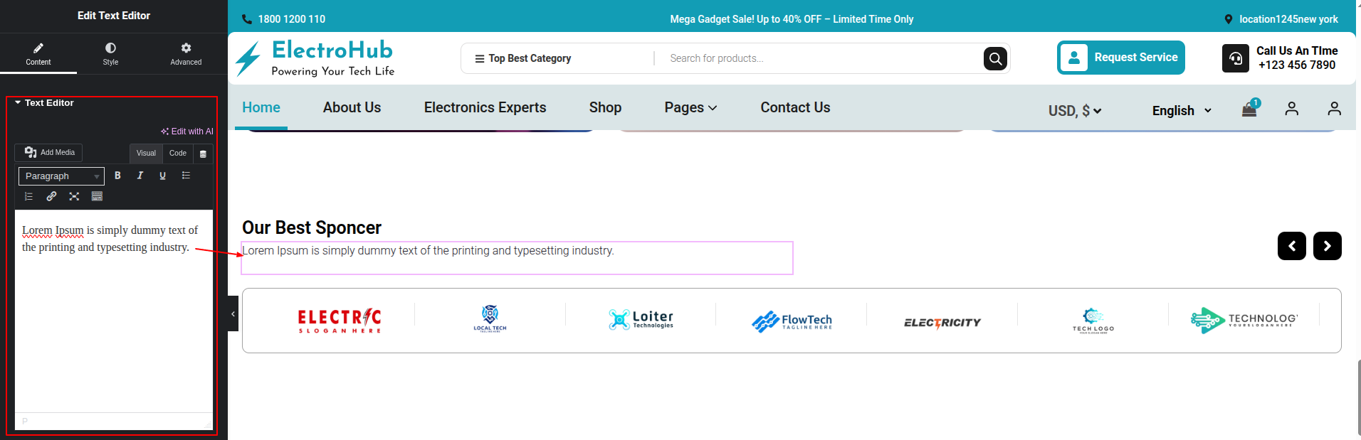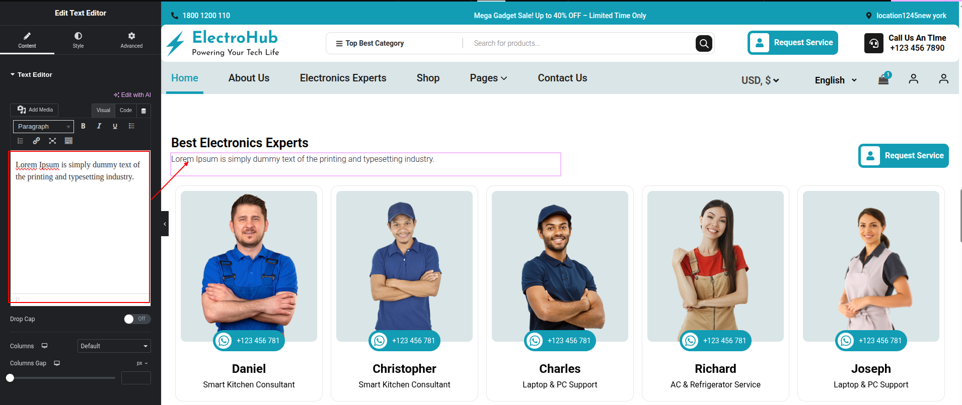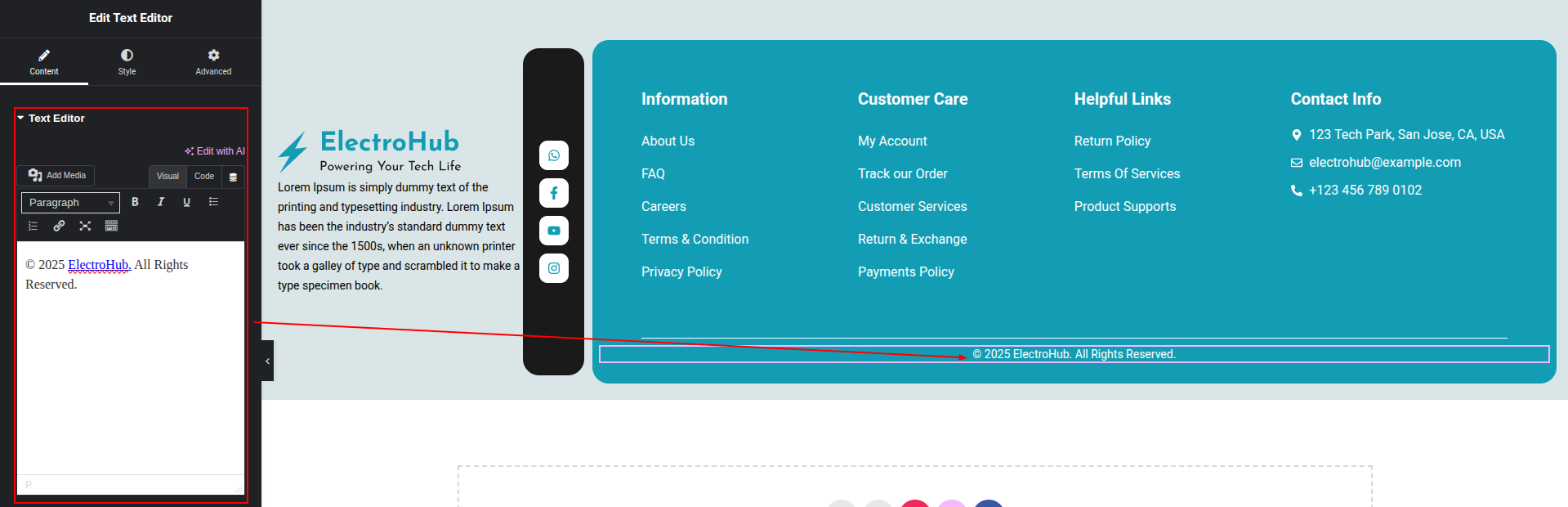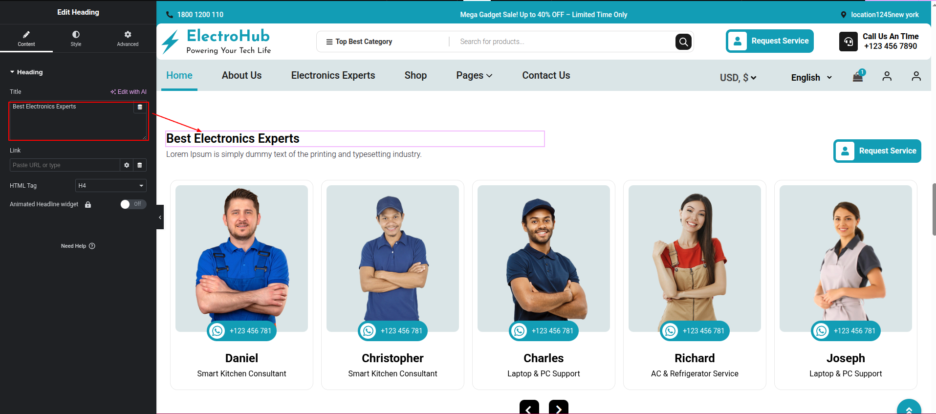 To Edit this Section, Click On the "Edit With Elementor" Button which will open the Elementor Widget editor.