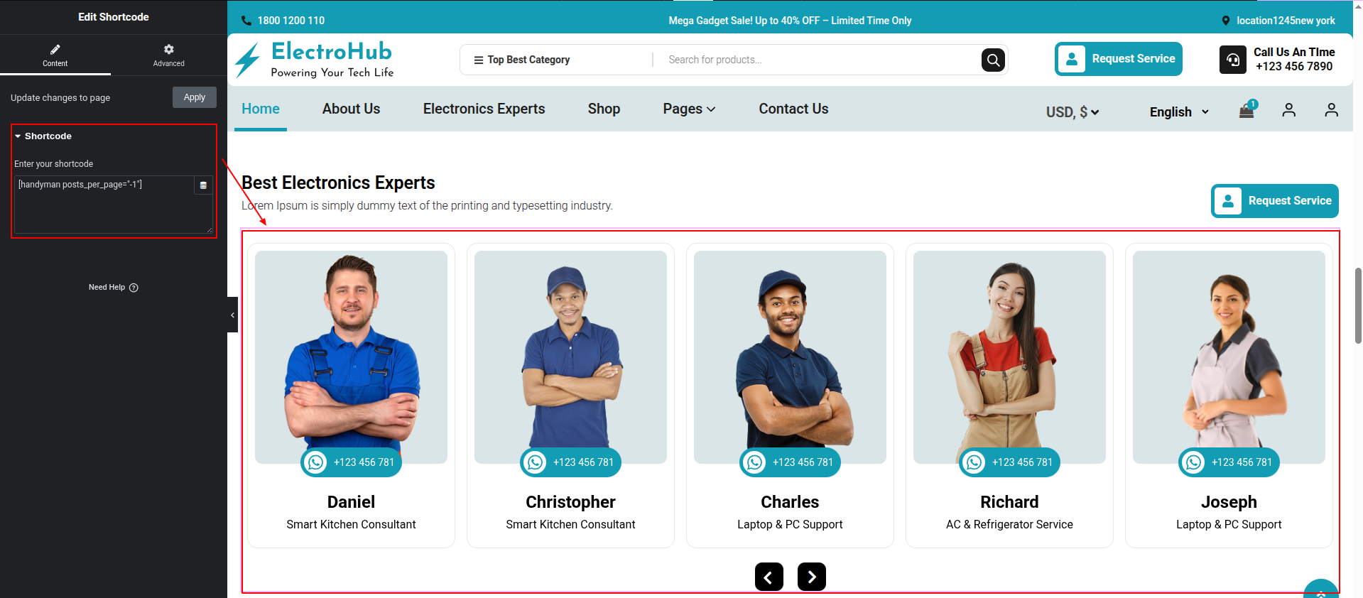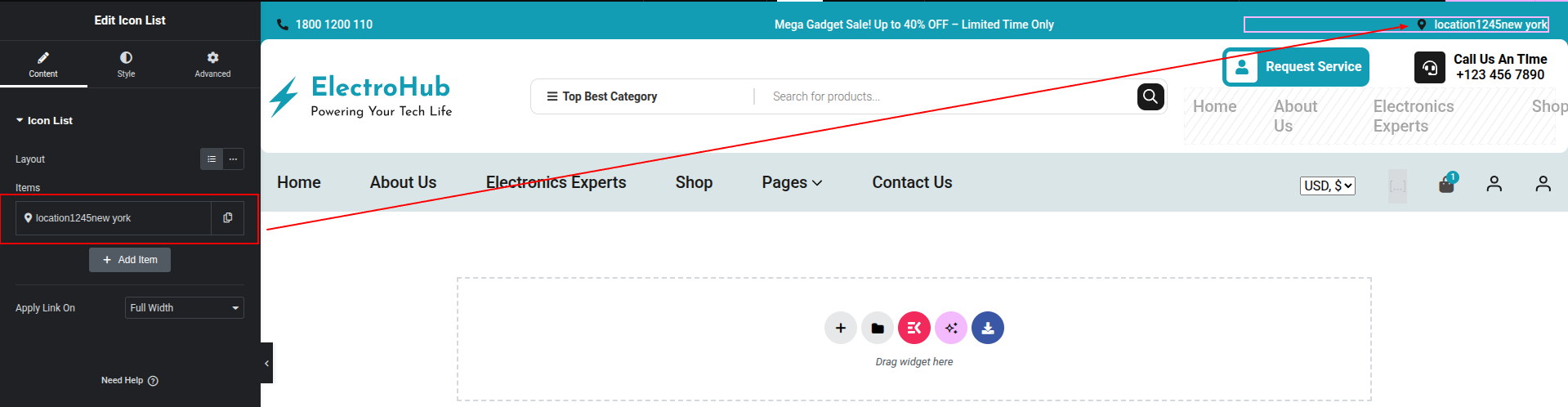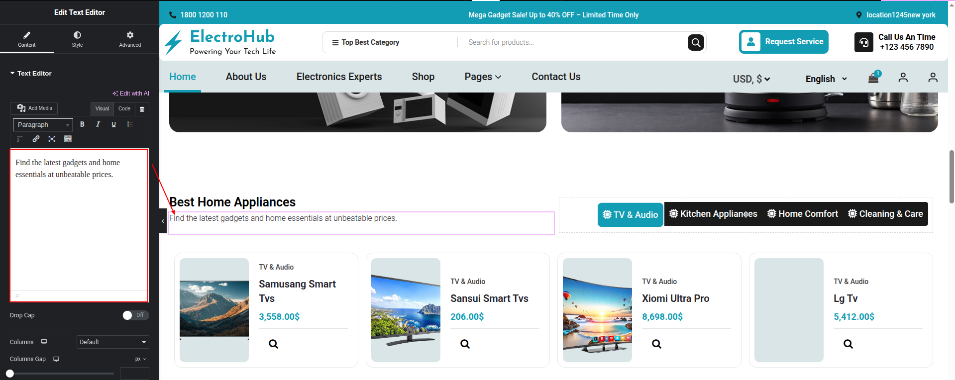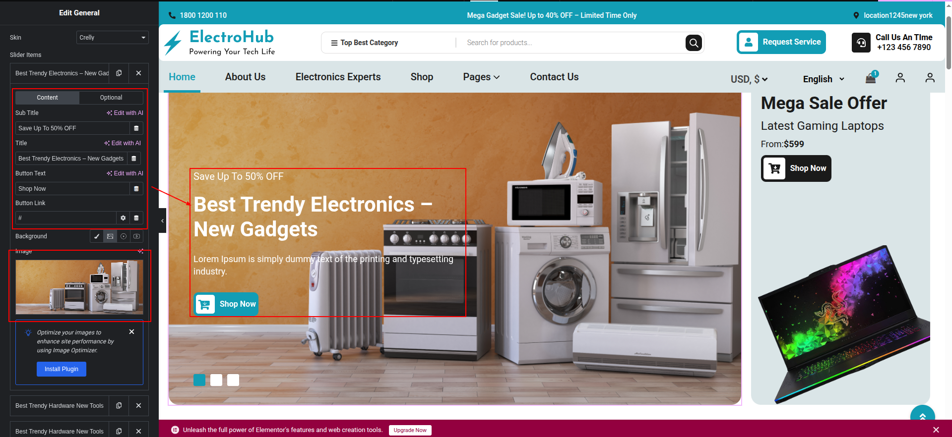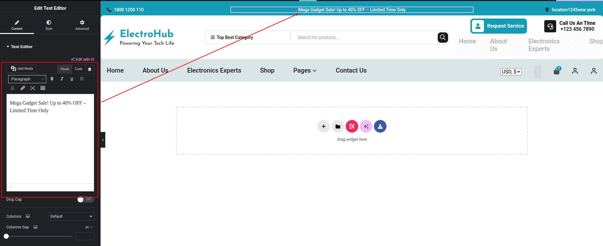 To Edit this Section, Click On the "Edit With Elementor" Button which will open the Elementor Widget editor.