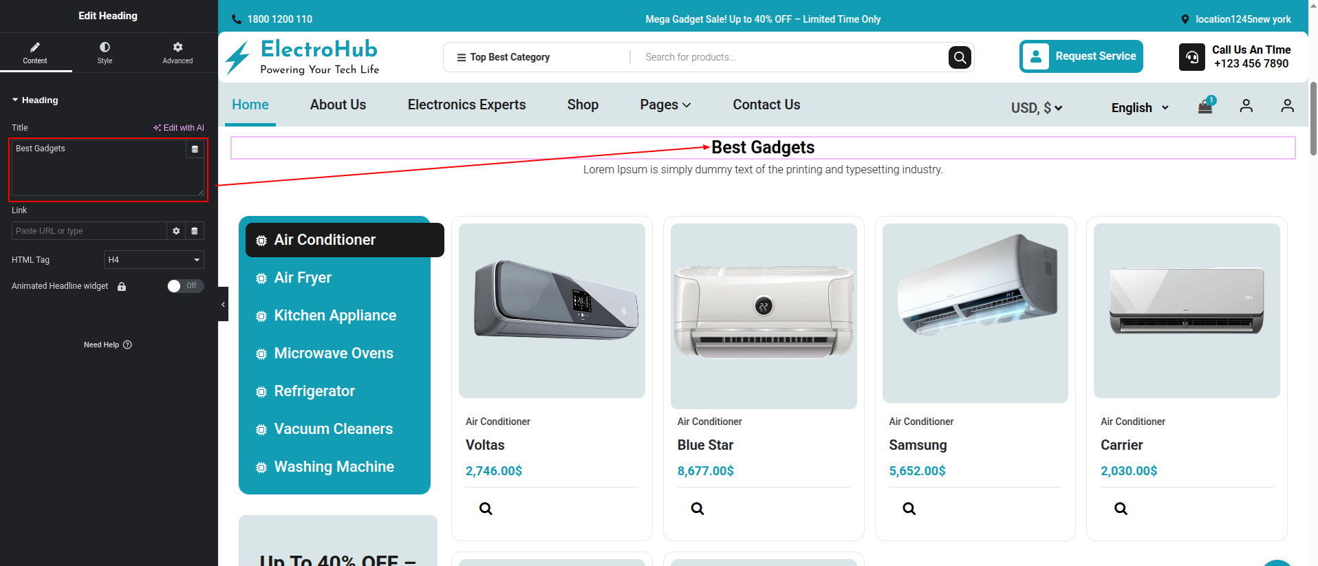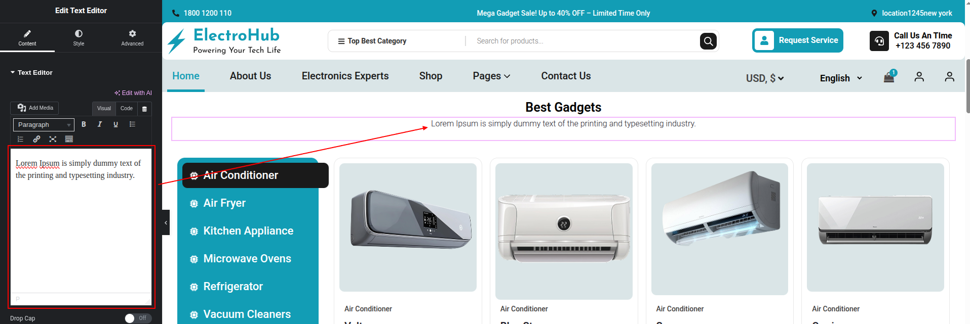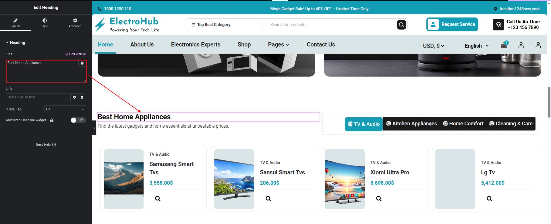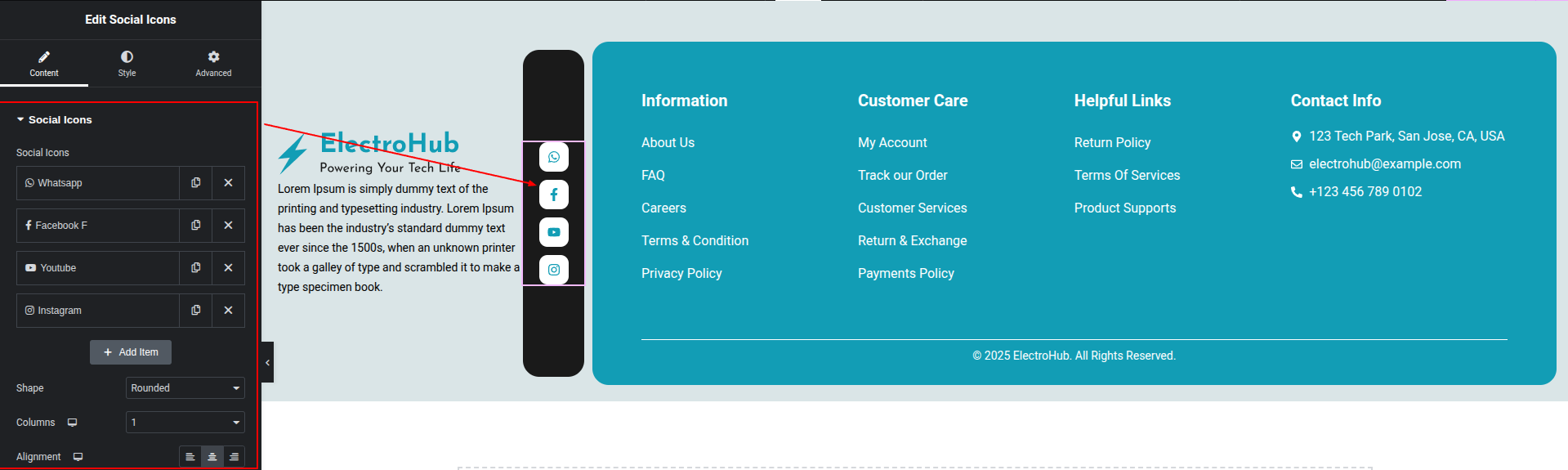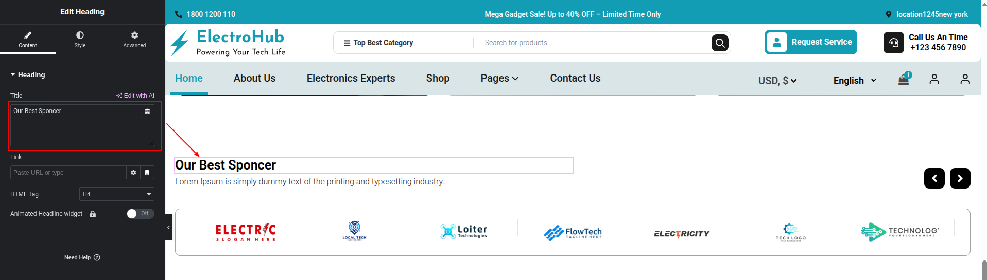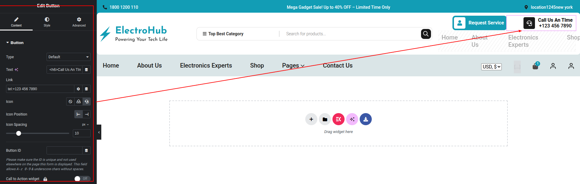 To Edit this Section, Click On the "Edit With Elementor" Button which will open the Elementor Widget editor.
