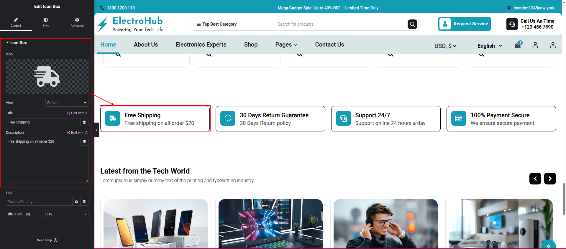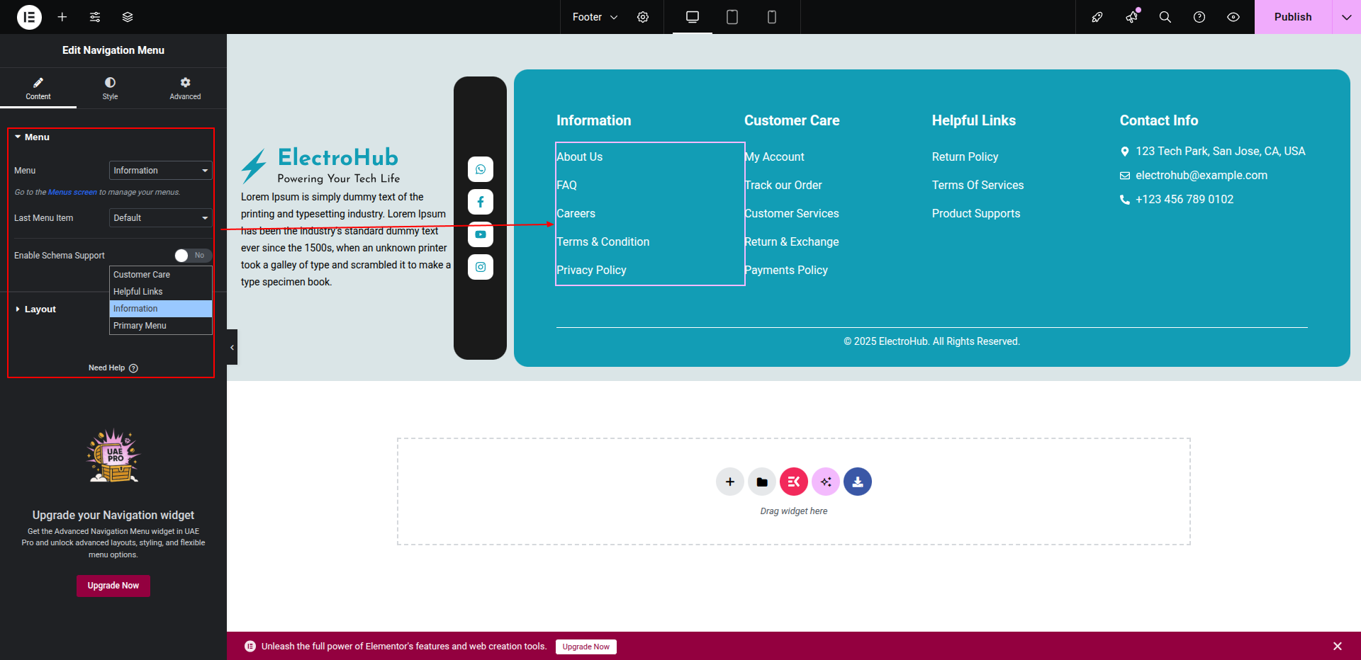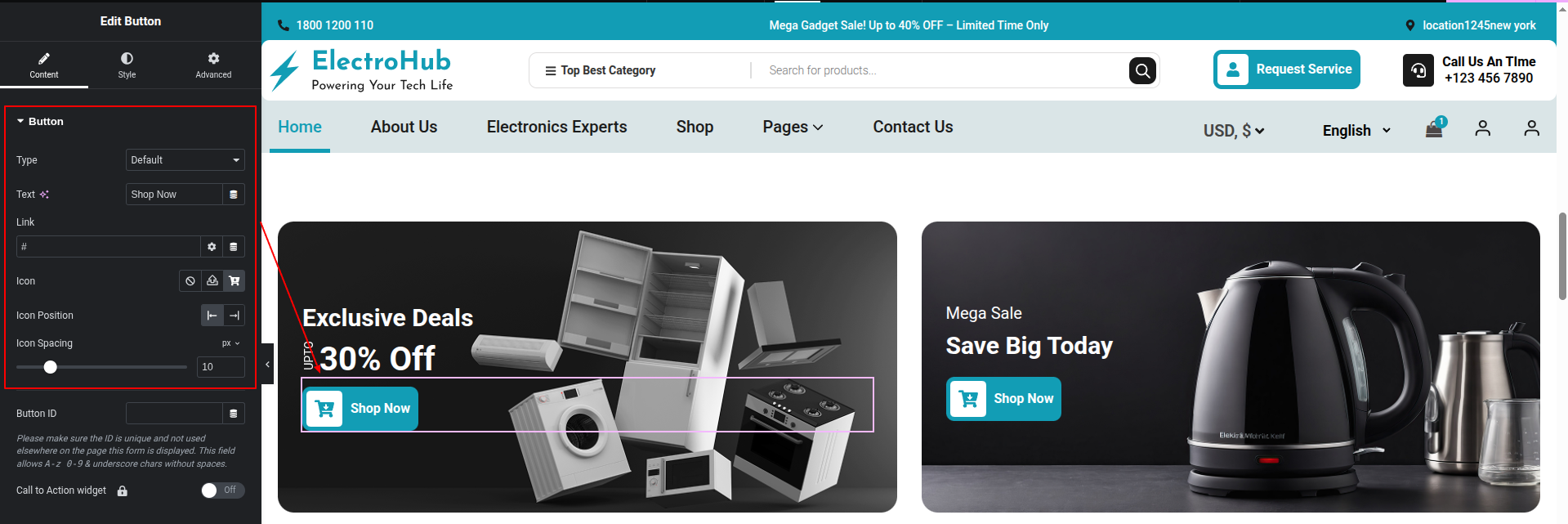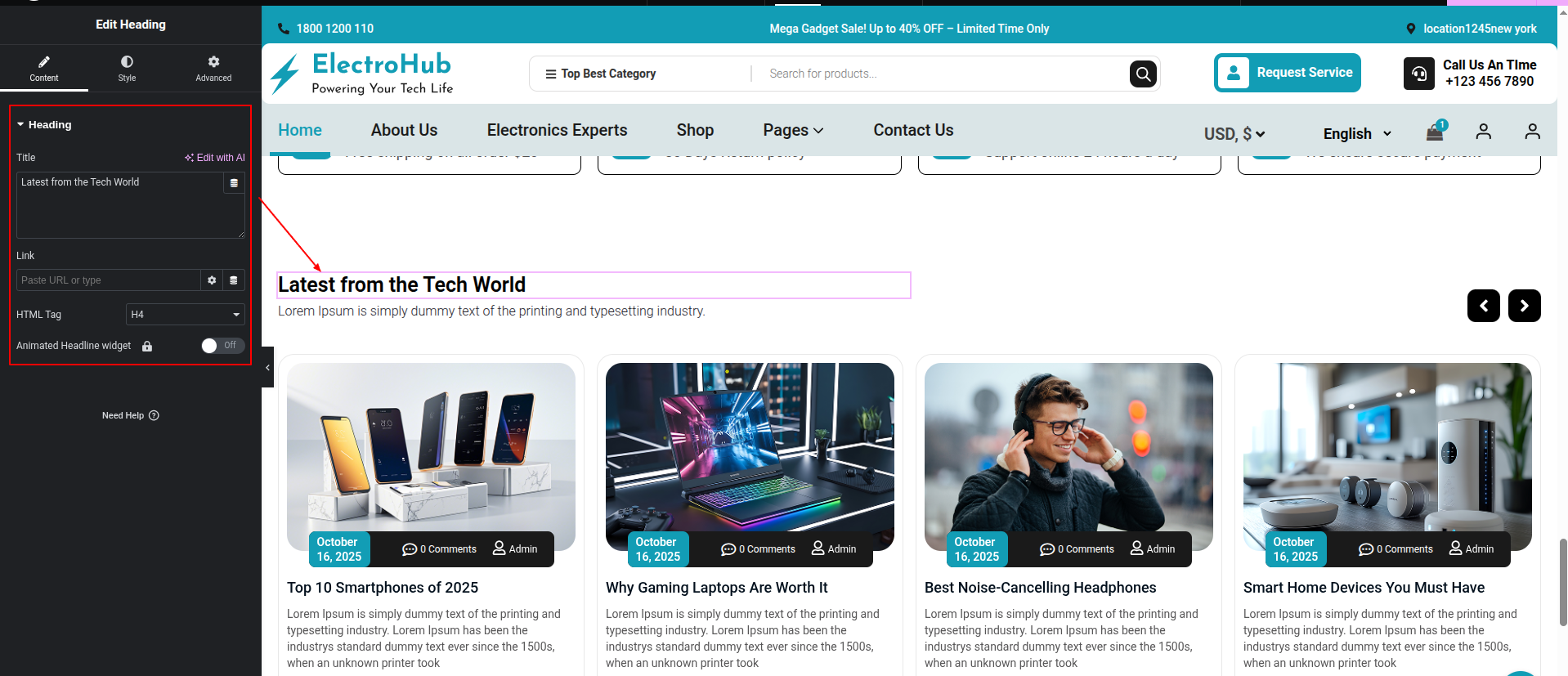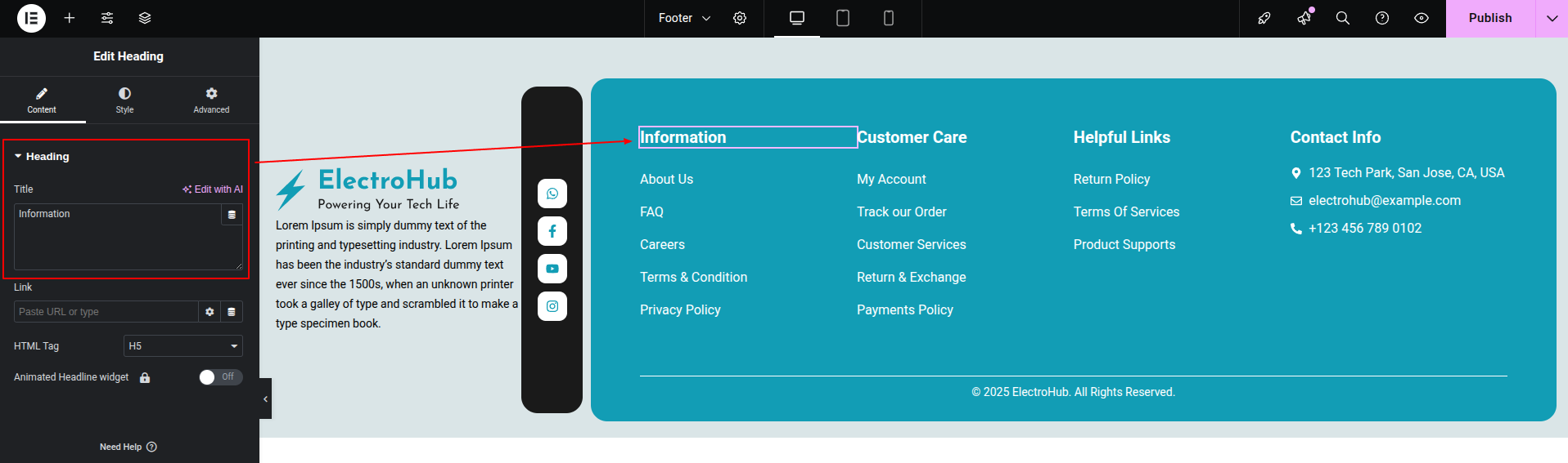 To Edit this Section, Click On the "Edit With Elementor" Button which will open the Elementor Widget editor.