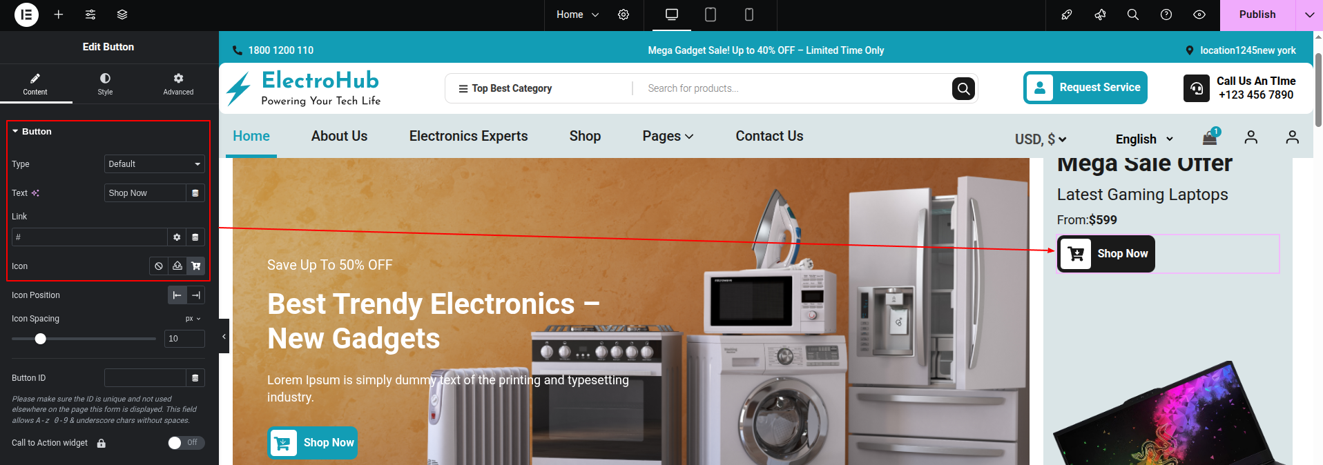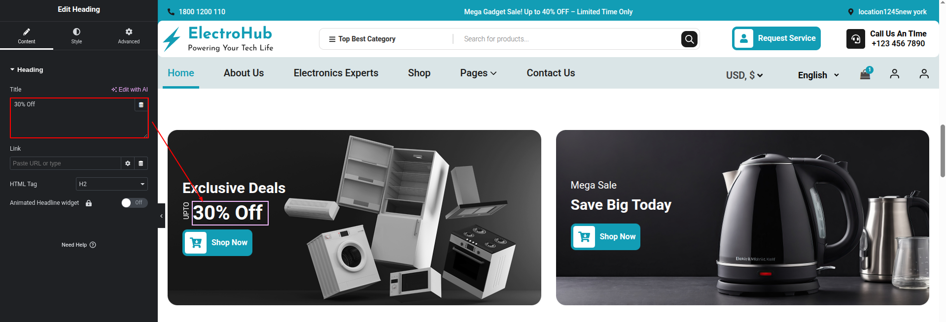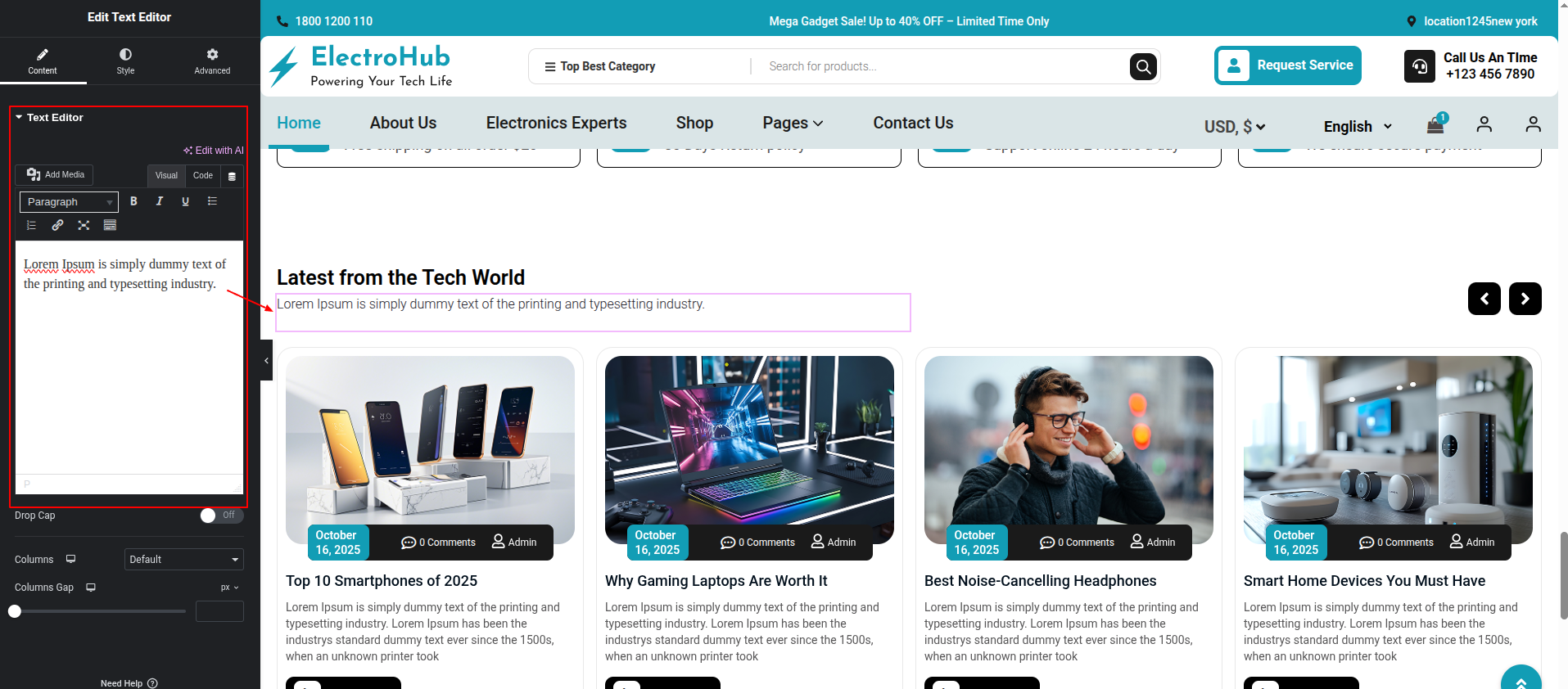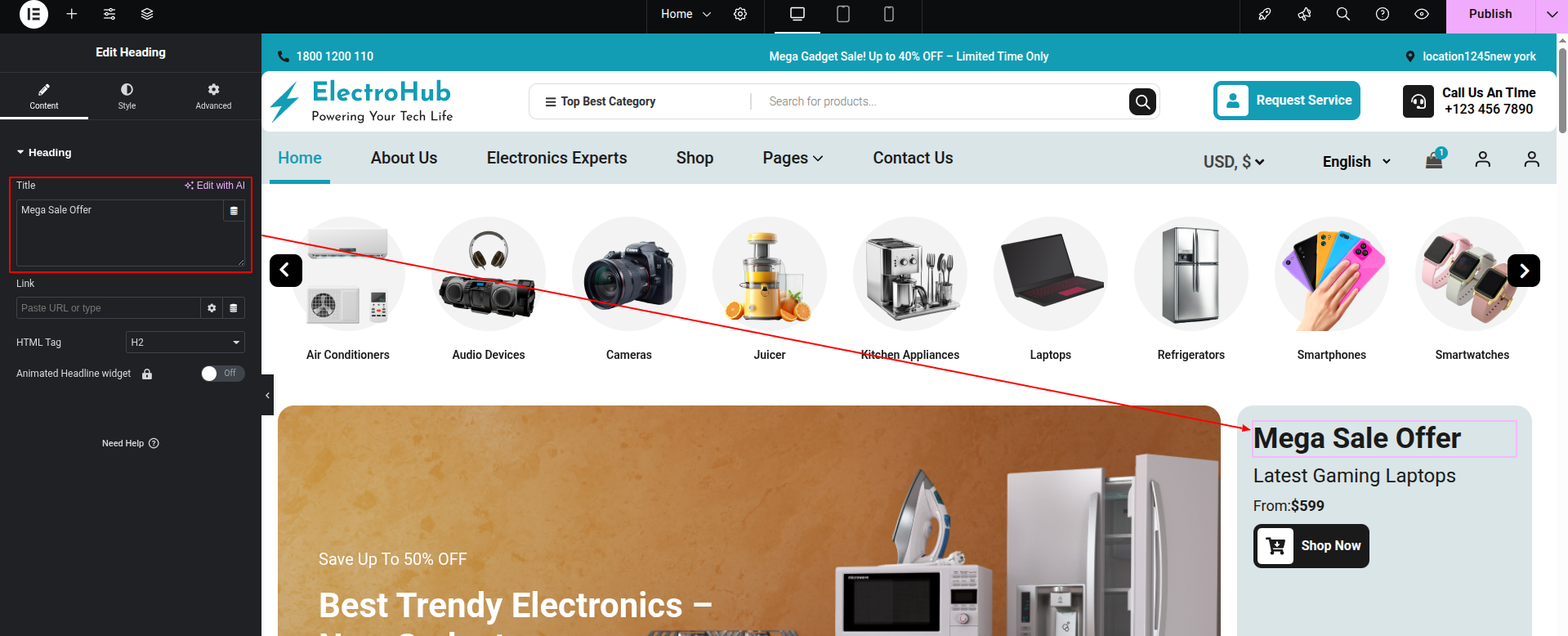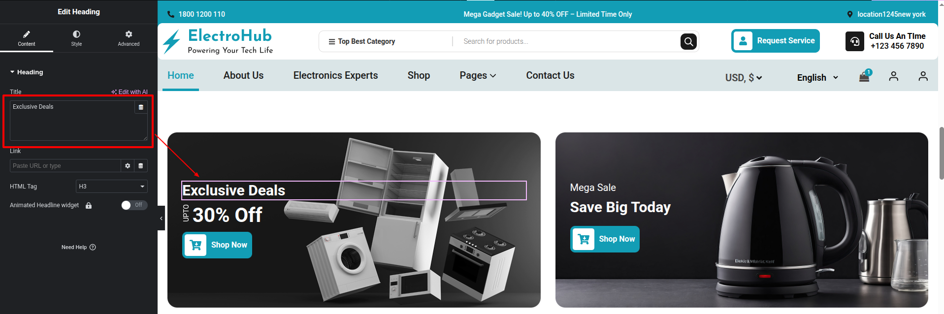 To Edit this Section, Click On the "Edit With Elementor" Button which will open the Elementor Widget editor.