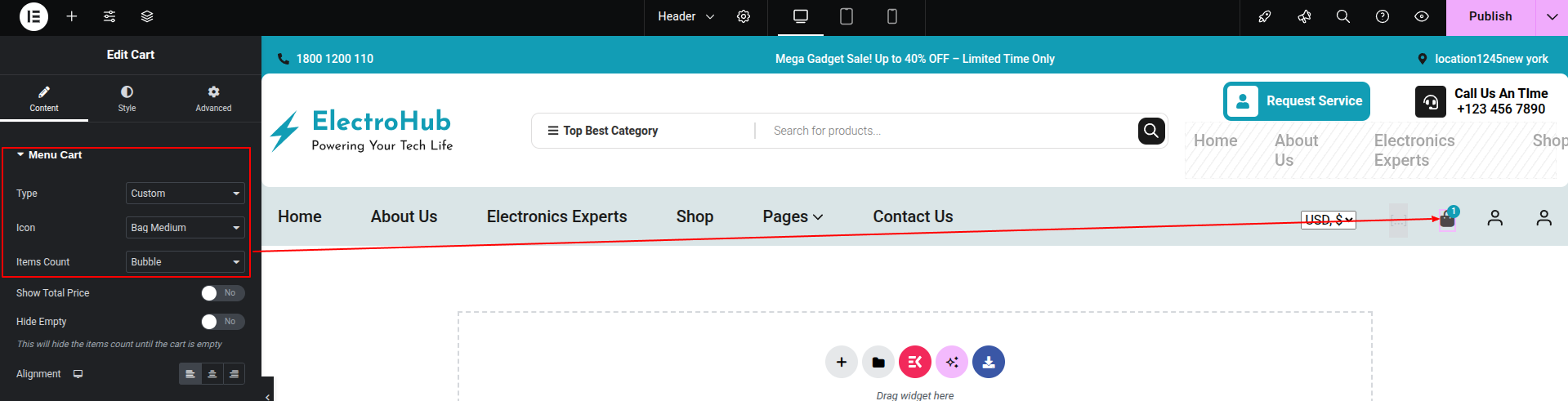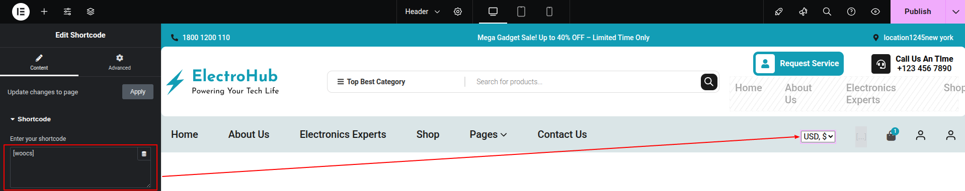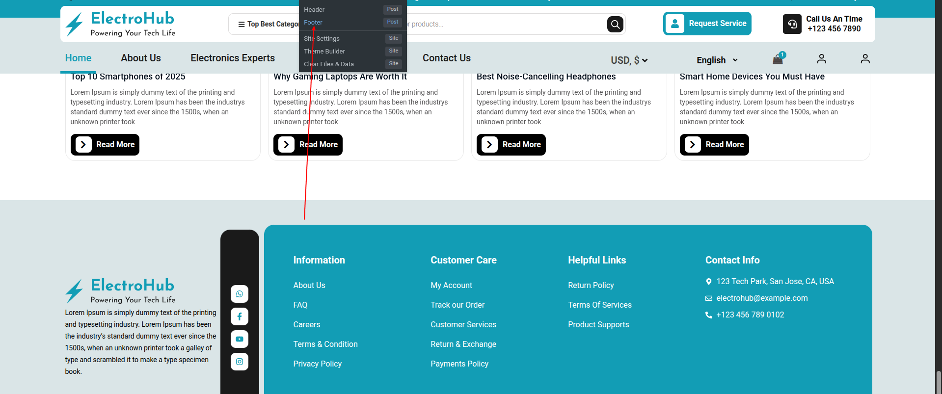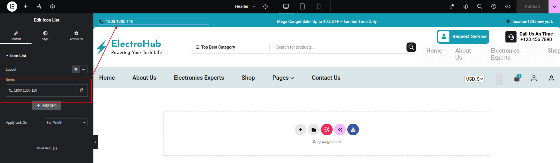 1) Go to:- Dashboard >> Elementskit >> Header Footer >> Edit.