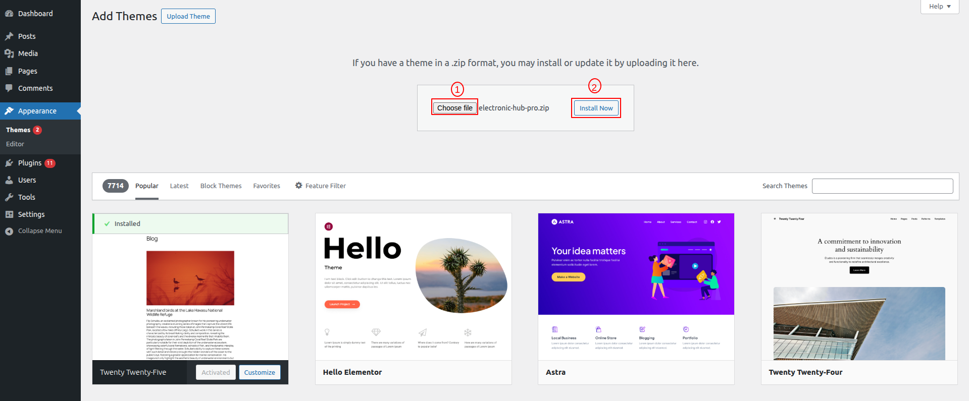 1-Use WordPress admin to install a theme.