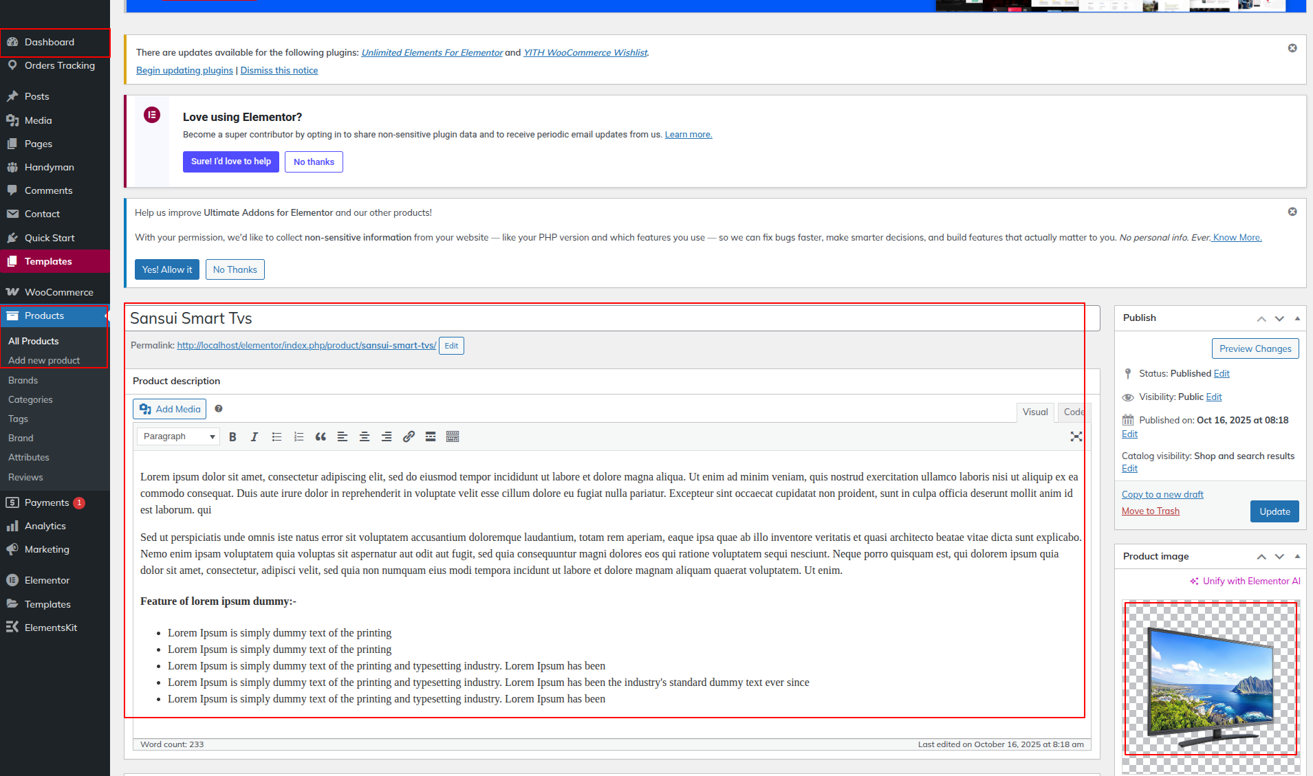 Here you can edit product content from dashboard.