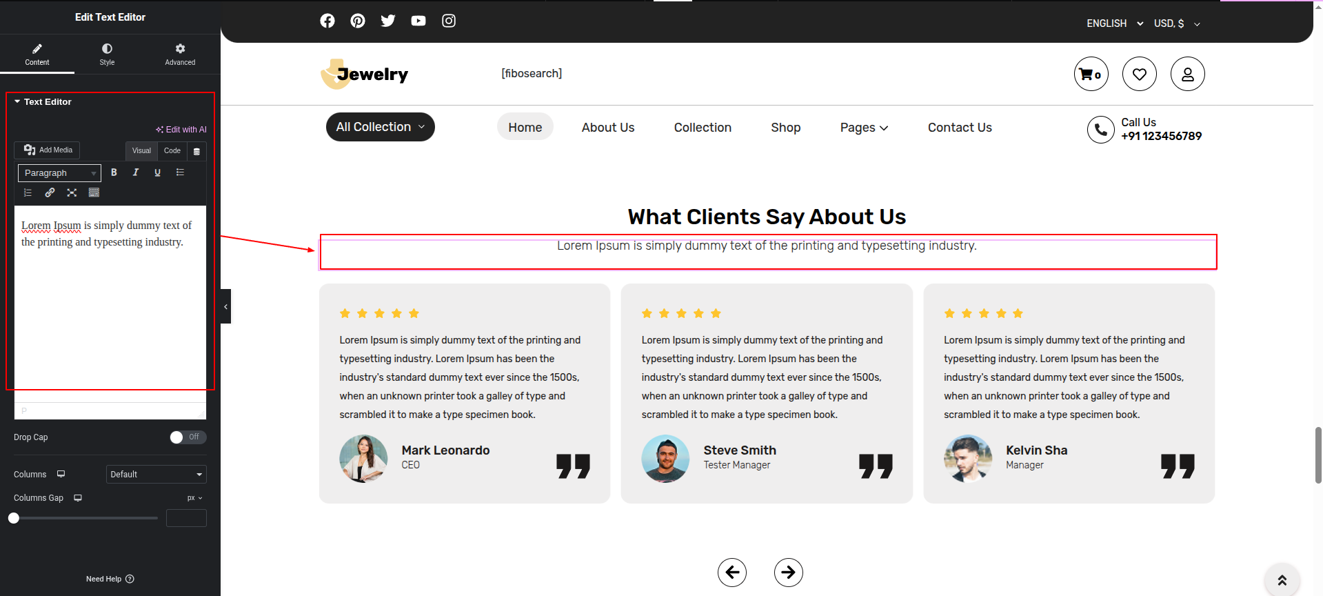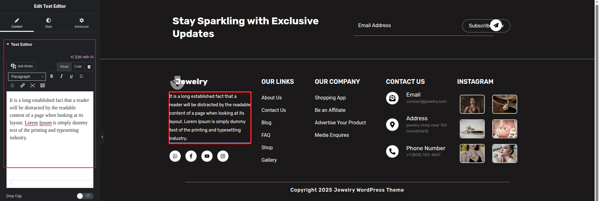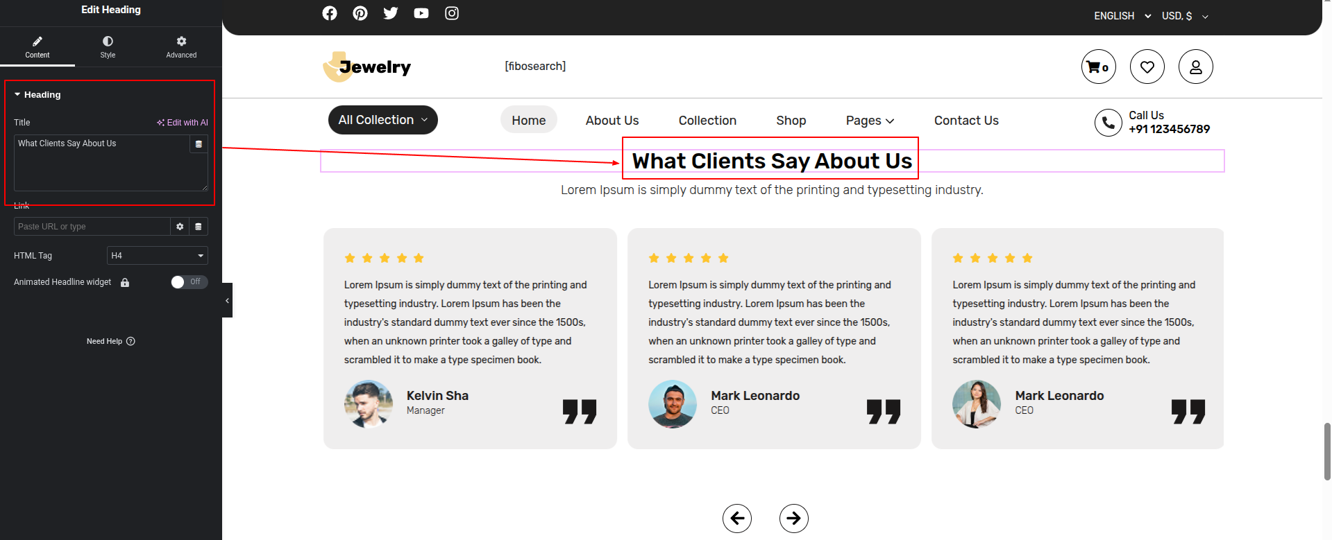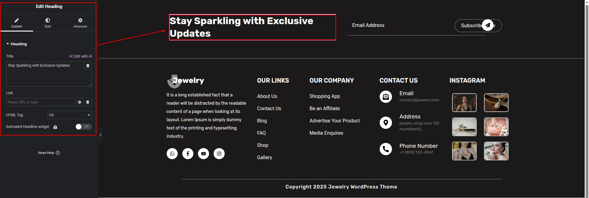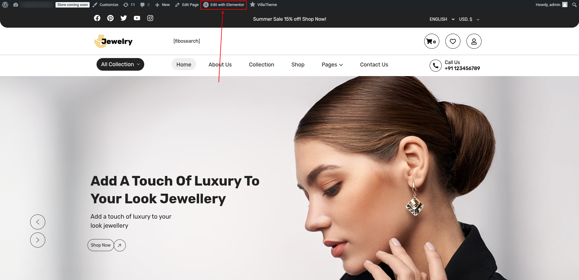 To Edit this Section, Click On the "Edit With Elementor" Button which will open the Elementor Widget editor.