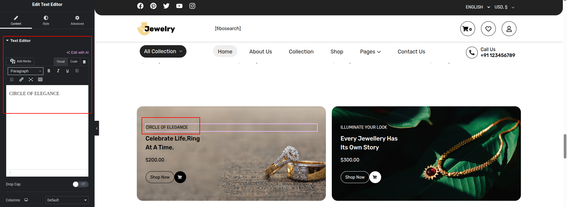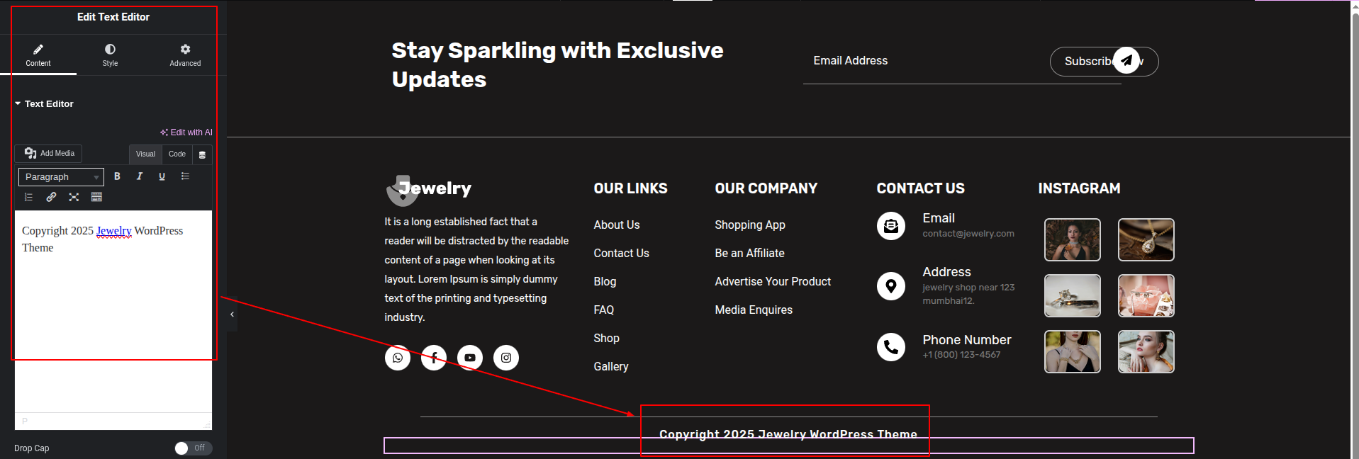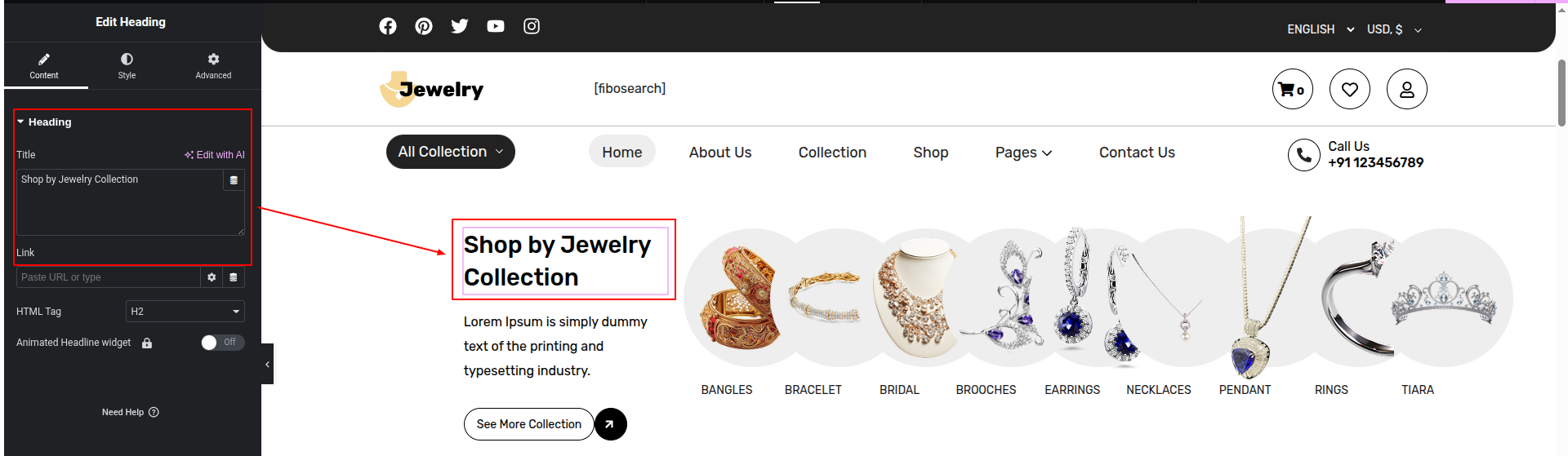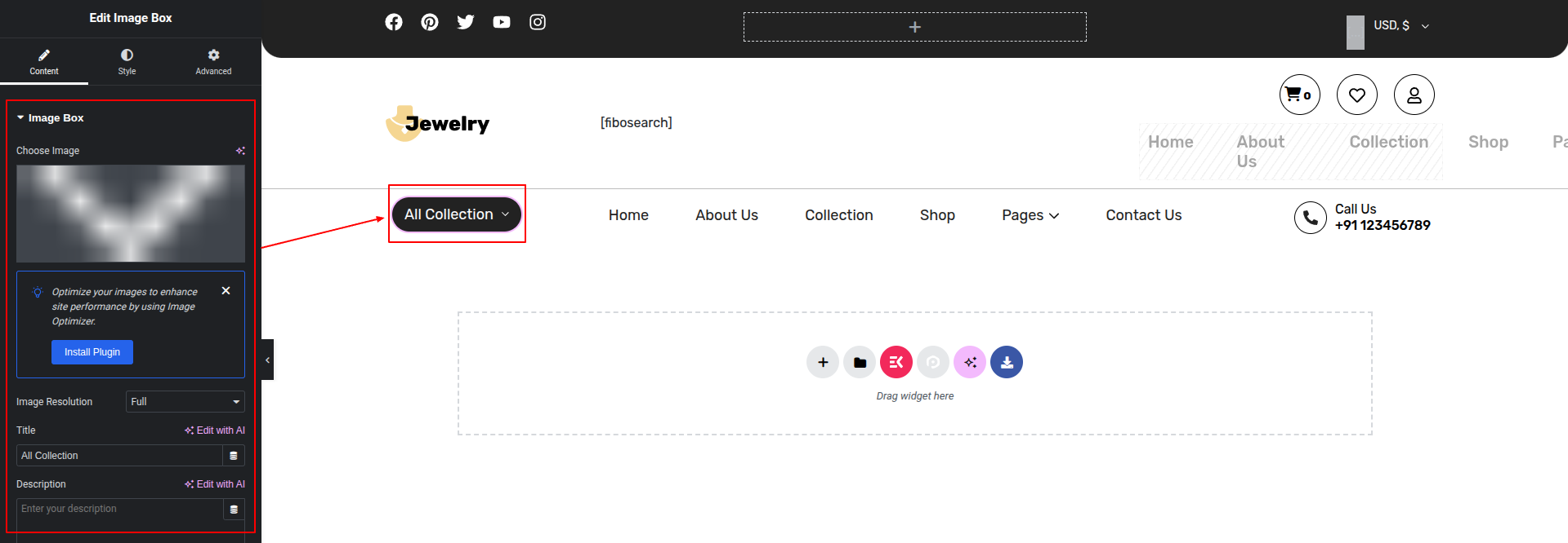 To Edit this Section, Click On the "Edit With Elementor" Button which will open the Elementor Widget editor.