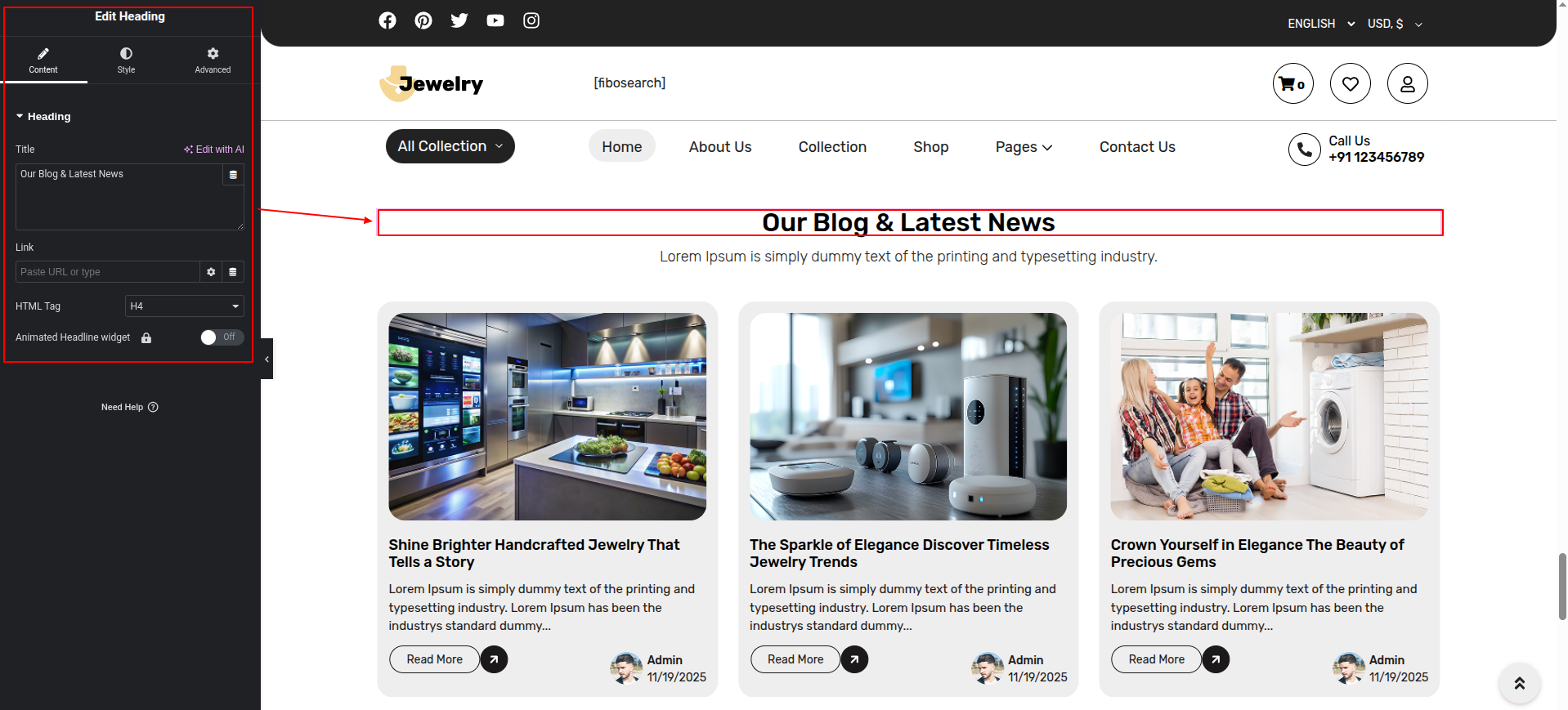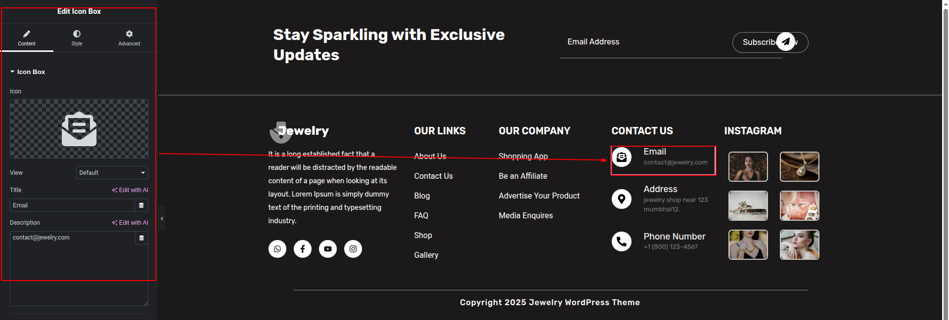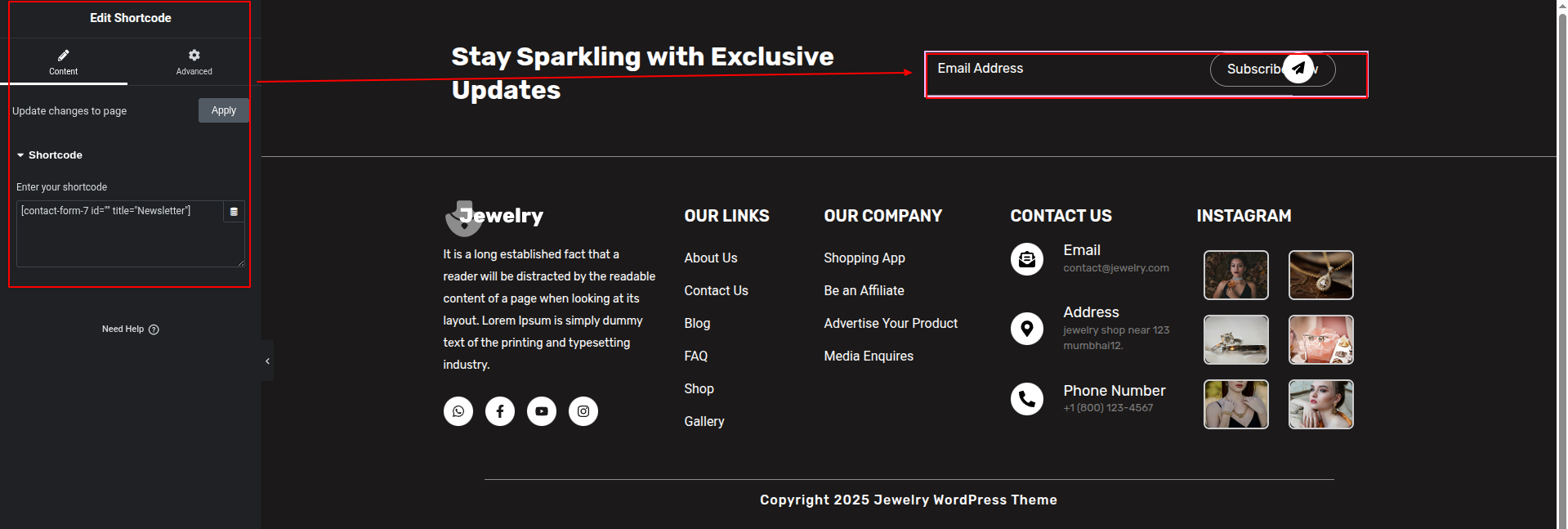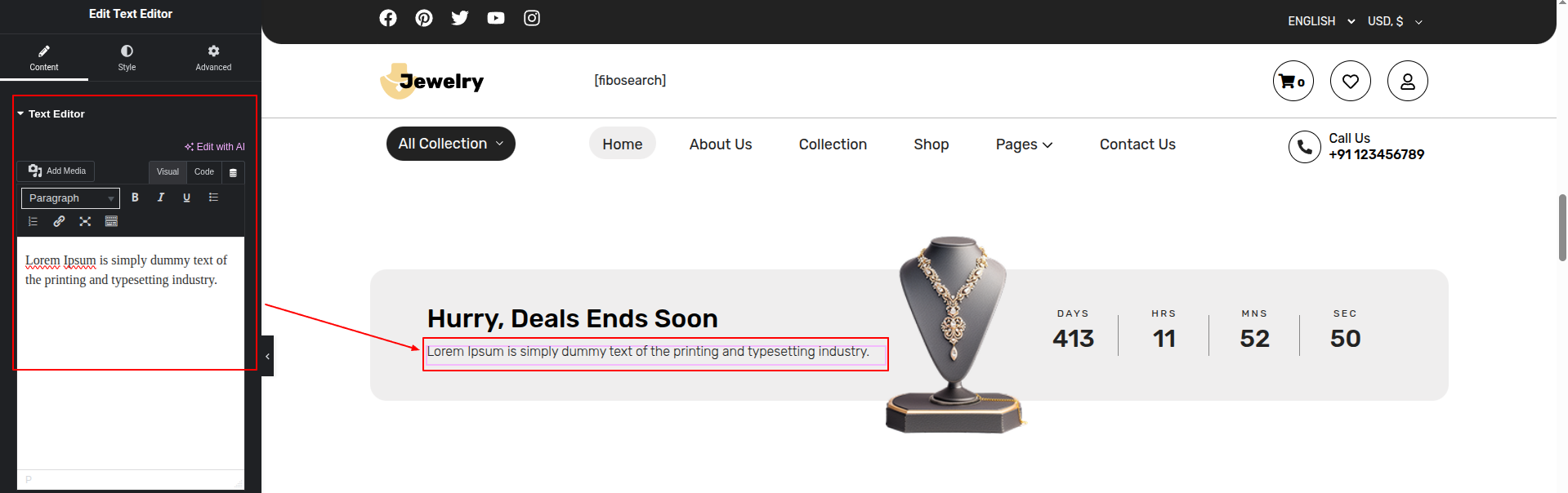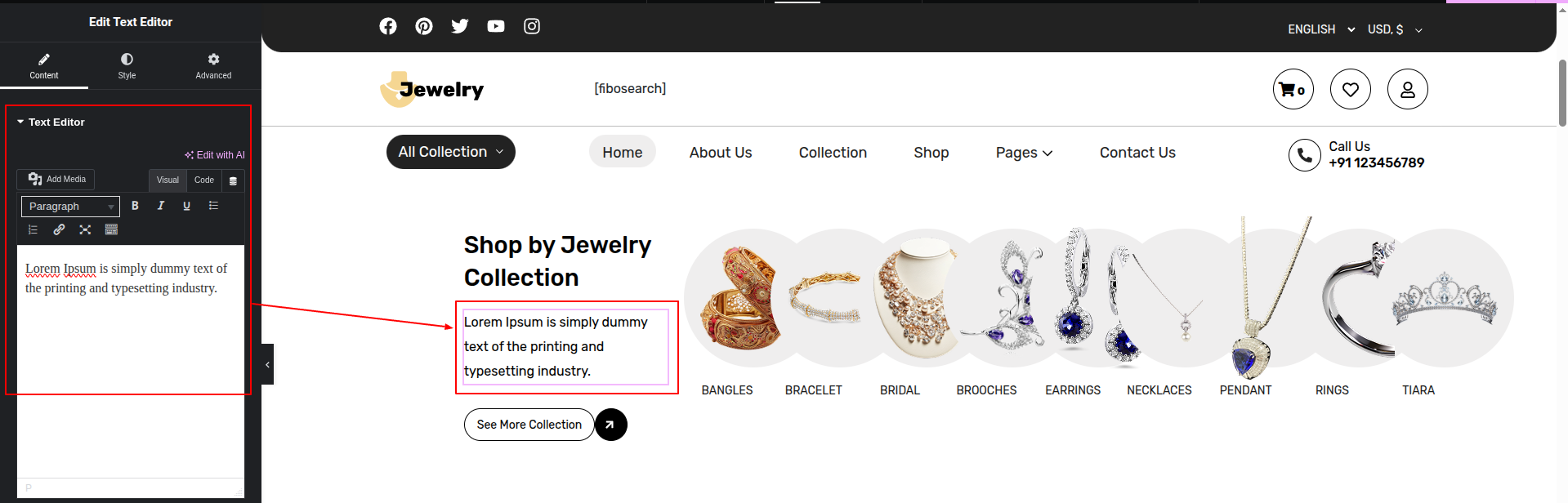 To Edit this Section, Click On the "Edit With Elementor" Button which will open the Elementor Widget editor.