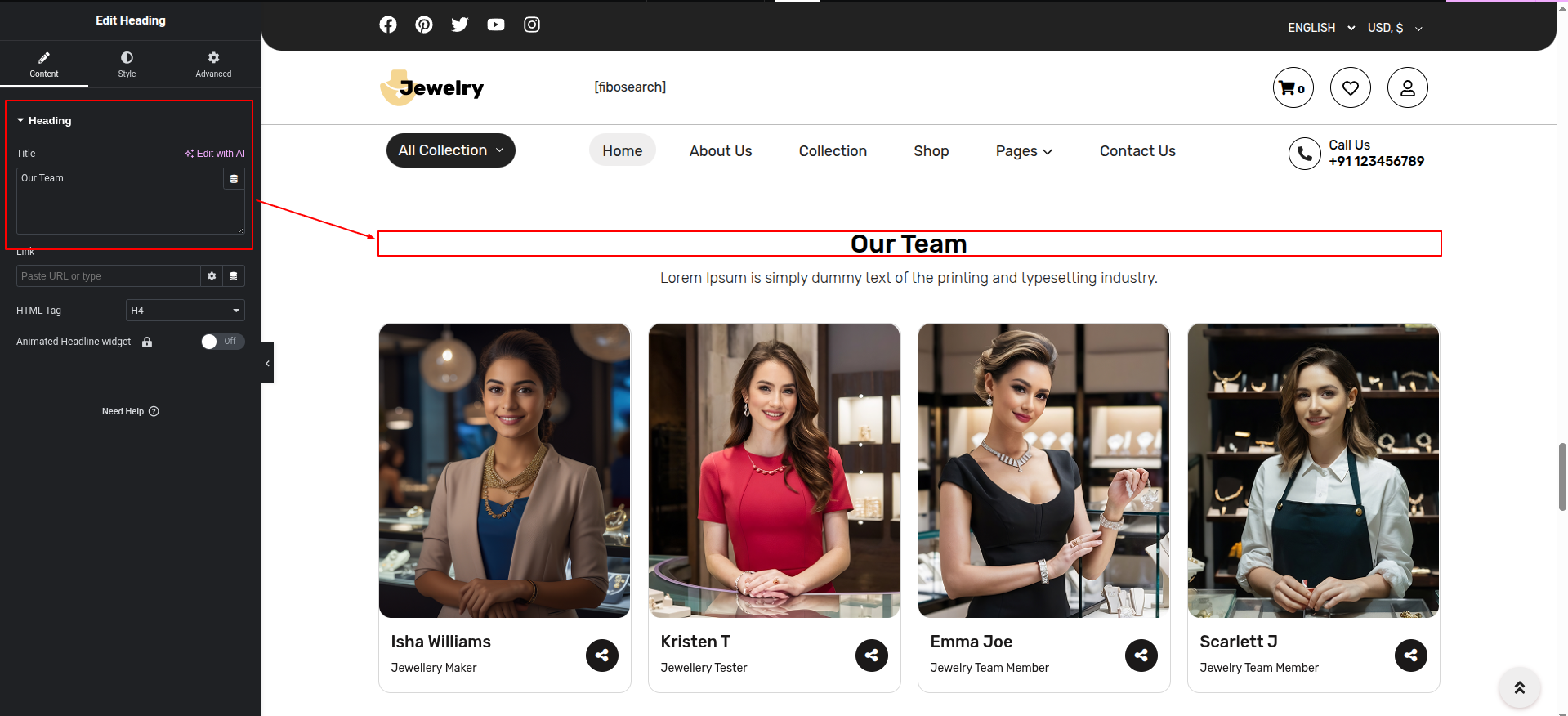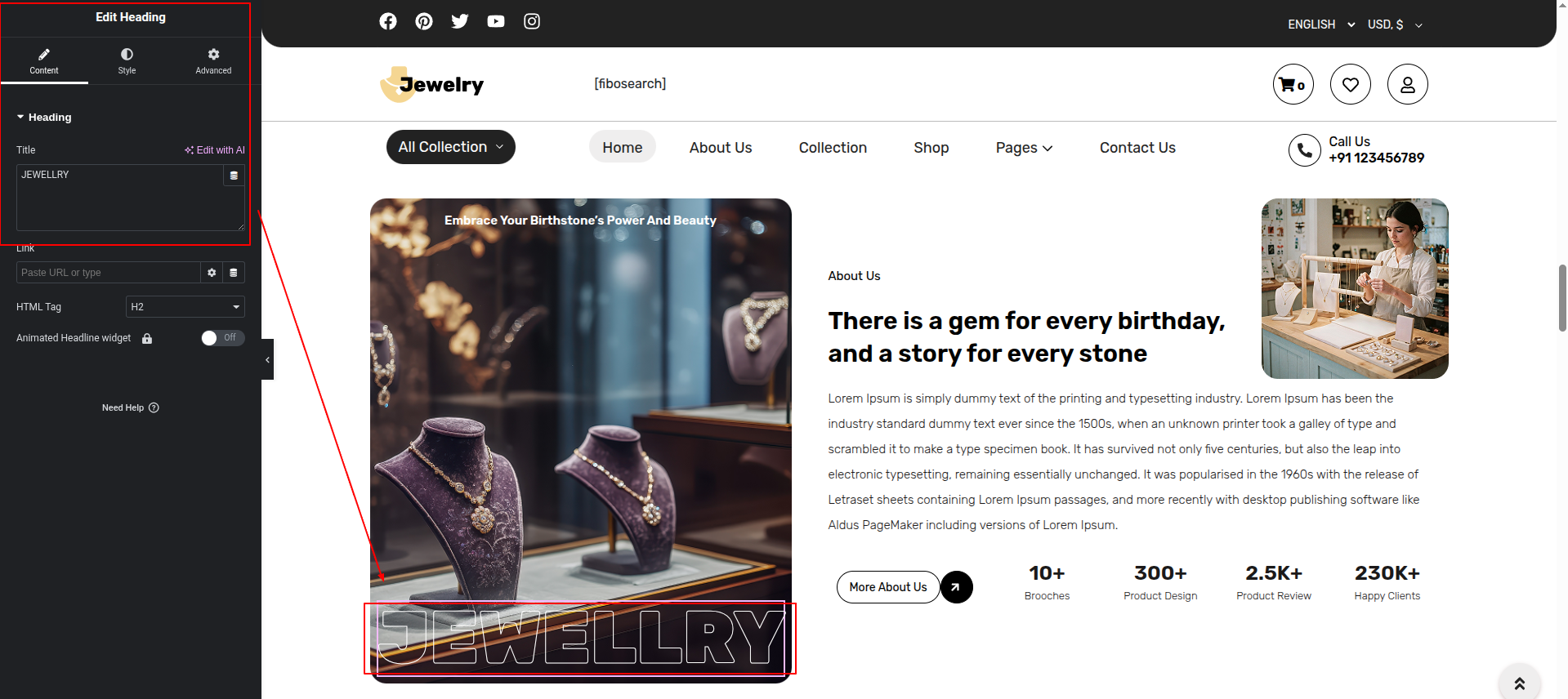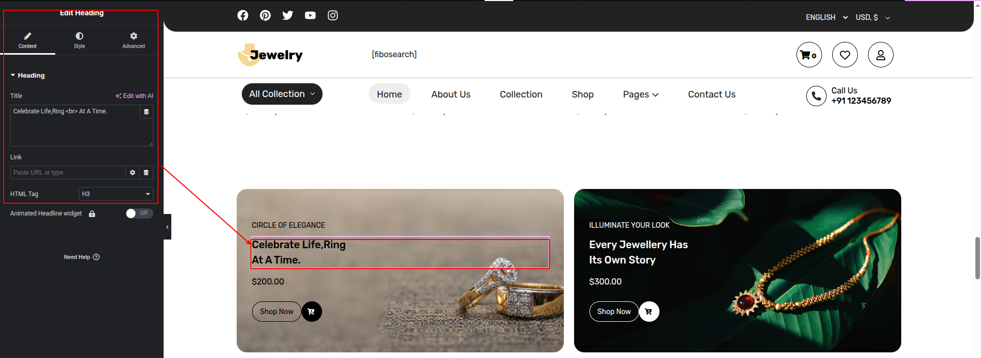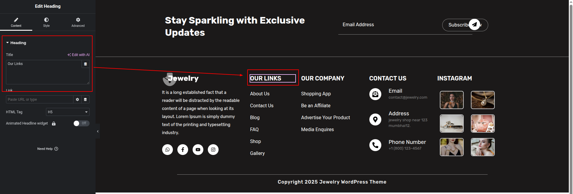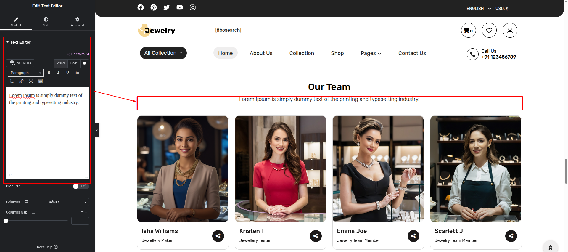 To Edit this Section, Click On the "Edit With Elementor" Button which will open the Elementor Widget editor.
