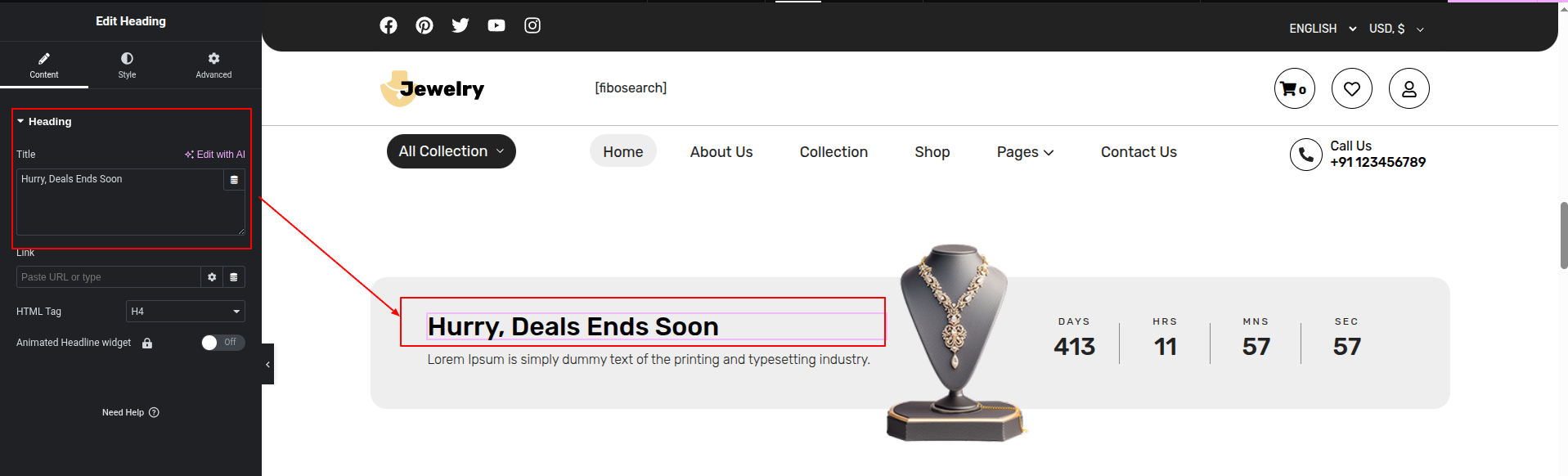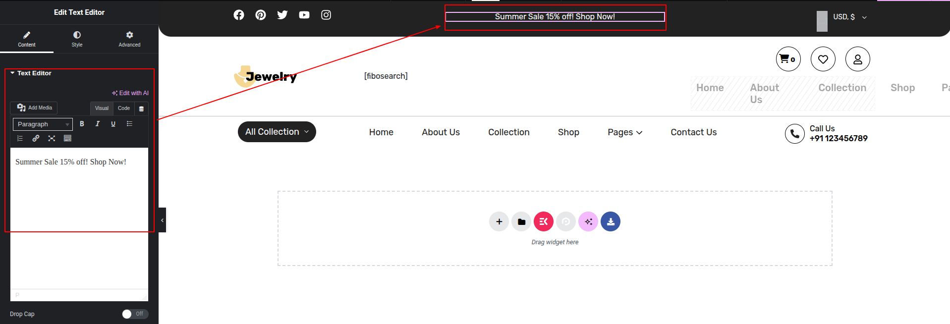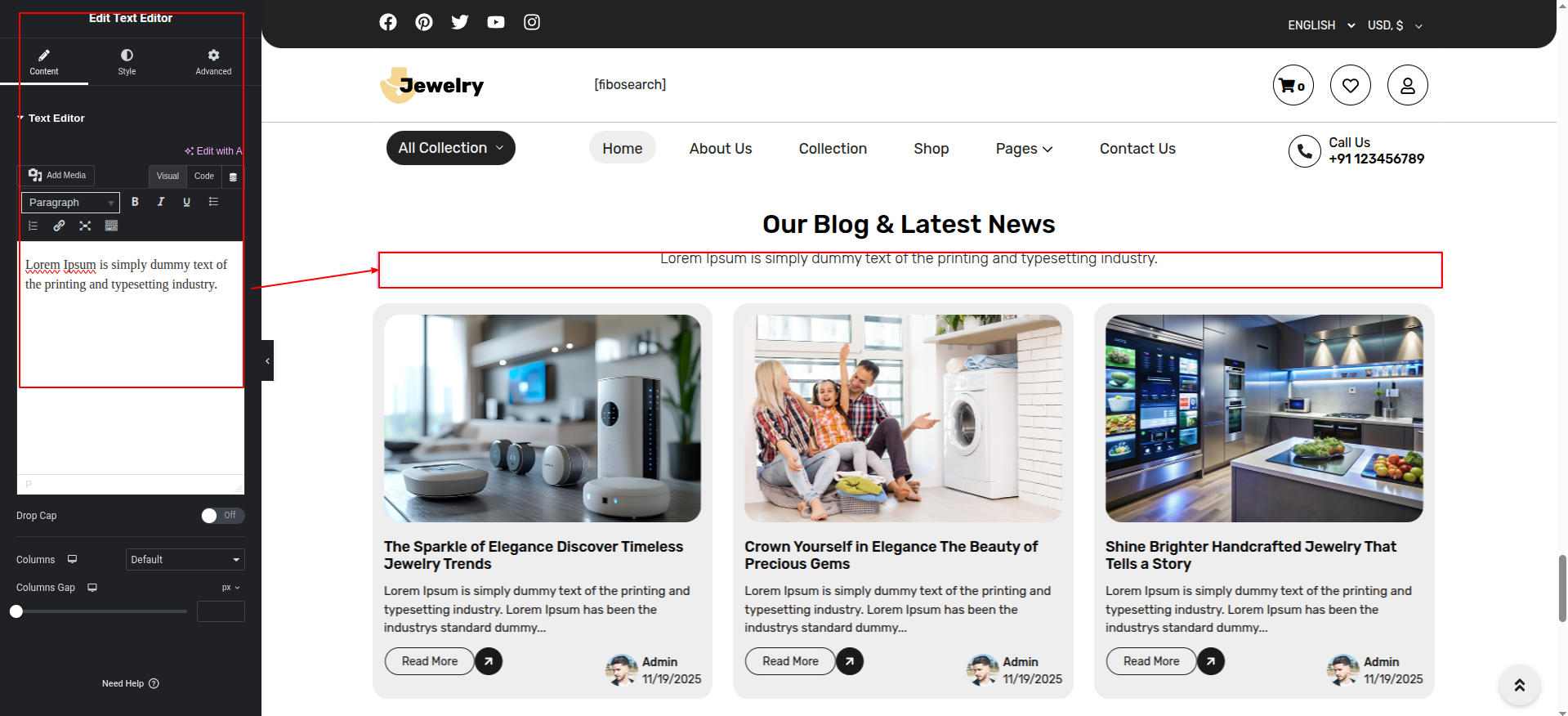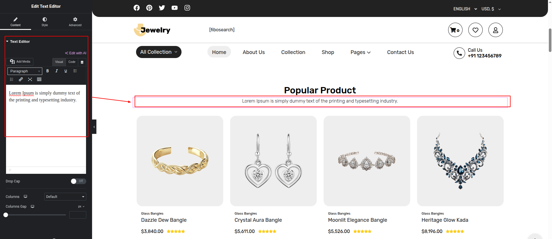 To Edit this Section, Click On the "Edit With Elementor" Button which will open the Elementor Widget editor.
