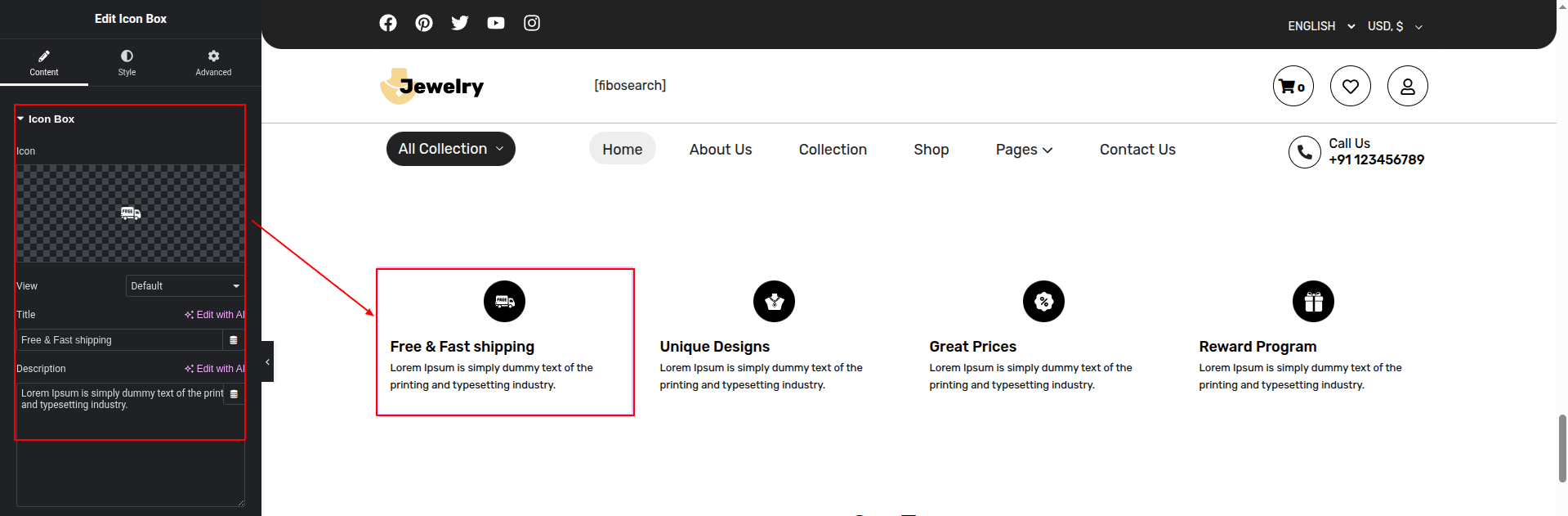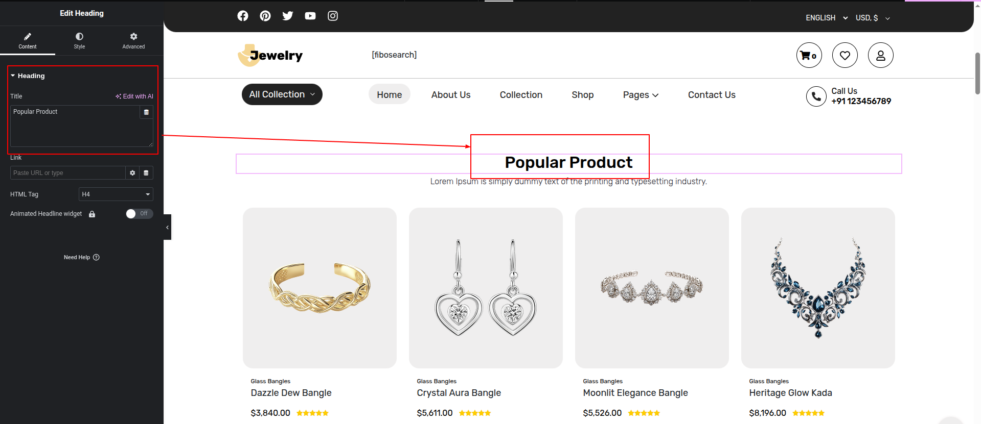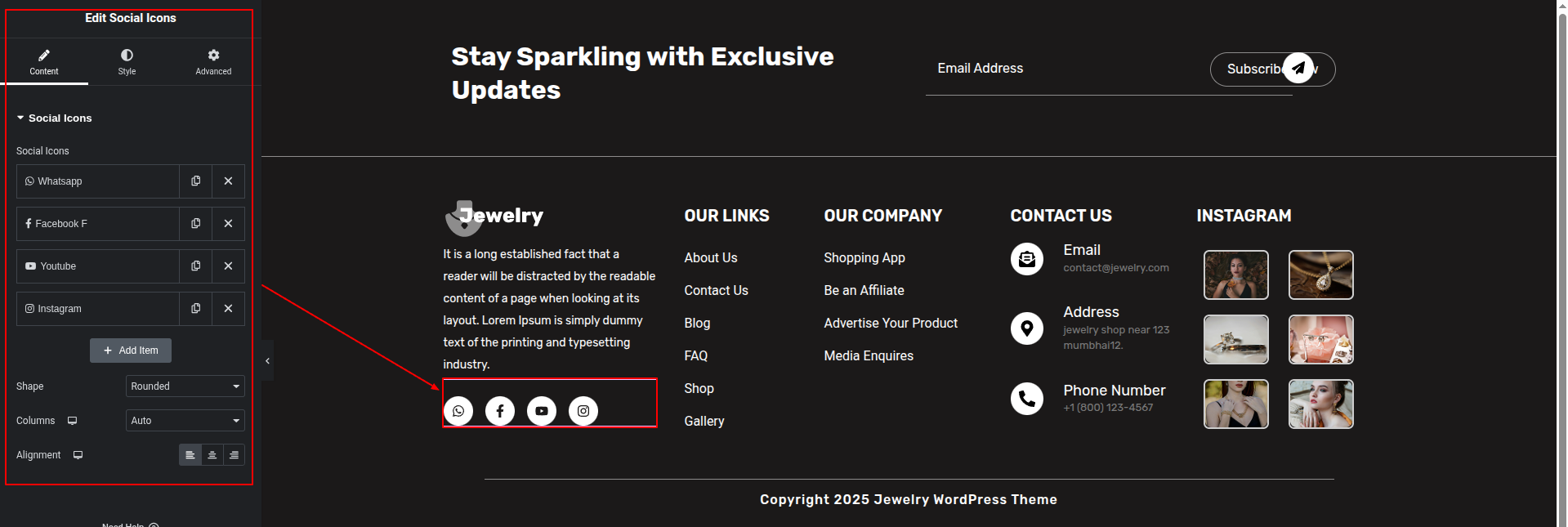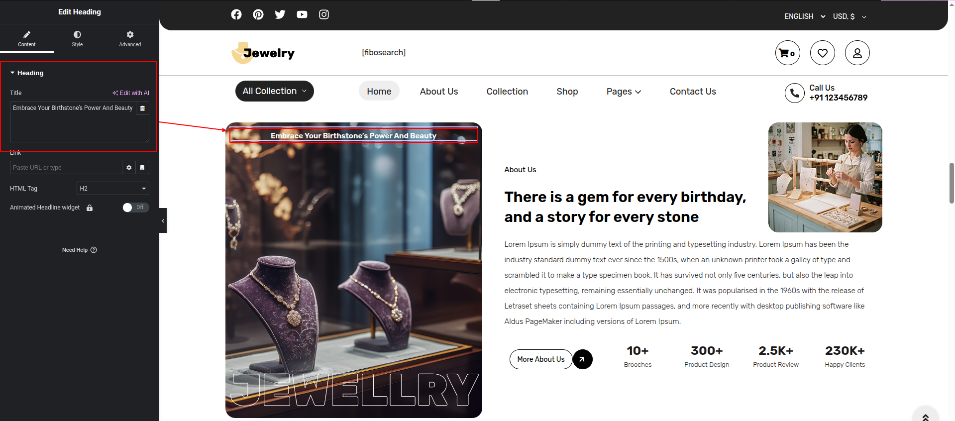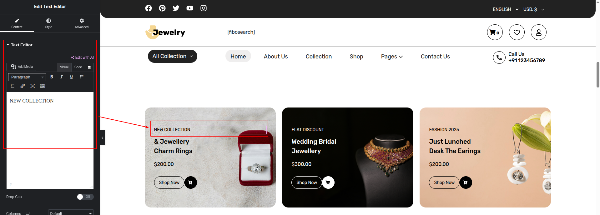 To Edit this Section, Click On the "Edit With Elementor" Button which will open the Elementor Widget editor.