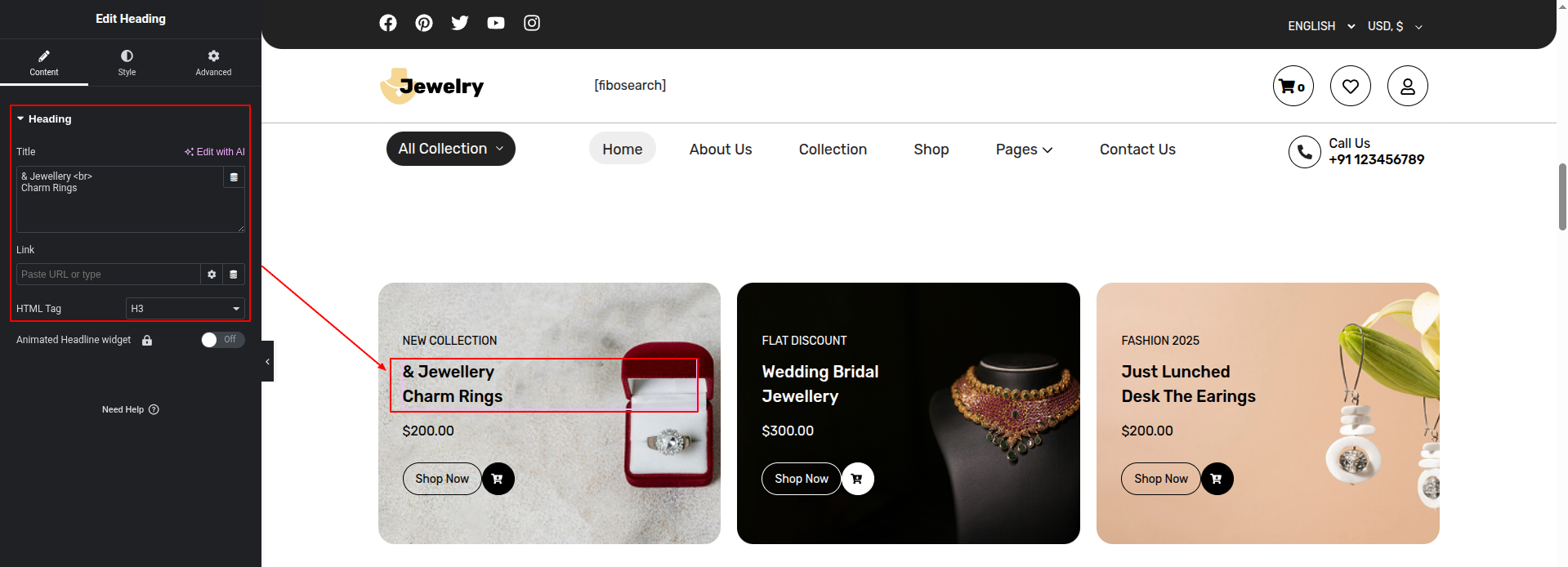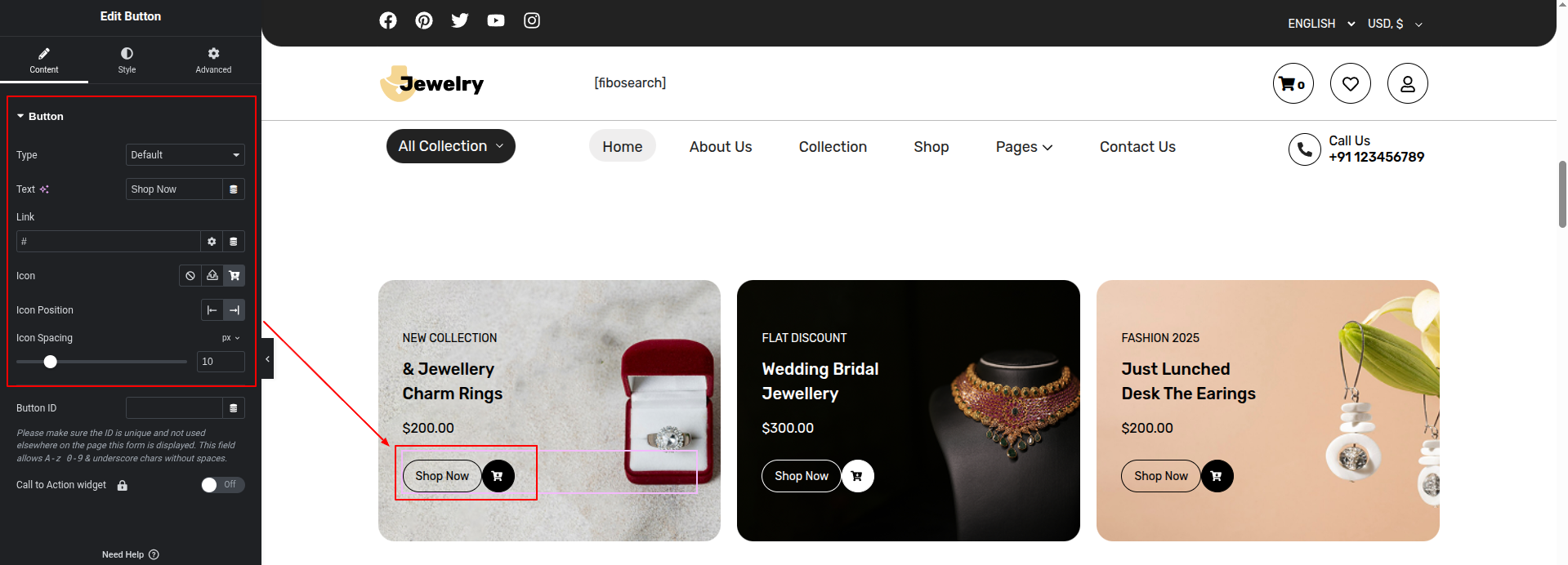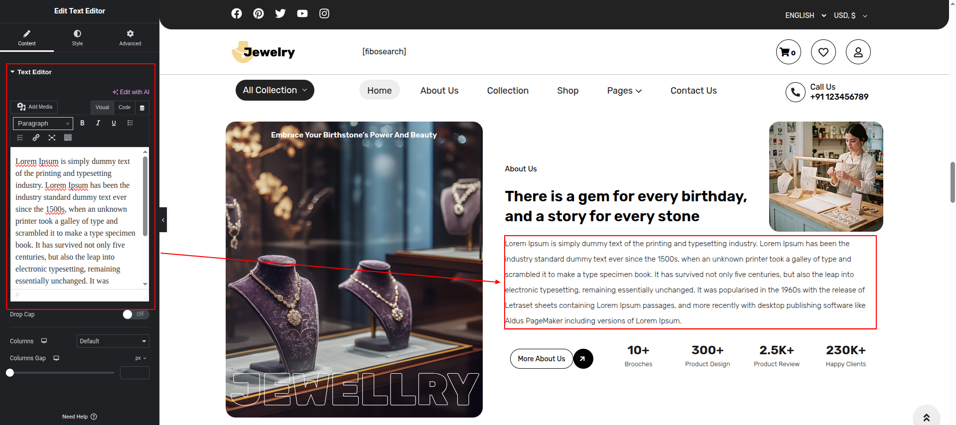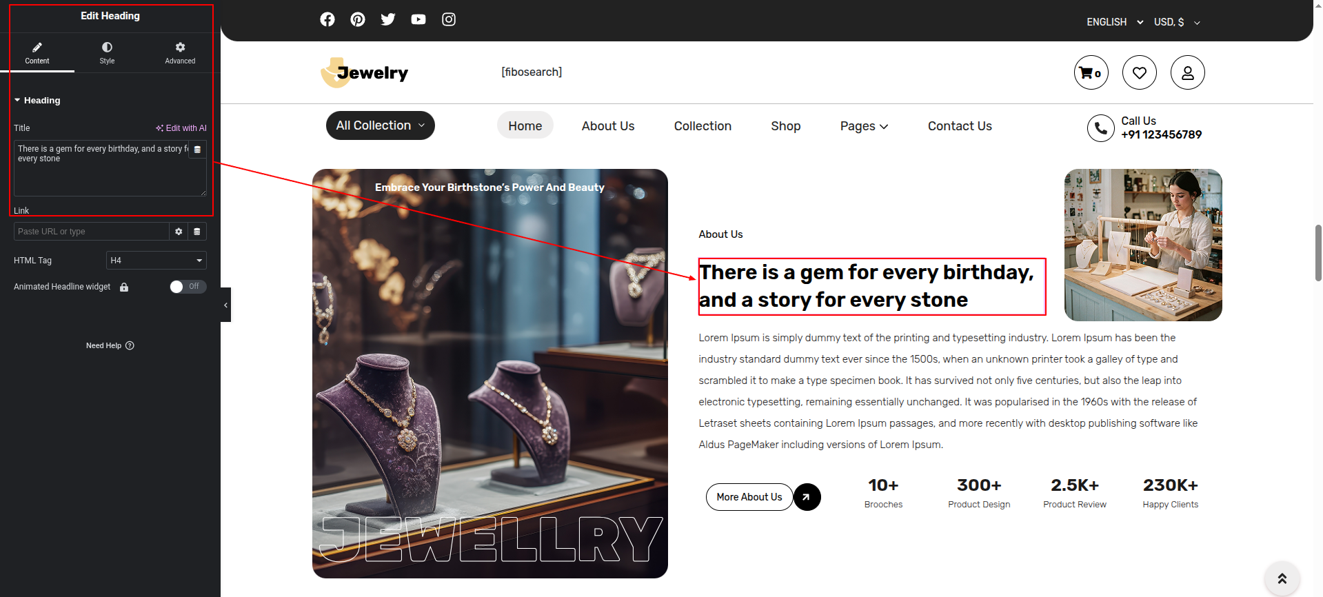 To Edit this Section, Click On the "Edit With Elementor" Button which will open the Elementor Widget editor.