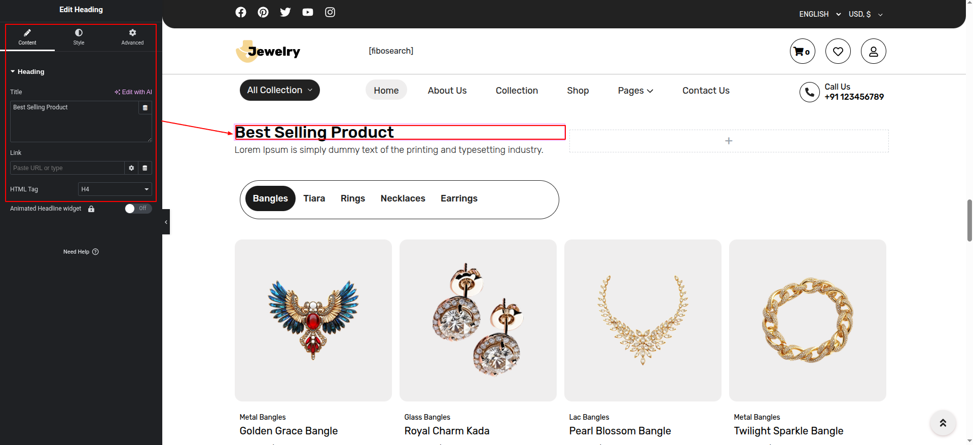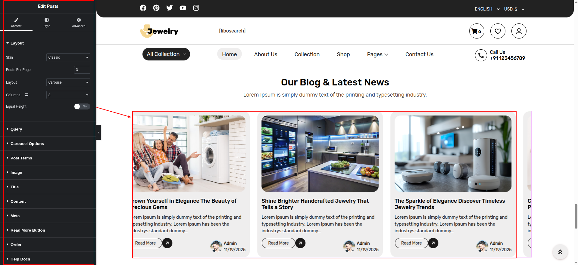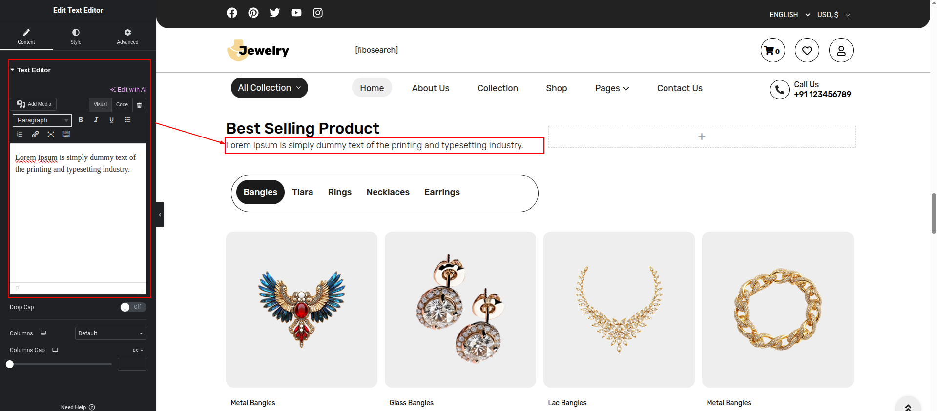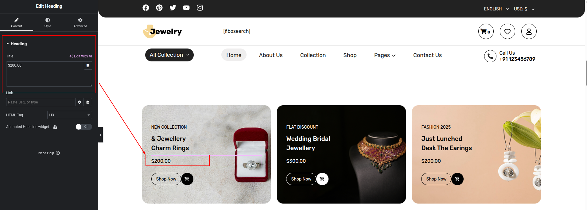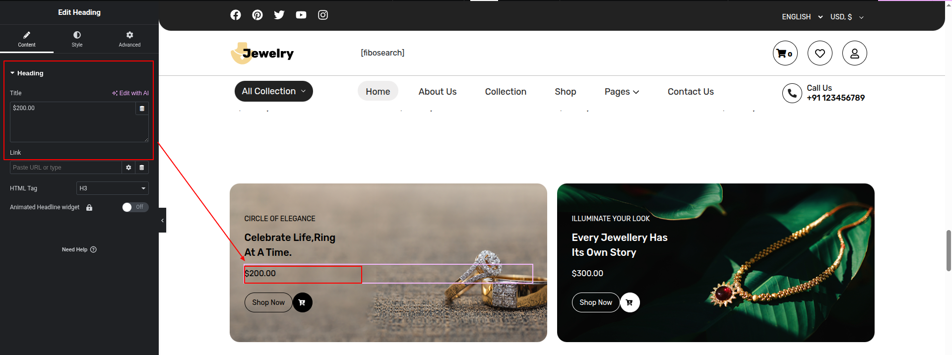 To Edit this Section, Click On the "Edit With Elementor" Button which will open the Elementor Widget editor.