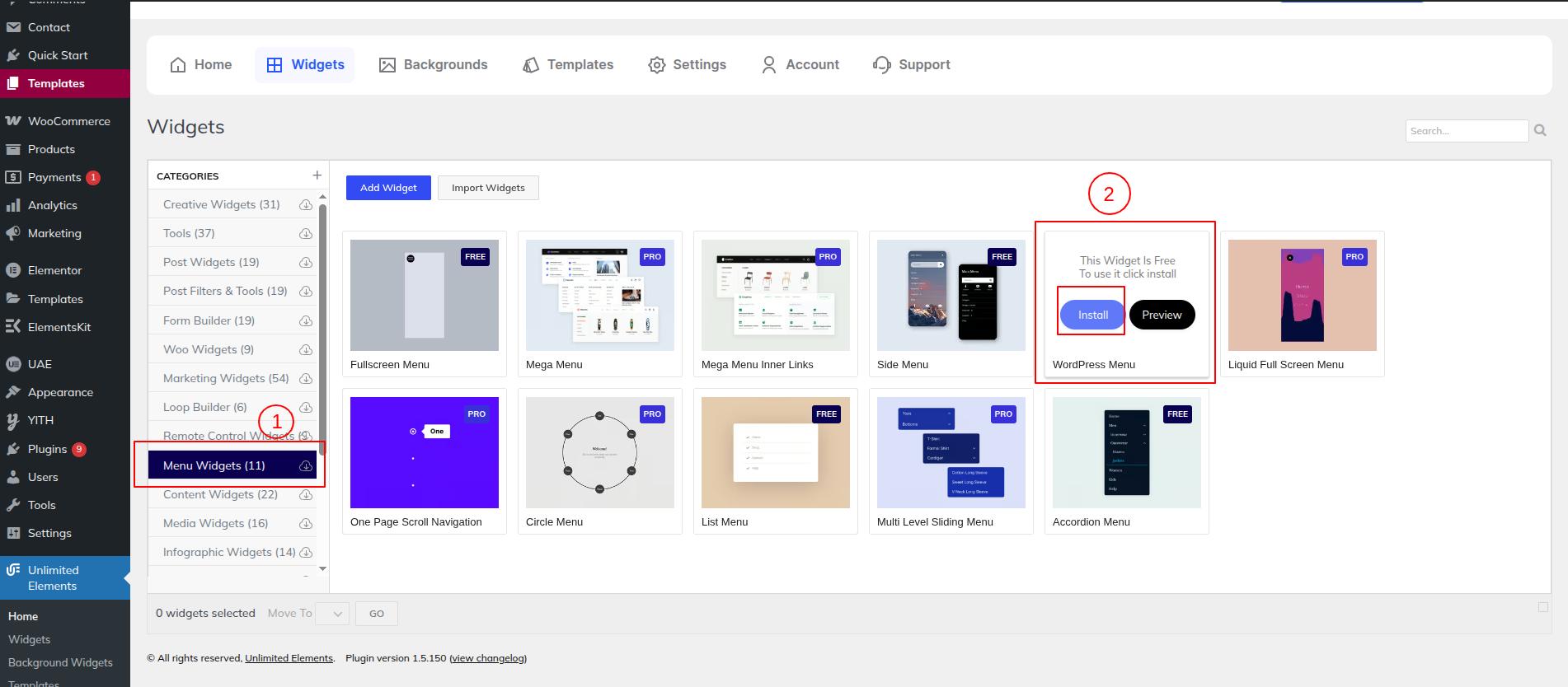 After that, install the Menu Widgets by clicking on WordPress Menu.