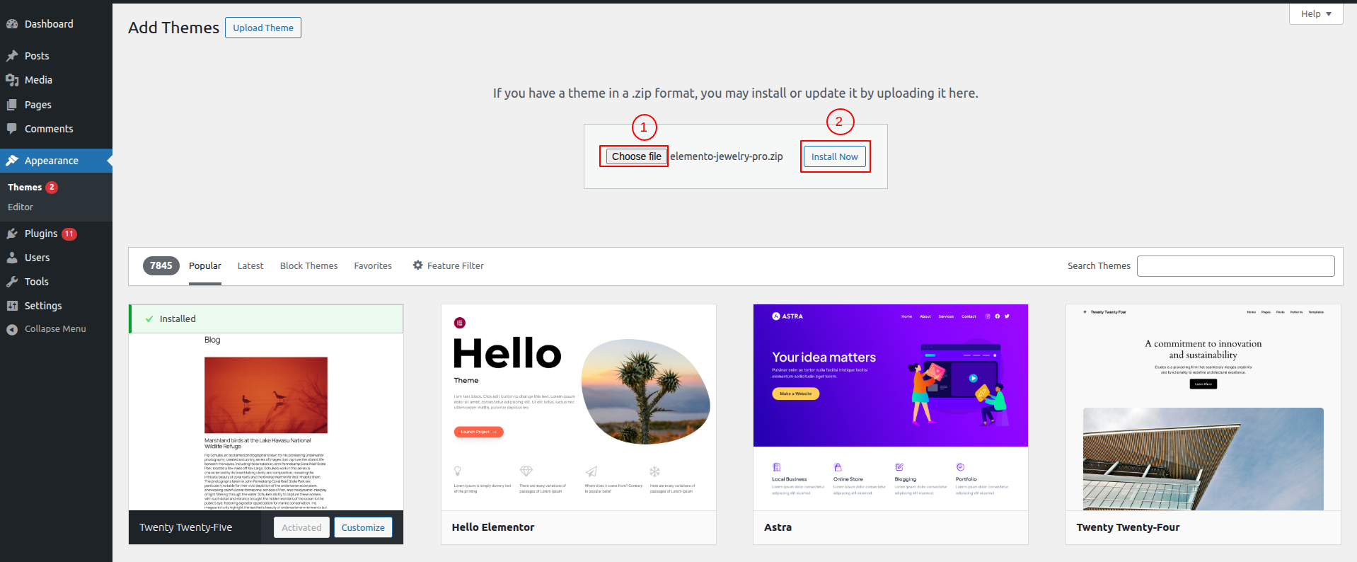 5.Once your theme is installed, WordPress will display a success message along with a link to activate or view the live preview.