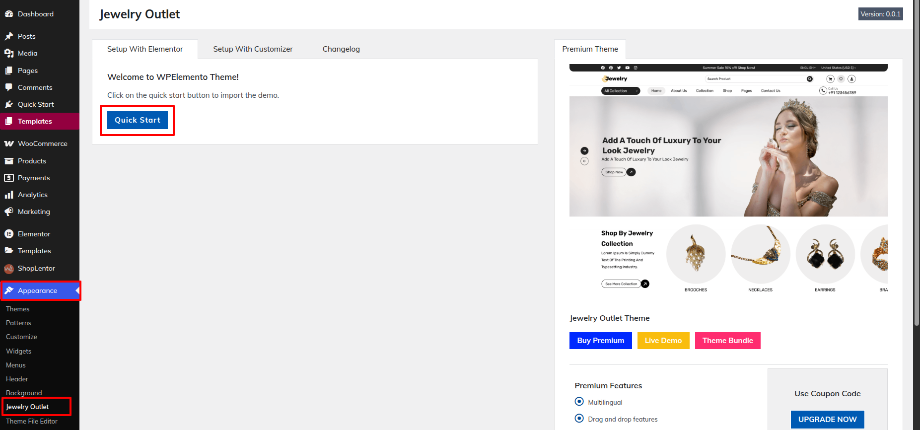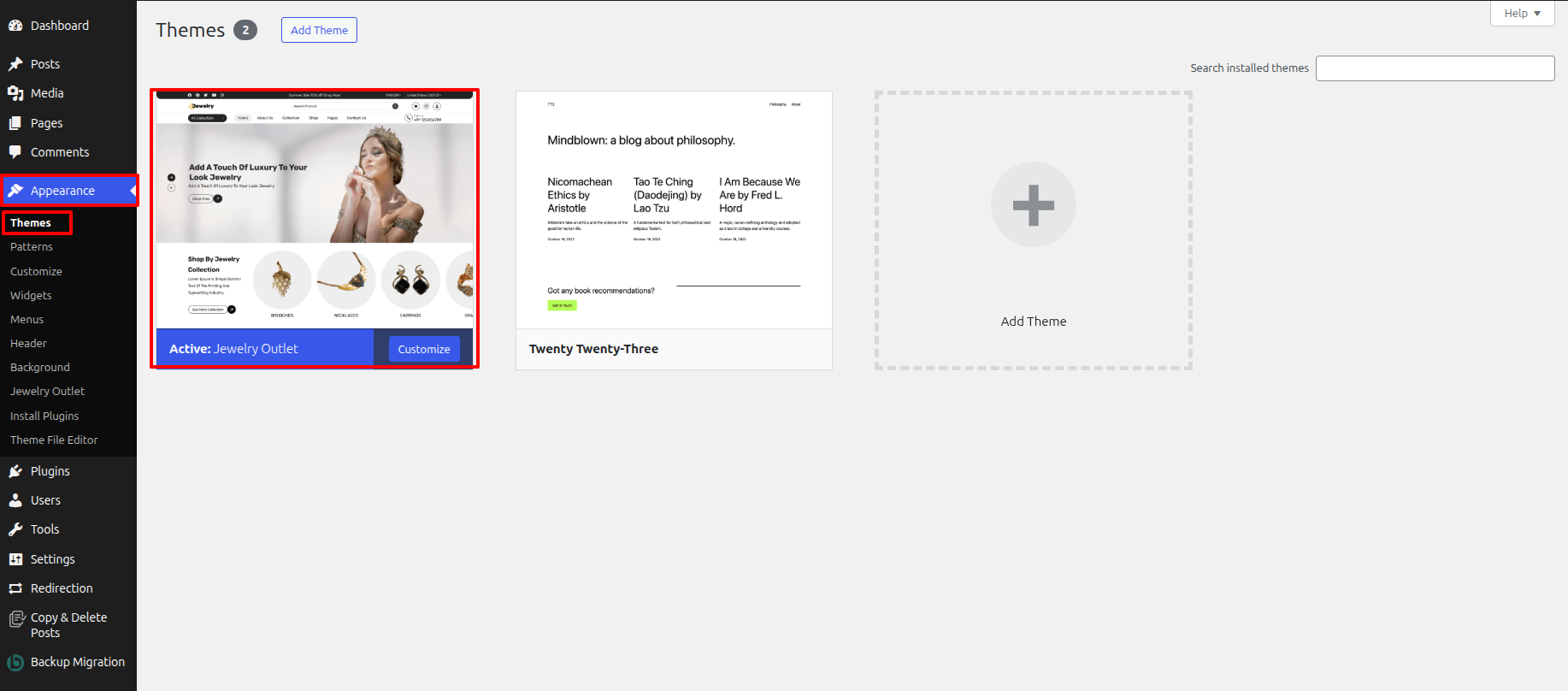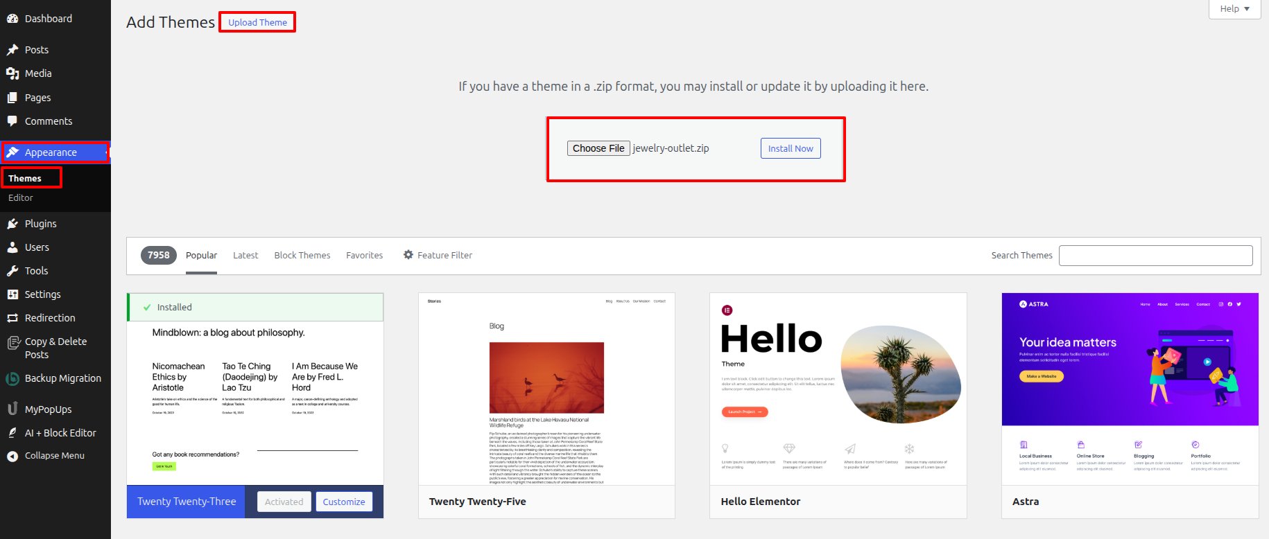 3. After clicking Browse, select your jewelry-outlet.zip file and click Install now.