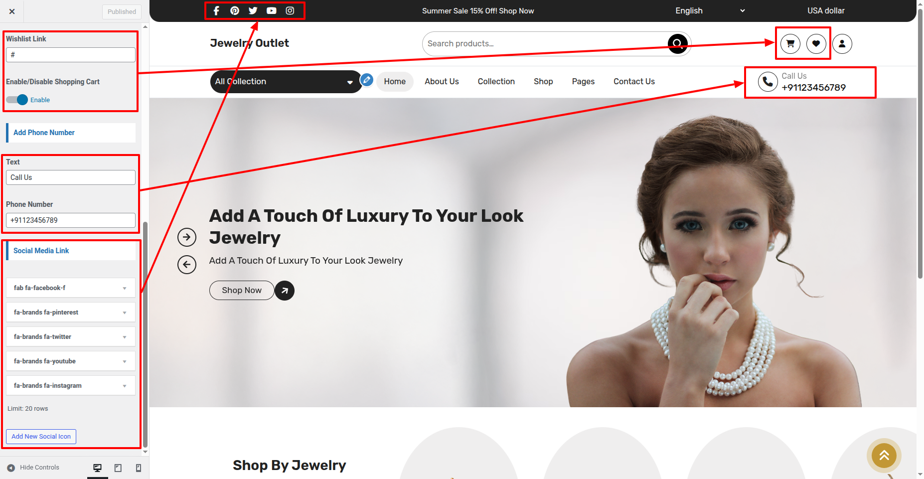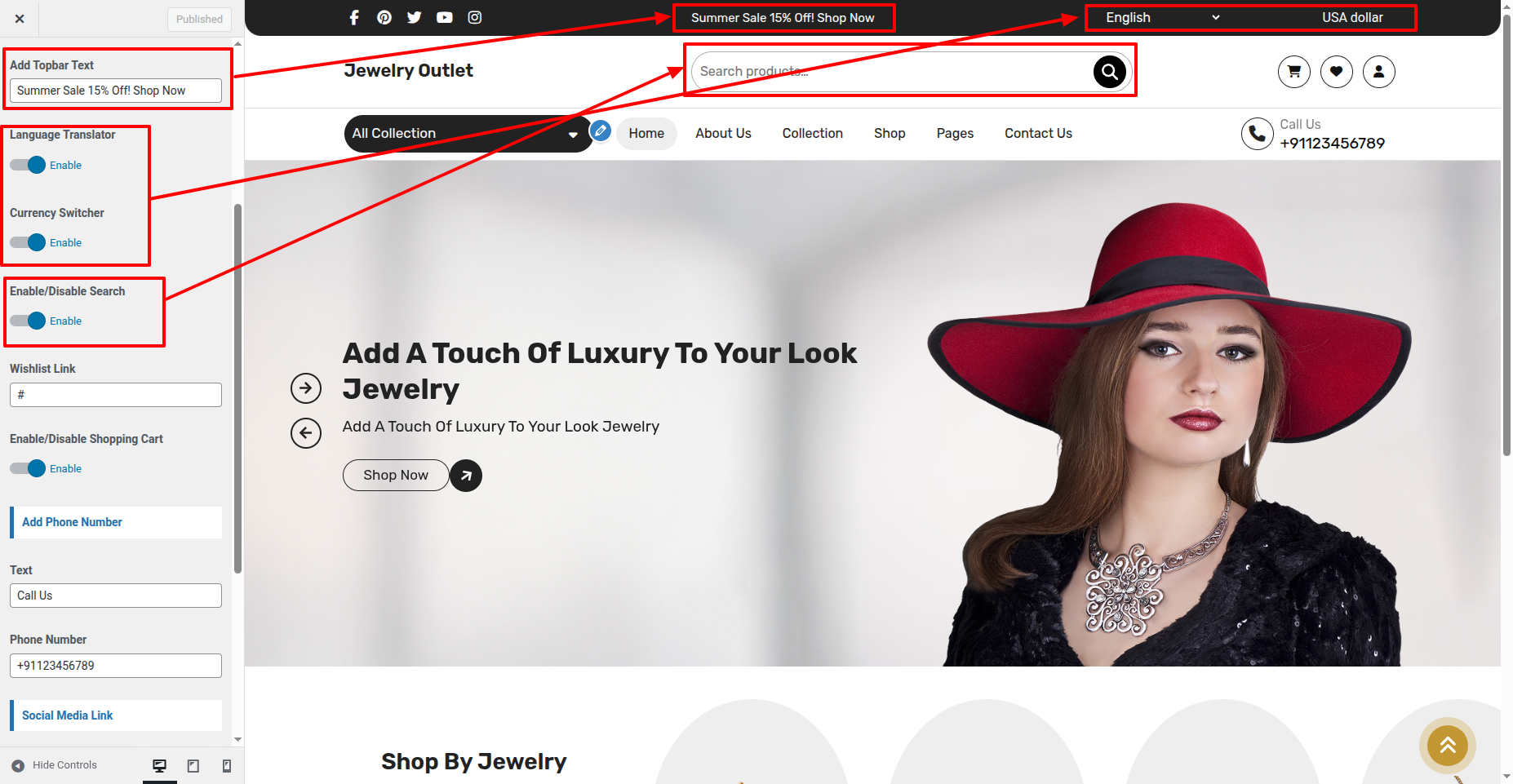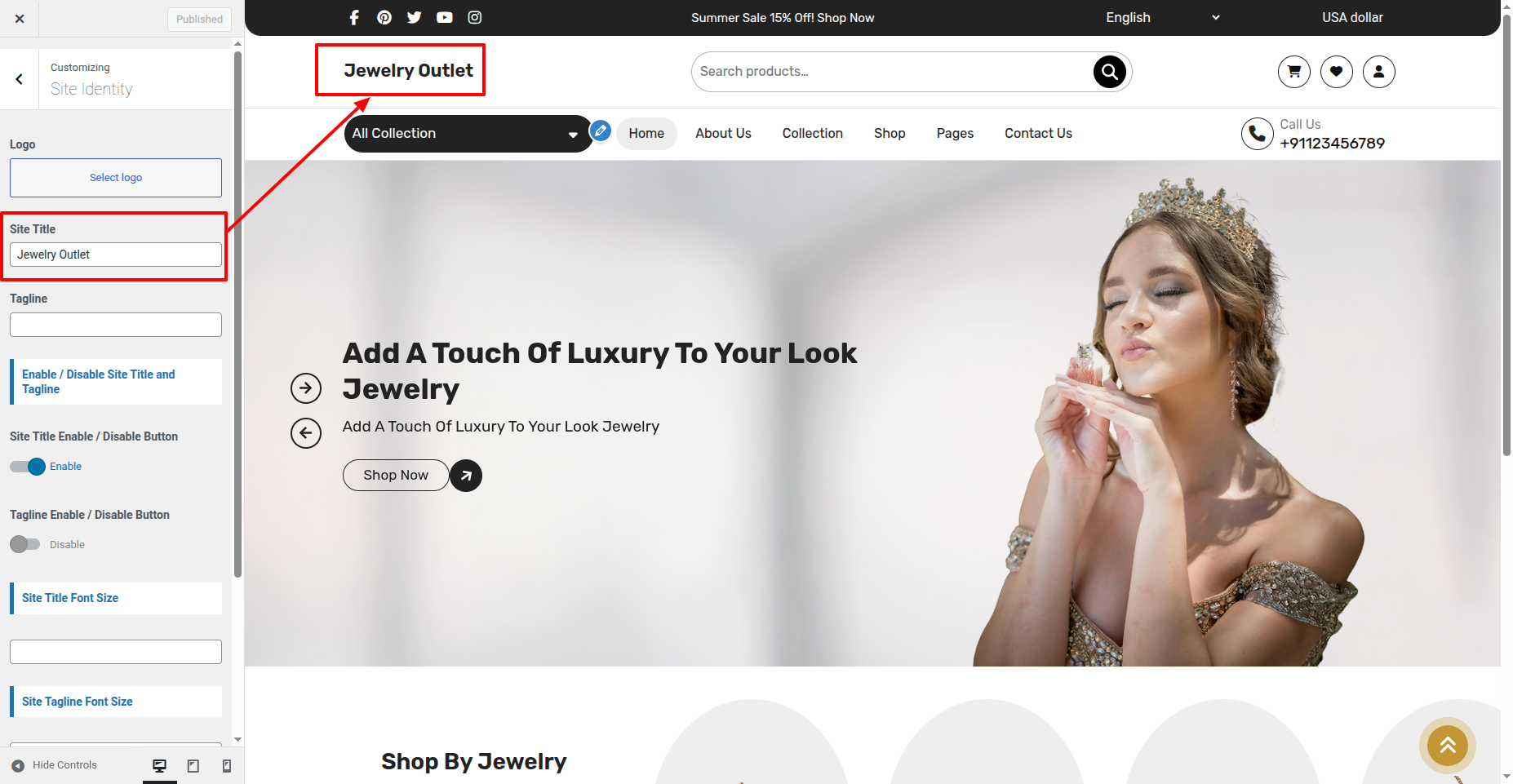 here you add site title and tagline and also add enable/disable site title and tagline button.