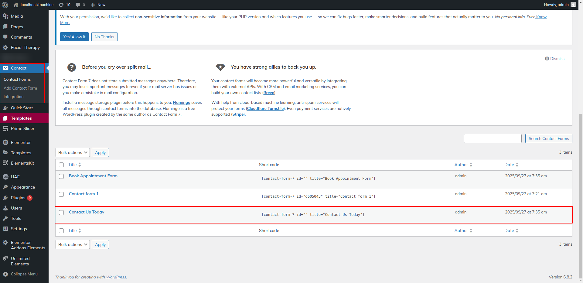 Go to:- Dashboard >> Contact >> Contact Us Today >> Edit