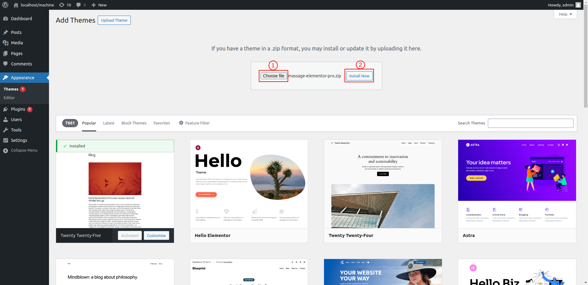 4. Select your massage-parlor-pro zip file and After selecting Browse, select Install immediately.