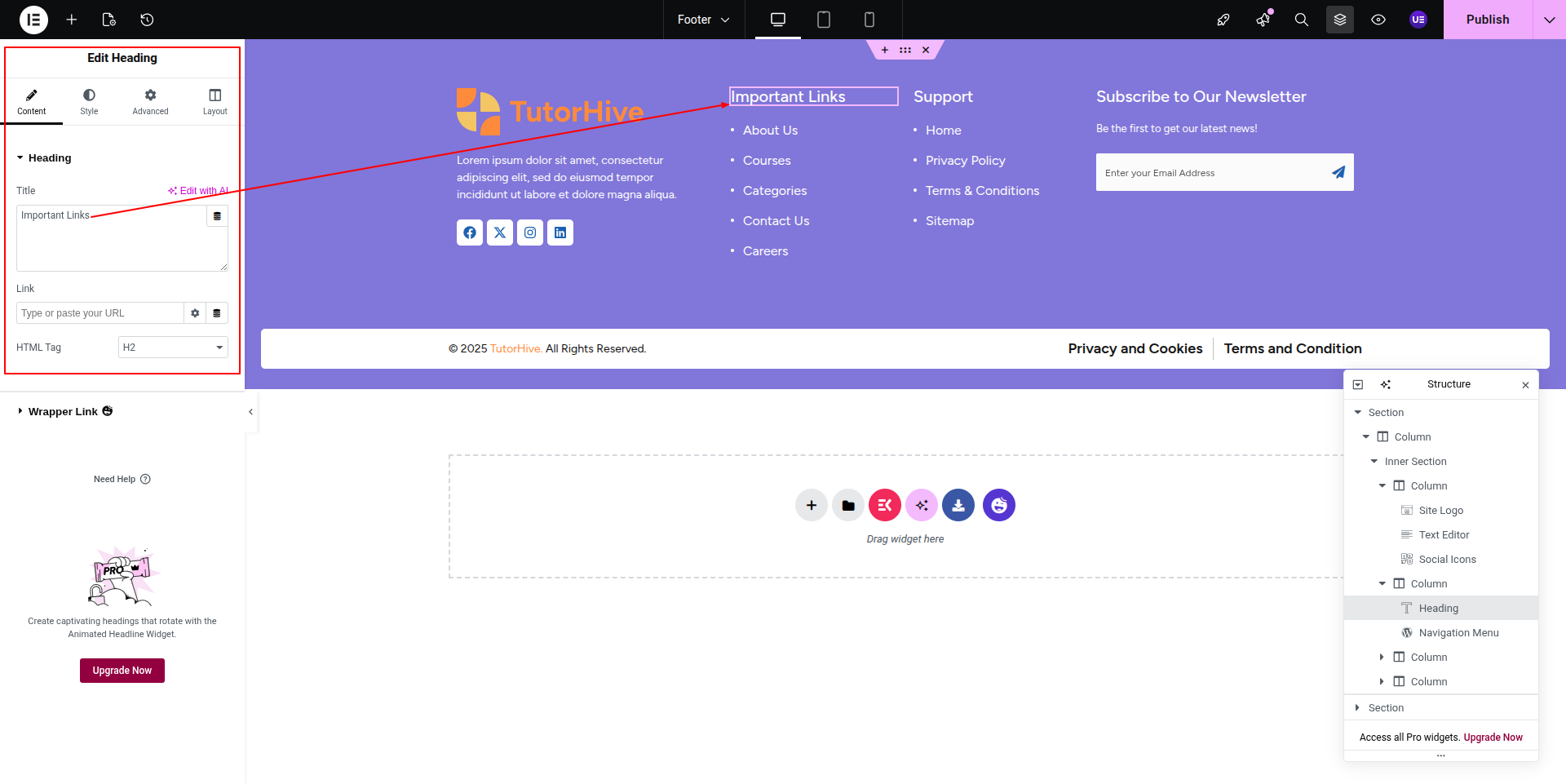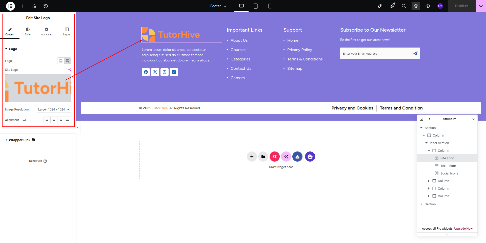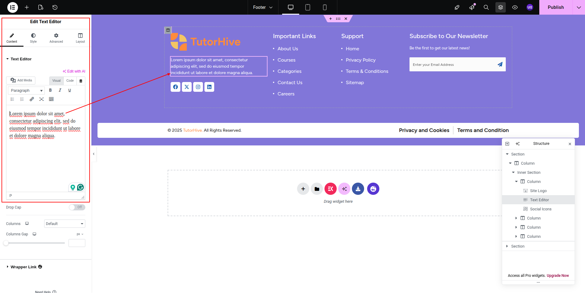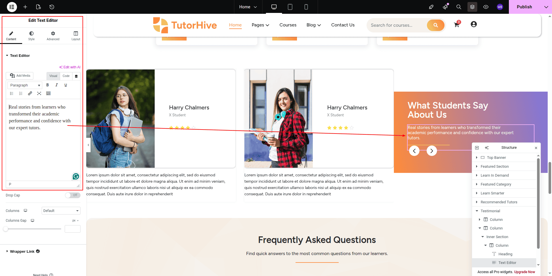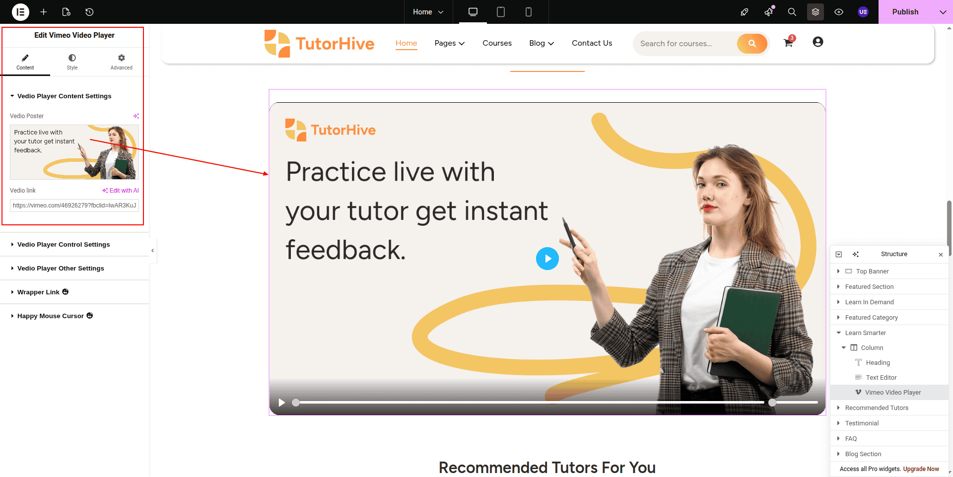 To Edit this Section, Click On the "Edit With Elementor" Button which will open the Elementor Widget editor.