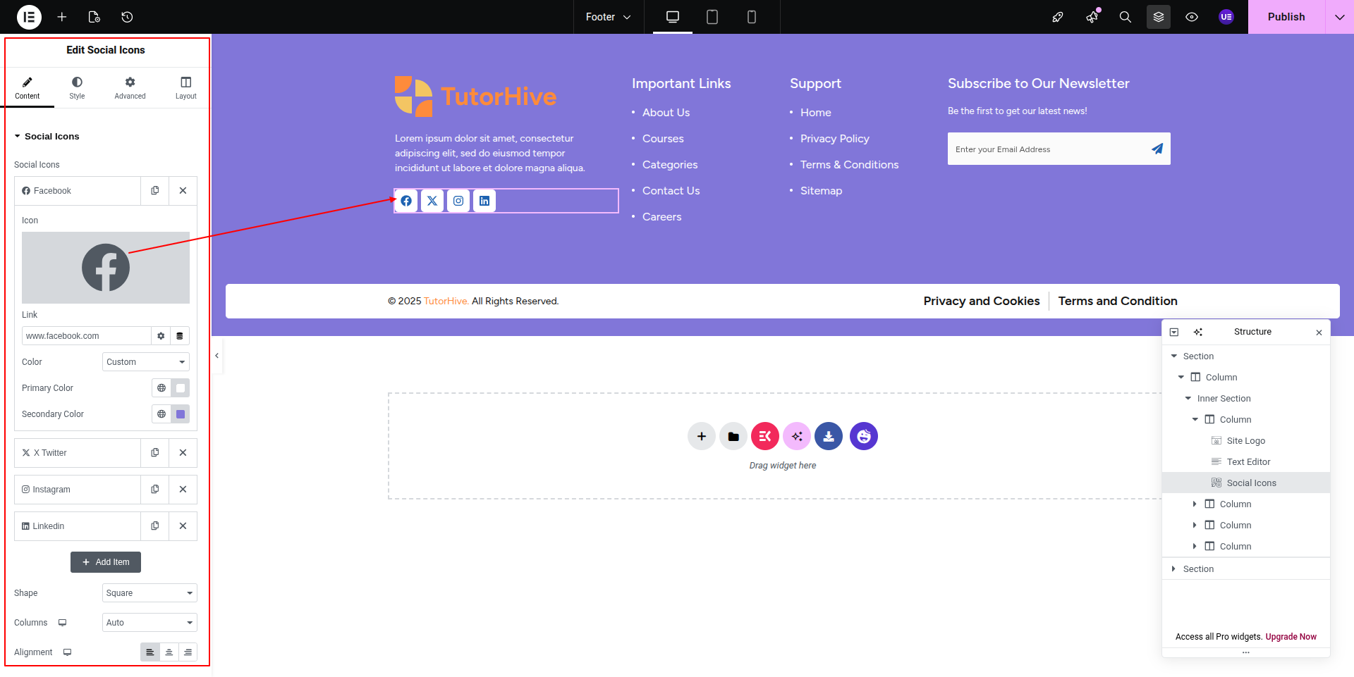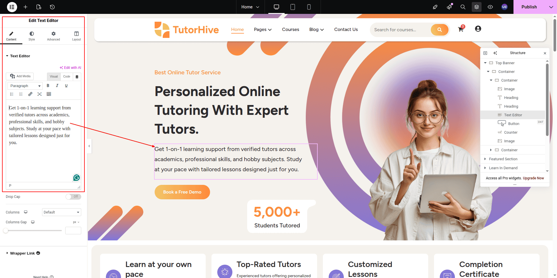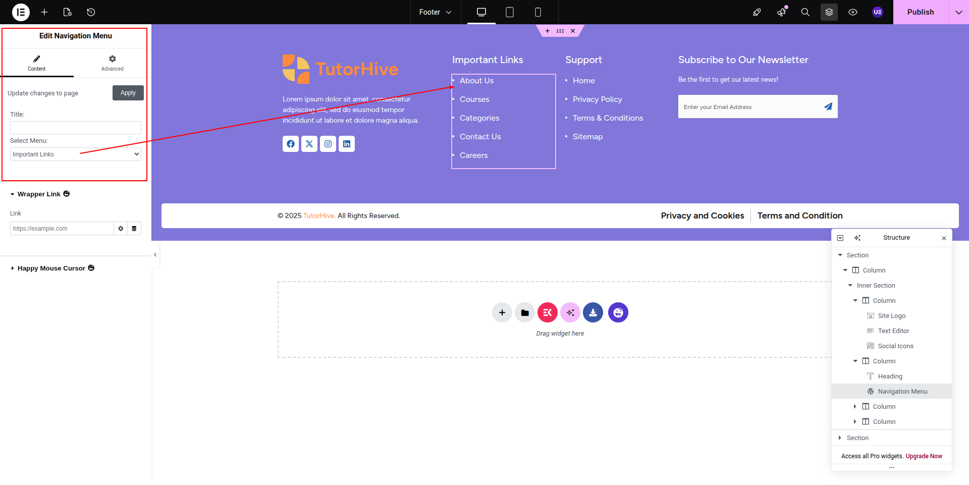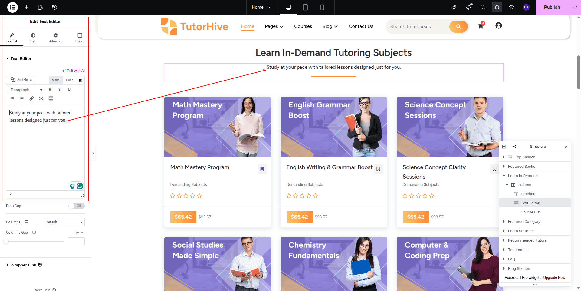 To Edit this Section, Click On the "Edit With Elementor" Button which will open the Elementor Widget editor.