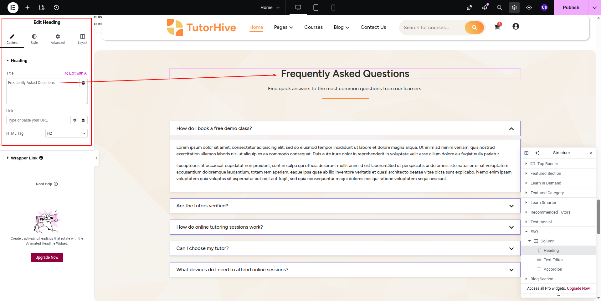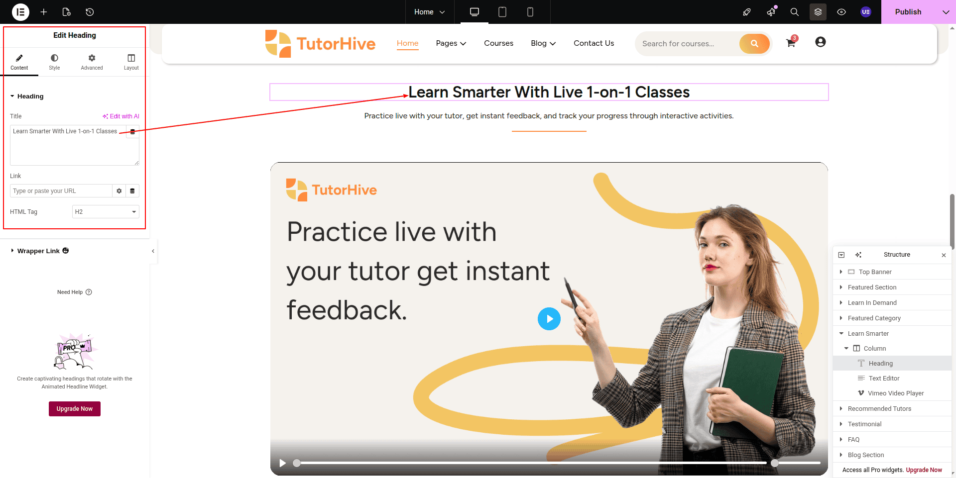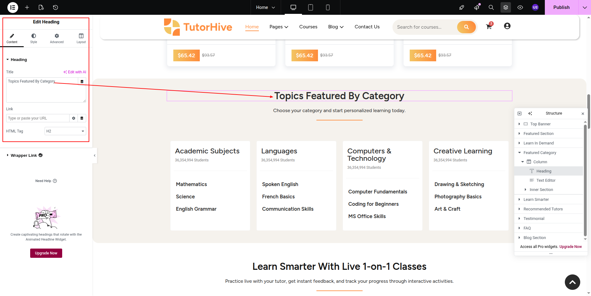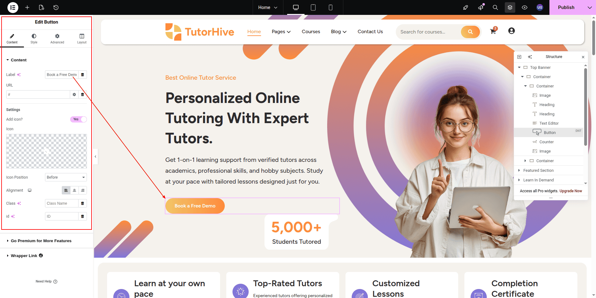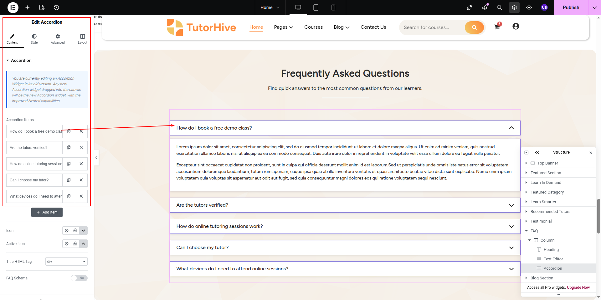 To Edit this Section, Click On the "Edit With Elementor" Button which will open the Elementor Widget editor.