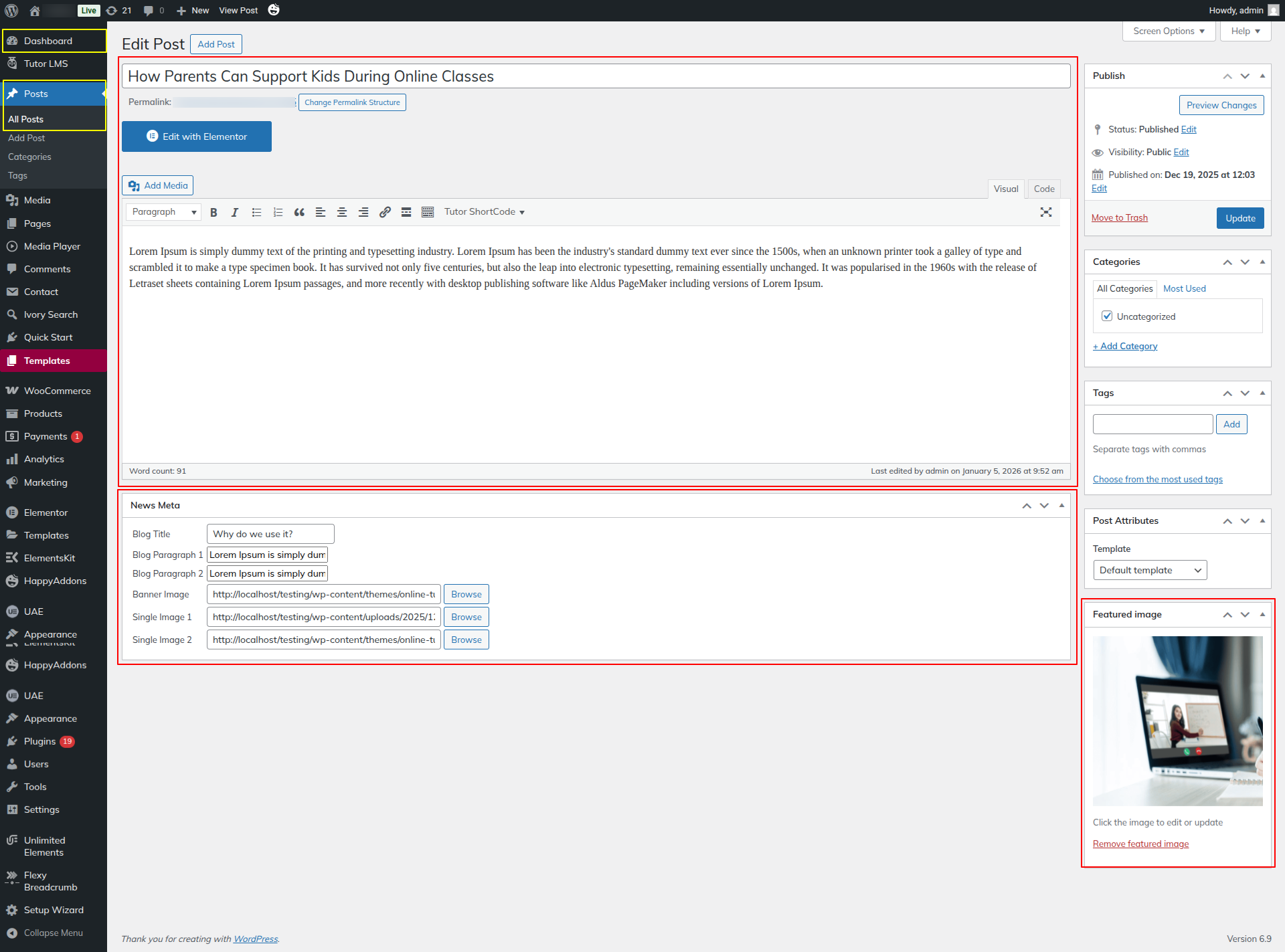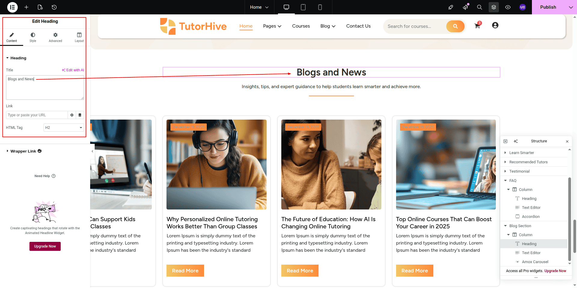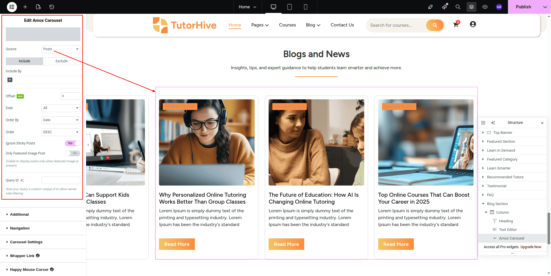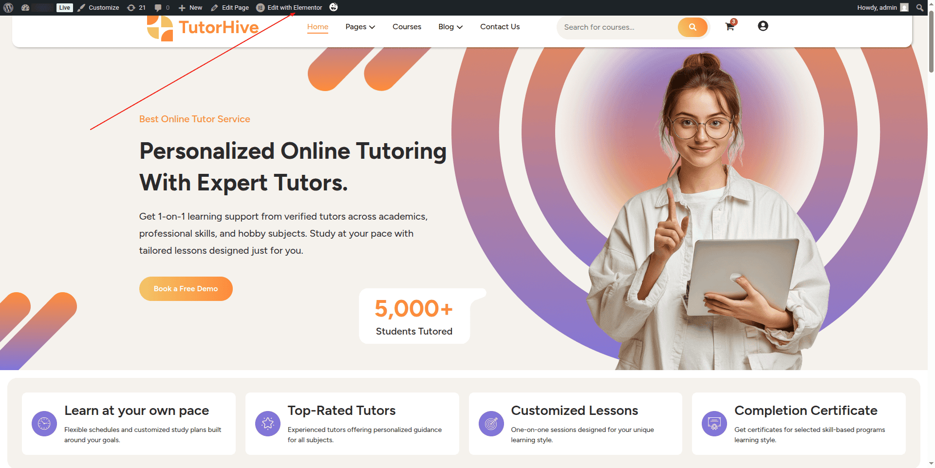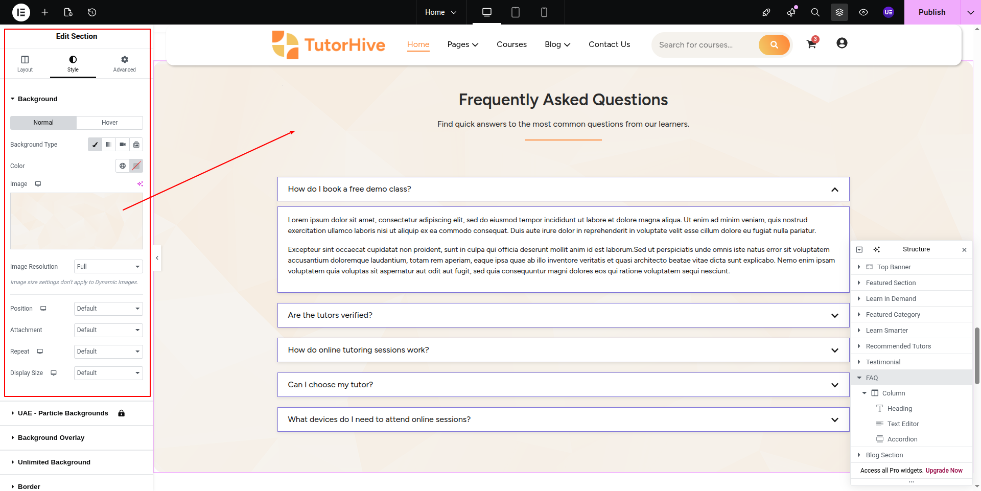 To Edit this Section, Click On the "Edit With Elementor" Button which will open the Elementor Widget editor.