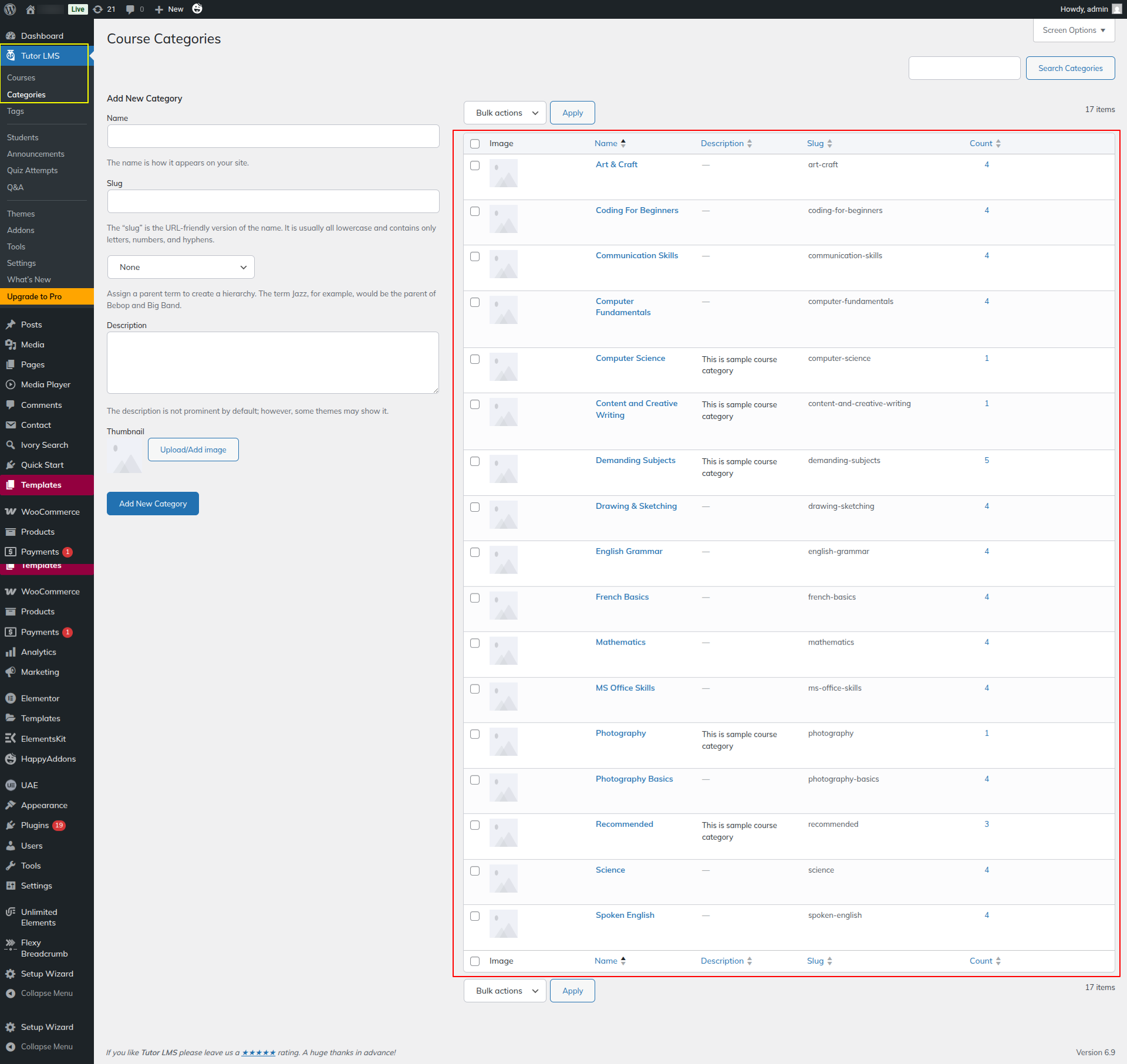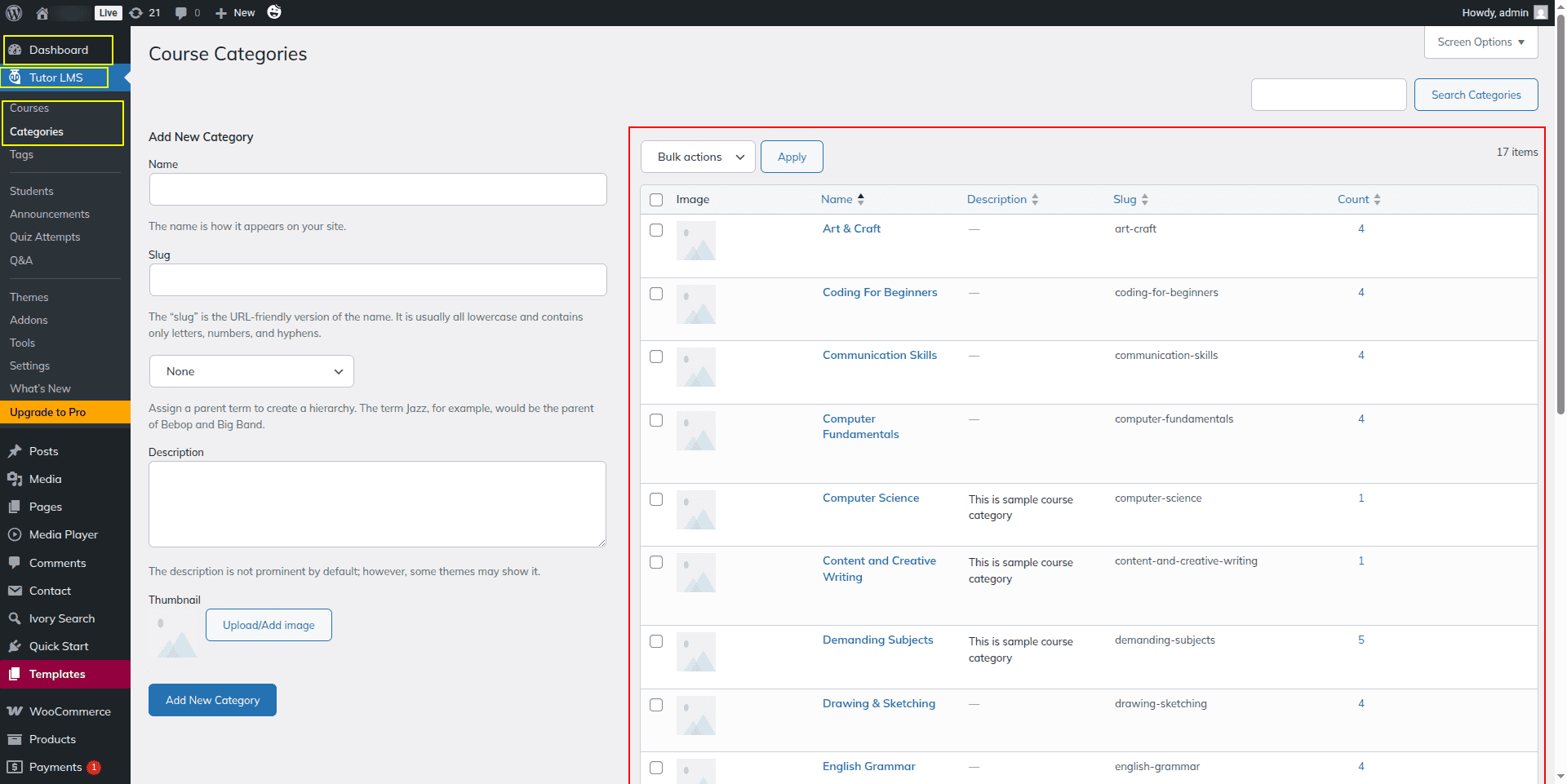 Here Course Category comes from Dashboard