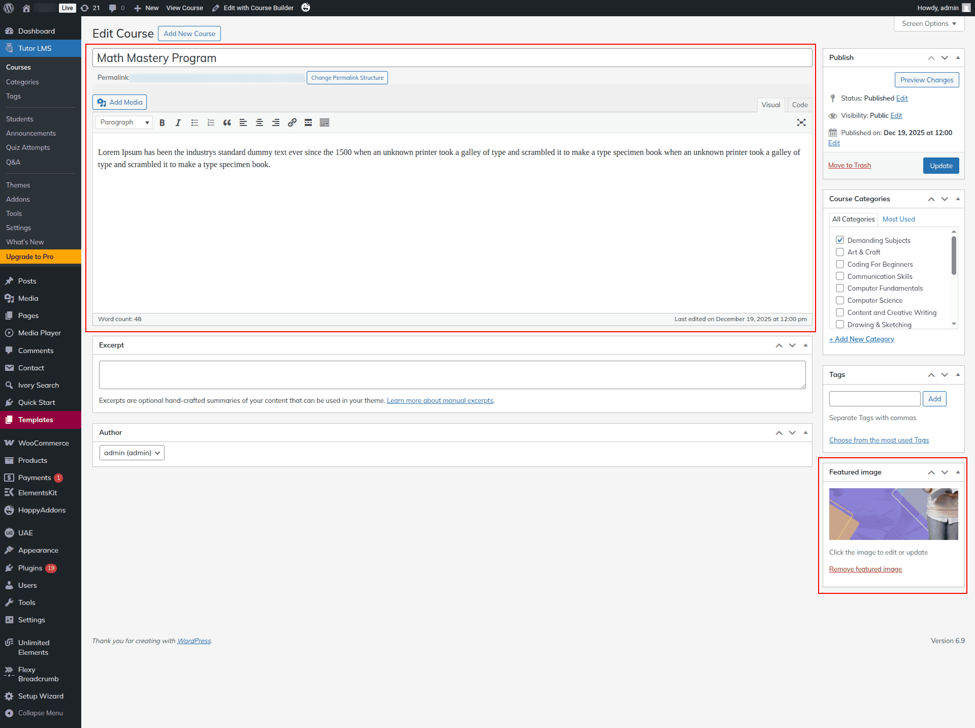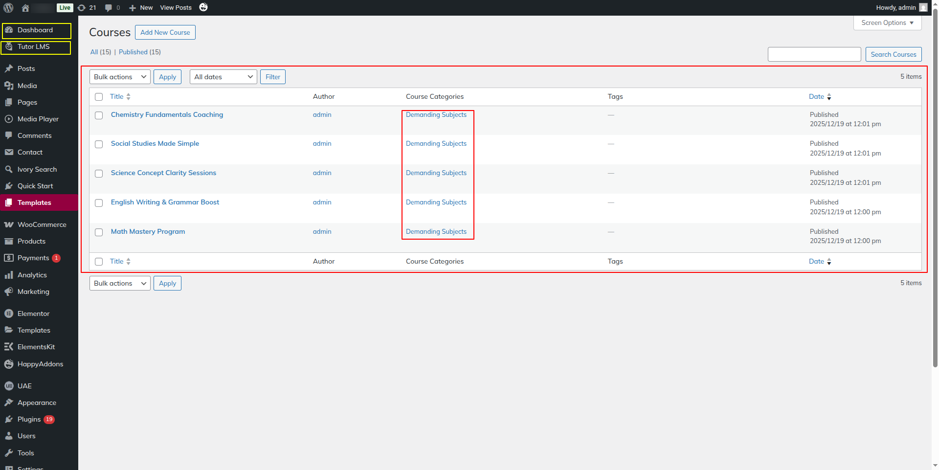Here we can edit Courses from Dashboard